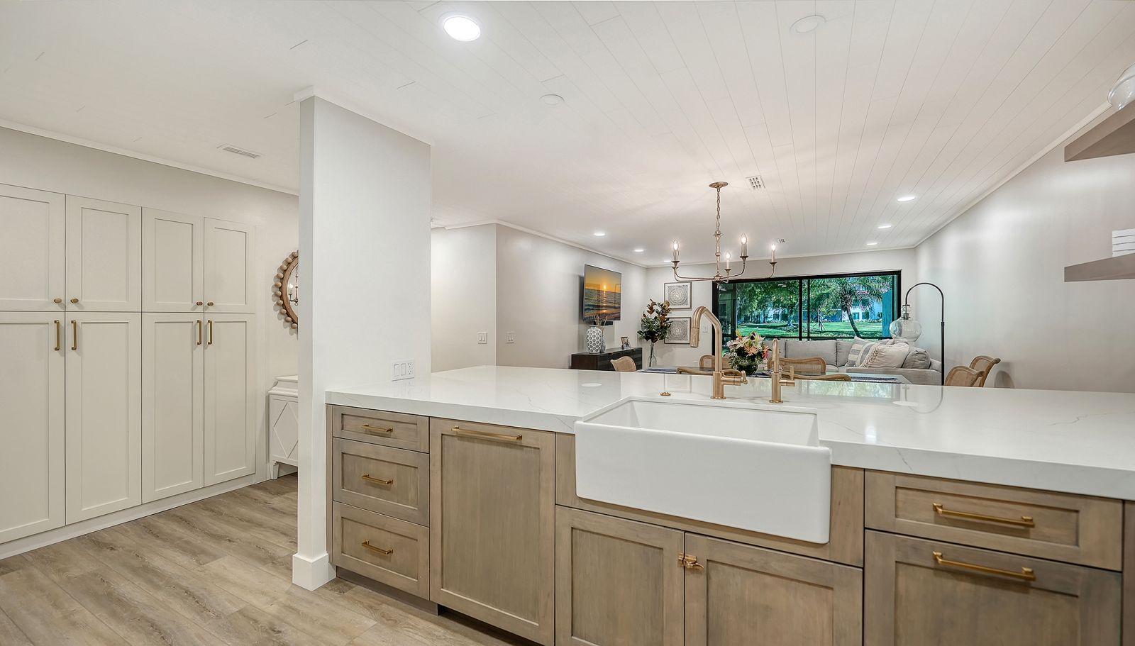 Wake up in This Resort-Style Living Condo located on a Barrier Island Paradise! Positioned just steps from the Gulf of Mexico on exclusive Longboat Key--where sugar-white sand beaches stretch endlessly and dolphins play in turquoise waters--this professionally redesigned ground-floor residence in Seaplace's coveted G1 building offers the rare combination of coastal luxury, modern sophistication, and effortless living. Minutes to the boutiques and dining of St. Armands Circle and Sarasota's world-class cultural scene, this is the Florida lifestyle you've been dreaming of. Step into an open-concept culinary kitchen masterpiece featuring custom cabinetry with integrated lighting, pantry, and generous extra cabinet space for all your storage needs. Premium Thermador and Bosch appliances--including an induction range and new vent hood--paired with expansive quartz countertops make this kitchen as functional as it is beautiful. Adjacent dining flows seamlessly, perfect for entertaining or intimate dinners at home. Overlooking serene garden views, the primary bedroom is a haven of calm. Custom-built closets provide abundant storage, while blackout window treatments ensure restorative sleep. The spa-inspired en-suite bath elevates everyday rituals with a double vanity, an expanded premium shower system, and stylish tile flooring with an elegant glass partition that enhances the open, airy design. This gated, 24-hour guarded community features custom wood ceiling, luxury vinyl flooring, new electrical panel and wiring, brand-new HVAC system and tankless water heater, reverse osmosis water system for pure filtered water, High-speed internet, all-new plumbing fixtures, interior doors, hardware, recessed lighting, and ceiling fans, hurricane-grade sliding doors, windows, and premium front door with keypad entry. The lanai--upgraded with beautiful new exterior tile--frames lush garden views and offers the perfect setting for morning coffee with the Gulf breeze, al fresco dining, or sunset cocktails. It's your own slice of tranquility in a tropical setting. Living at Seaplace means waking up to the sound of waves and ending each day with spectacular Gulf sunsets. This community features a newly renovated clubhouse and state-of-the-art fitness center, two sparking pools plus kiddie pool, two relaxing hot tups, three tennis courts, scenic walking trails through lush tropical landscape, covered parking beneath the building, and steps to pristine Gulf beaches. Beyond your front door lies 12 miles of unspoiled barrier island beauty--powdery beaches where sea turtles nest, championship golf courses, waterfront dining, and kayaking through peaceful mangrove tunnels. Stroll St. Armands Circle for upscale shopping, savor fresh grouper at a waterfront restaurant, or simply watch the sunset paint the sky in shades of pink and gold. This is coastal living at its finest. This home is completely renovated and ready for immediate occupancy. For ultimate convenience, beautifully curated furnishings may be available for purchase outside of the sale--allowing you to simply unlock the door and start living your dream lifestyle from day one. Whether you're seeking a sophisticated year-round retreat, a luxurious seasonal escape, or the ultimate coastal haven, this residence delivers on every front. Schedule your private showing today--and start living the life you've always imagined!