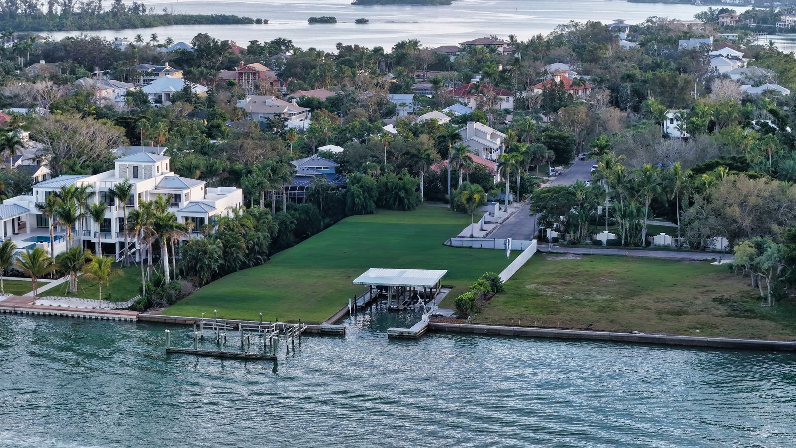A rare and distinguished offering of 1.12 acres directly on the sparkling shore of Big Pass on Siesta Key, FL. This legacy estate on coveted Flamingo Avenue is a unique parcel at the north end of this most desirable address, and one of the most extraordinary properties available on Florida's Gulf Coast. 3401 Flamingo Avenue exemplifies waterfront living at its finest. The property enjoys 150' of wide deep-water frontage, a coveted boathouse in a protected inlet that accommodates two boats, plus a large dockage structure for a yacht (currently being repaired). Given the direct Gulf and Sarasota Bay access, this is an ideal property for the consummate boater, whether a fisherman, water sports enthusiast, day- or overnight tripper, or prefer the easy cruising or sailing lifestyle, this is the ultimate location for any boating enthusiast.Owners will revel in the glistening Gulf of Mexico and Sarasota Bay waters, enjoy watching boaters gliding through Big Pass, and marvel at the plethora of marine life from every vantage point. These views are the perfect frame to savor the captivating sunsets over the Gulf, picturesque downtown Sarasota skyline and Bird Key, and pristine shifting sands of nearby sand bars.This walled and gated oversized bayfront property offers not just endless possibilities for your new estate home, but also space for amenities such as gardens, tennis and/or pickle ball court, separate guest house, and of course a waterfront pool. The current structure is not habitable, and a quote for demolition is available upon request. Here you're not just buying a property, you are creating your own magnificent home, lifestyle, and legacy. Located just minutes away from the center of famed Siesta Key's dining, shopping, and nightlife, and a short ride to enjoy the cultural amenities, galleries, fine dining, and vibrant Sarasota downtown community. Many of the photos have had the house virtually removed.