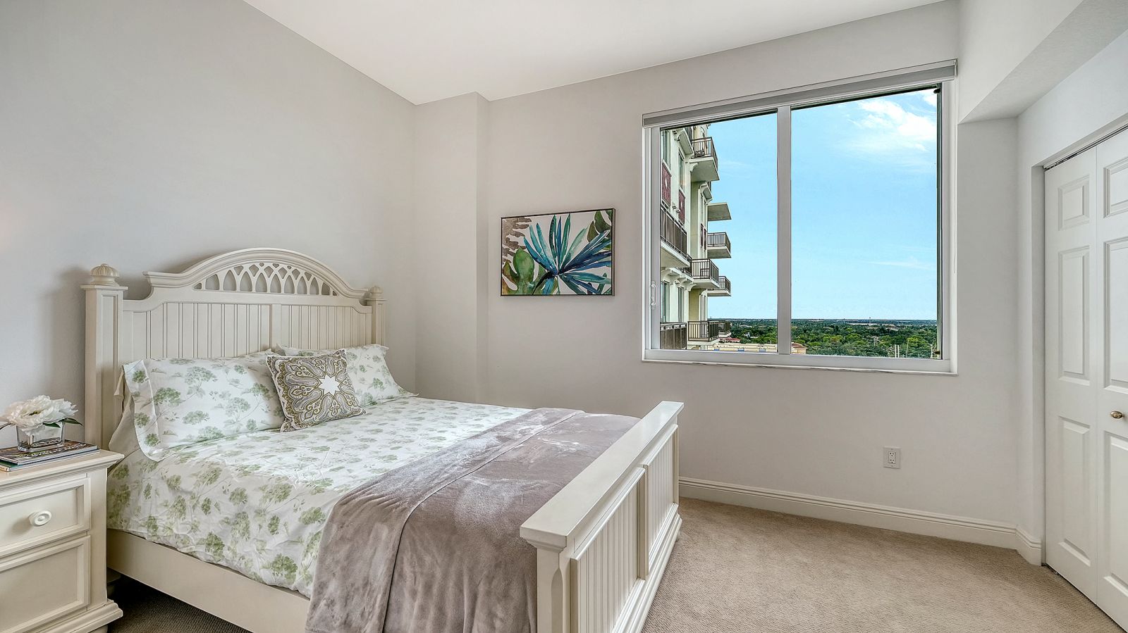 Welcome to Alinari, where it is all about the lifestyle. This pet-friendly condominium stands perfectly positioned on eleven acres in the heart of downtown Sarasota with lush, landscaped grounds and modern resort style amenities. This light and bright 15th floor unit with 1,484 square feet of living space features two bedrooms, office or dining room, and two baths within walking distance to the vibrant downtown scene. When entering the condo, the foyer leads to a bright open-concept floor plan that flows effortlessly to a terrace with an unobstructed scenic city view. High-ceiling and custom light fixtures create an airy atmosphere, making the living room an ideal space for entertaining. The spacious open kitchen boasts a tray ceiling, a low bar island with a breakfast bar, abundant wood cabinetry, Whirlpool stainless-steel appliances, granite countertops, and a closet pantry. Hurricane impact sliding doors connect the living area to the terrace, maximizing natural light and creating an inviting environment for relaxing while enjoying the stunning al fresco vistas. The primary suite offers serene comfort with a walk-in closet and a well-appointed en-suite. The floor plan offers a guest room and a full bath to provide a retreat for the family or guest, as well as a bonus room that can be used as a dining room or den/office. One unique amenity stands out: three guest suites are available in the building to accommodate additional overnight guests. Alinari delivers legendary services and desirable amenities including: 24/7 concierge service and security, on-site management and maintenance, business center, a heated lap pool and spa, fitness center, sauna, massage room, and an oversized club room and kitchen for gatherings. Residents can enjoy a climate-controlled wine room with private storage lockers, a theater with stadium seating, card and billiard room, business center, storage, EV charging stations and secure under building parking. Alinari offers a large, privately owned fenced green space for pets and parties, and additional condominium-owned development of land. You are just steps from the iconic Van Wezel Performing Arts Hall, Bayfront Park, St. Armand's Circle, and Lido Beach. This condo offers the perfect blend of comfort and convenience with a true sense of community. Whether you are looking for that perfect home, or prime investment property - this is a perfect opportunity to experience the ultimate blend of nature, culture, and upscale downtown living at its finest.