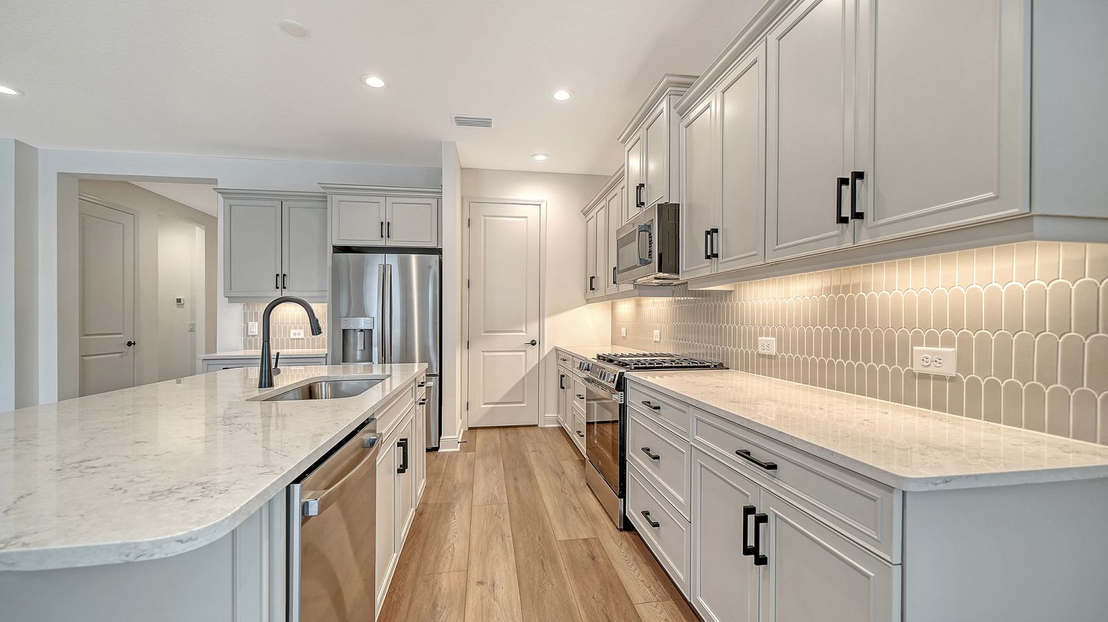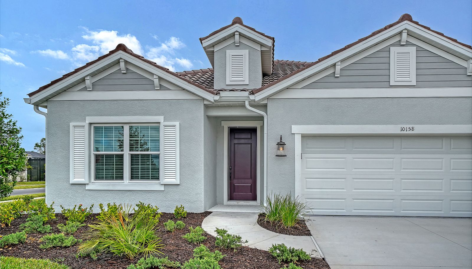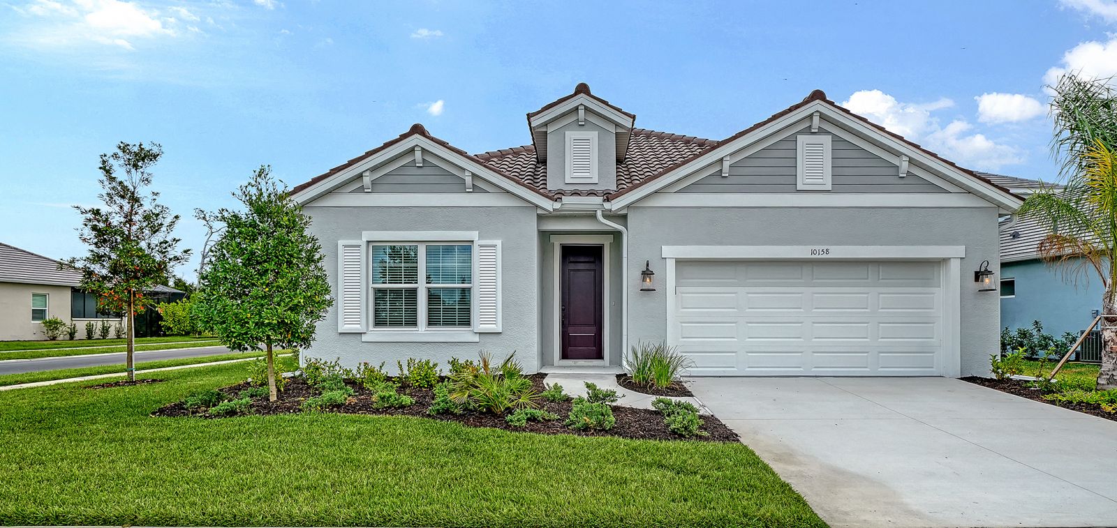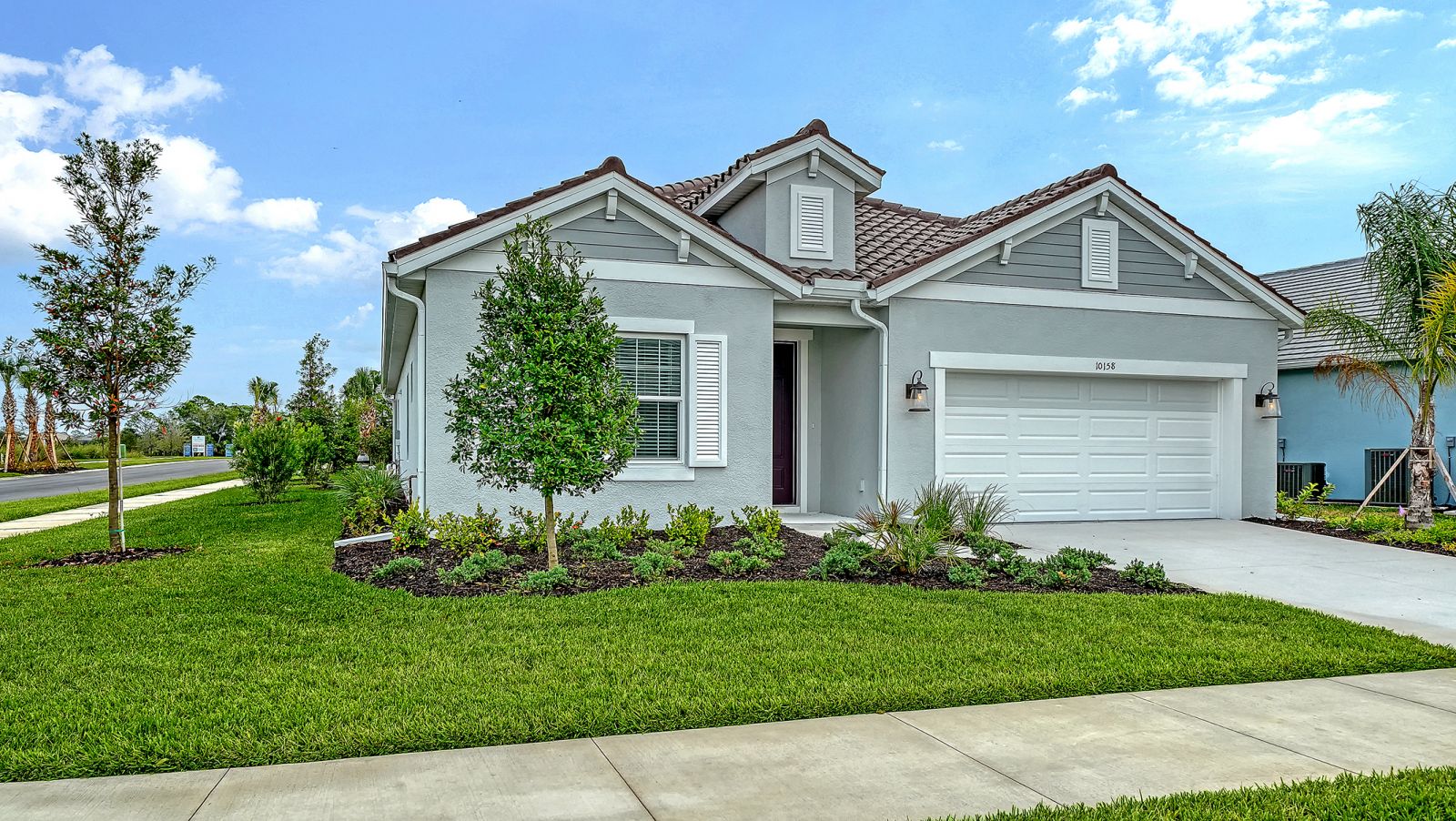 Stunning Triumph floorplan featuring 4 bedrooms, 3 bathrooms, a den, and a 2-car garage. Situated on a desirable corner lot, this pool home offers an east-facing backyard that welcomes beautiful morning sunlight through tri-pocket sliders into the open-concept living area. The coastal-inspired exterior complements the light and bright outdoor space, showcasing an almost 8,000-gallon pool with bubbler features. The lanai is pre-plumbed for a future outdoor kitchen, making it ideal for entertaining. Enjoy full access to resort-style community amenities and the best of Sarasota living.