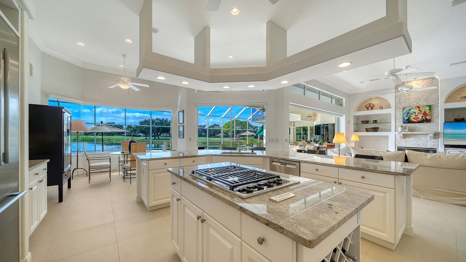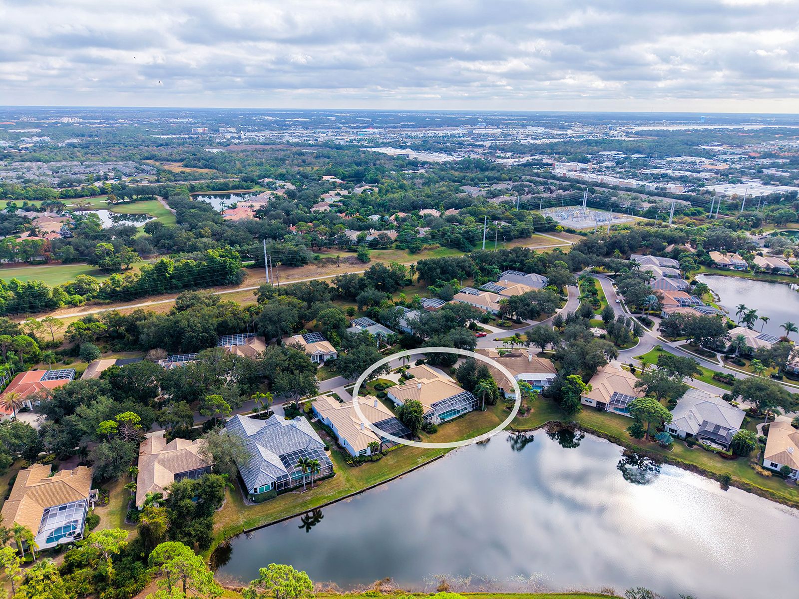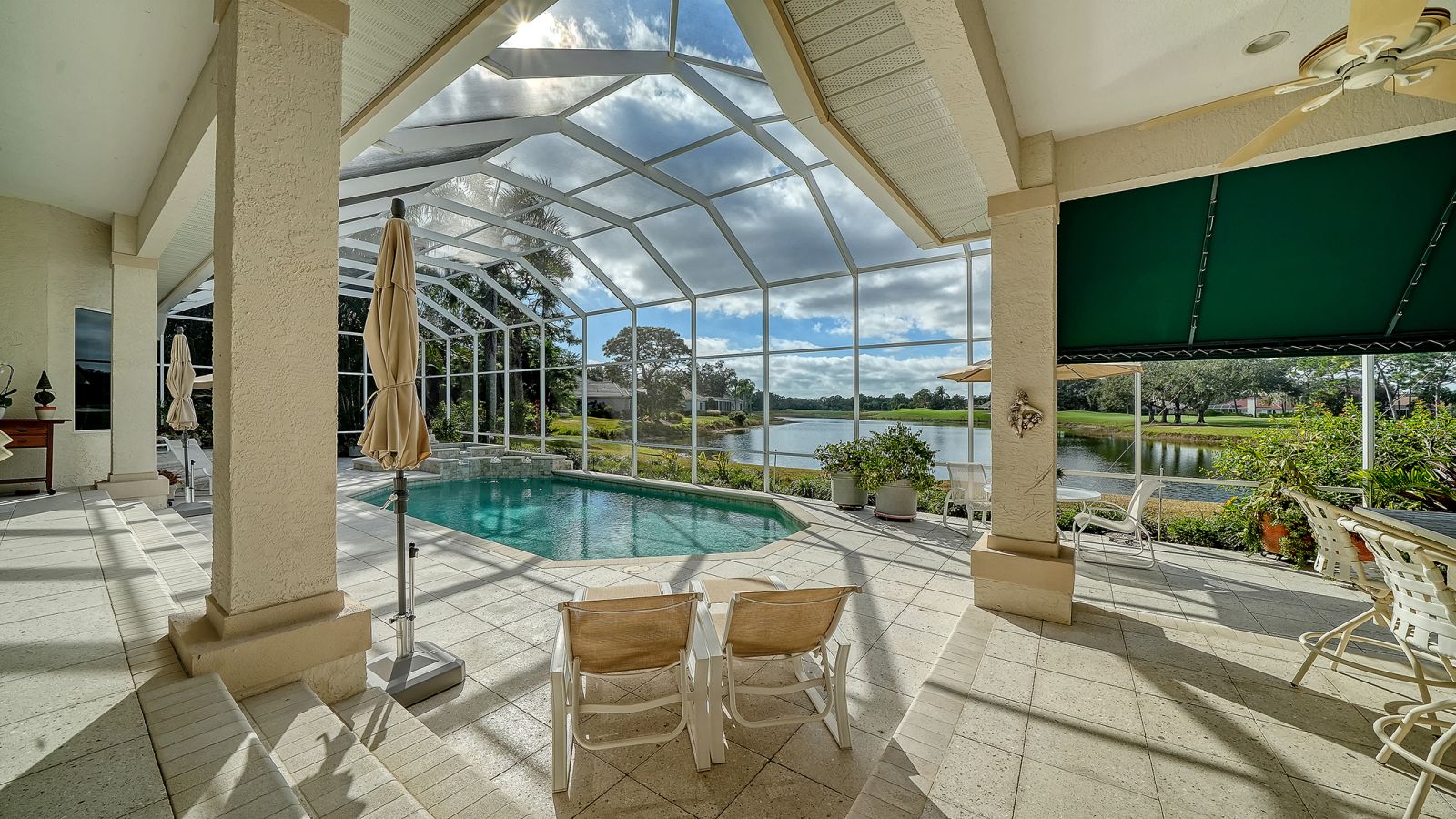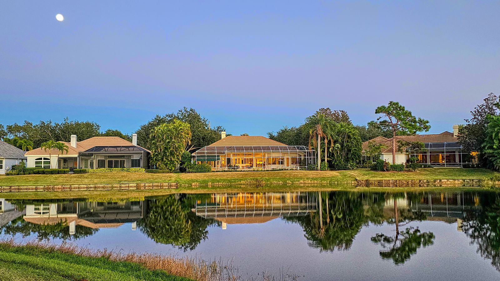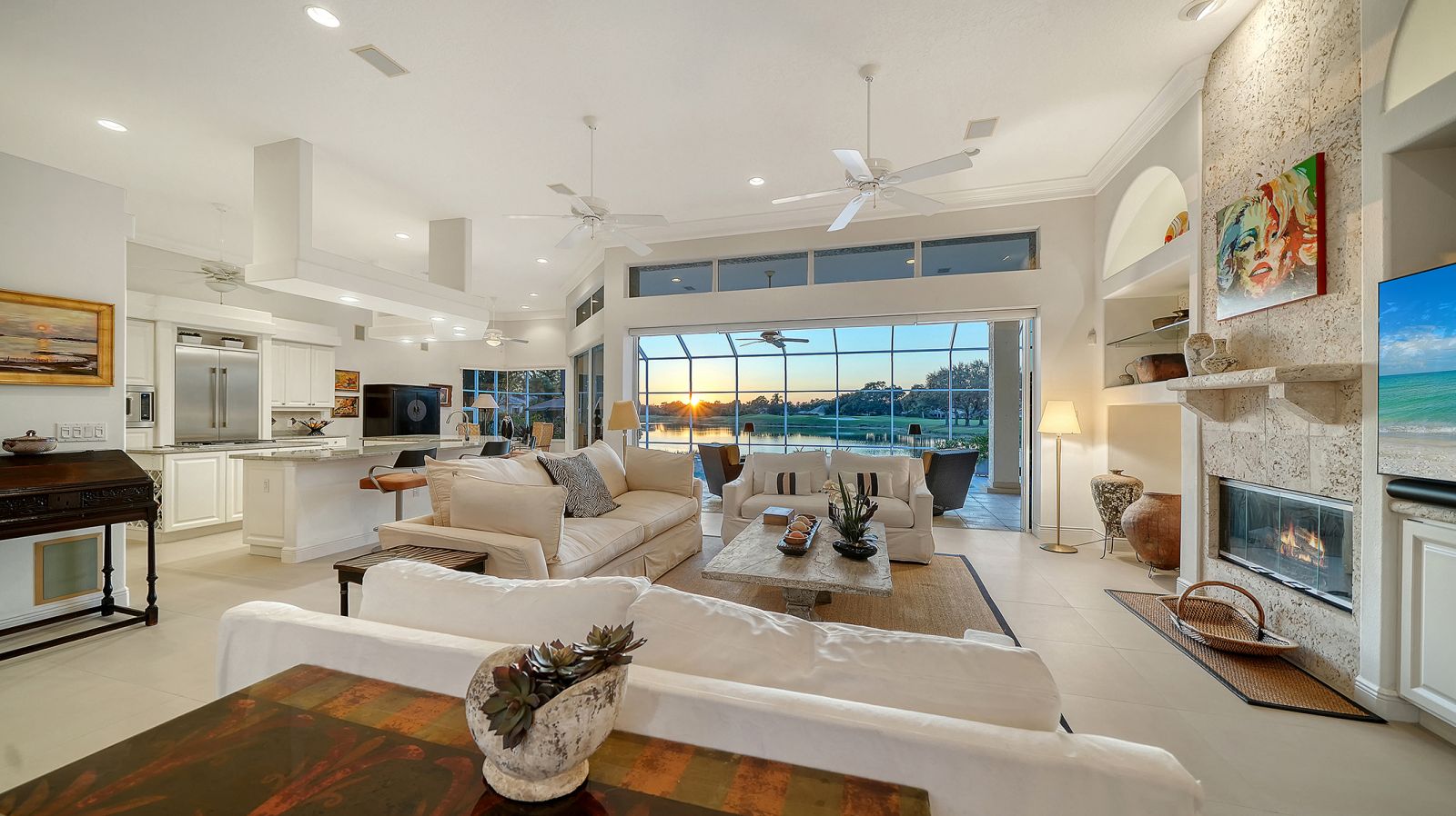 This beautiful John Cannon home has arguably the best water views in the whole of University Park! Boasting 3 bedrooms, 3 baths + den, a 3-car side-return garage, and a huge pool deck, this 3,100-square-foot home is set on 0.4 acre of lushly landscaped property against a backdrop of expansive west-facing lake and golf course views. The home has been fastidiously maintained and beautifully updated. The split-bed floor one-story plan is anchored by a stunning living area with volume ceilings, a striking coral-stone fireplace surround, built-in shelving, and pocket sliders to a huge screened terrace with a sparkling pool and jaw-dropping water views. The primary suite has a large bedroom and spacious seating area overlooking the pool and lake, two walk-in closets, and a spacious bathroom with quartz cabinetry and a vanity desk. The kitchen was remodeled in 2018 with sleek granite countertops, and the appliances were all updated in the past couple of years with Thermador and Wolf fixtures. This home boasts an abundance of natural light in every room which, combined with extra features including high ceilings, a neutral palette, plantation shutters, sunshades, built-in features, and a whole-house generator, represents incredible value in a prime location behind the gates of this sought-after country club University Park Country Club is a gated, resident-owned community offering a 27-hole Ron Garl-designed golf course, eleven lighted Har-Tru tennis courts, four pickleball courts, croquet, a fitness center, and multiple on-site dining options. Miles of tree-lined streets provide opportunities for walking and biking, and a variety of social clubs and organized activities are available to residents. Located approximately four miles from downtown Sarasota, the community provides convenient access to shopping, dining, cultural venues, healthcare, and major transportation routes. University Town Center, with its wide selection of shops, restaurants, and fitness studios, is about two miles away, along with Nathan Benderson Park and nearby Mote Marine facilities. Gulf Coast beaches, SRQ airport, the Ringling Museum, boating options, and St. Armands Circle are all within an estimated 15-minute drive.