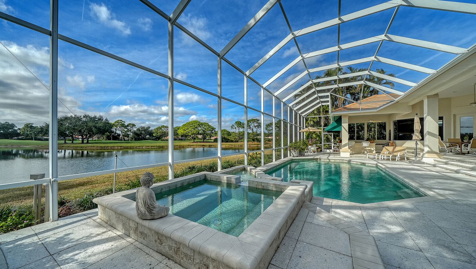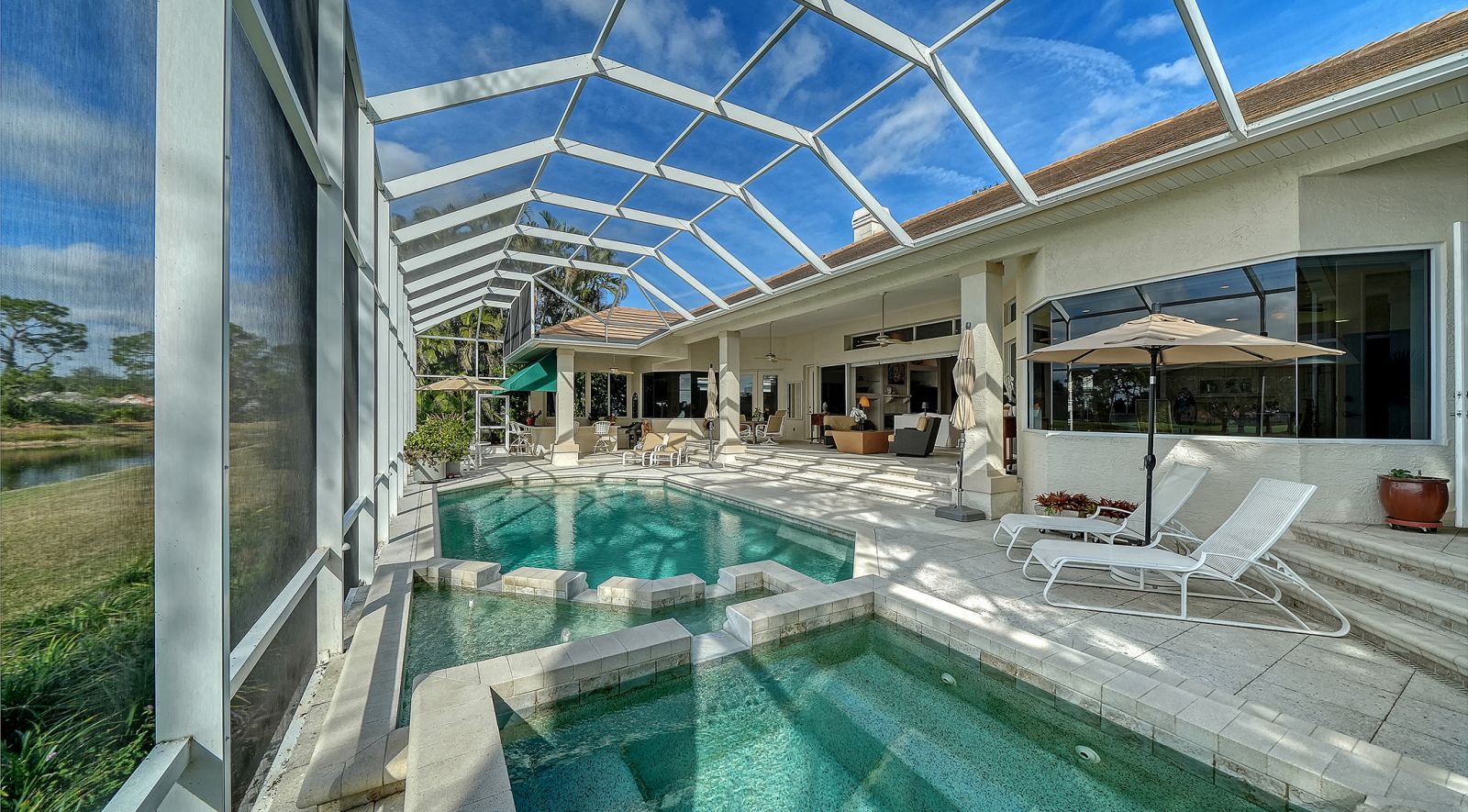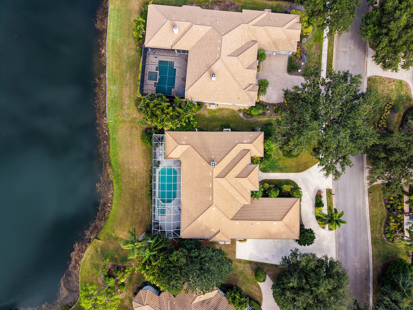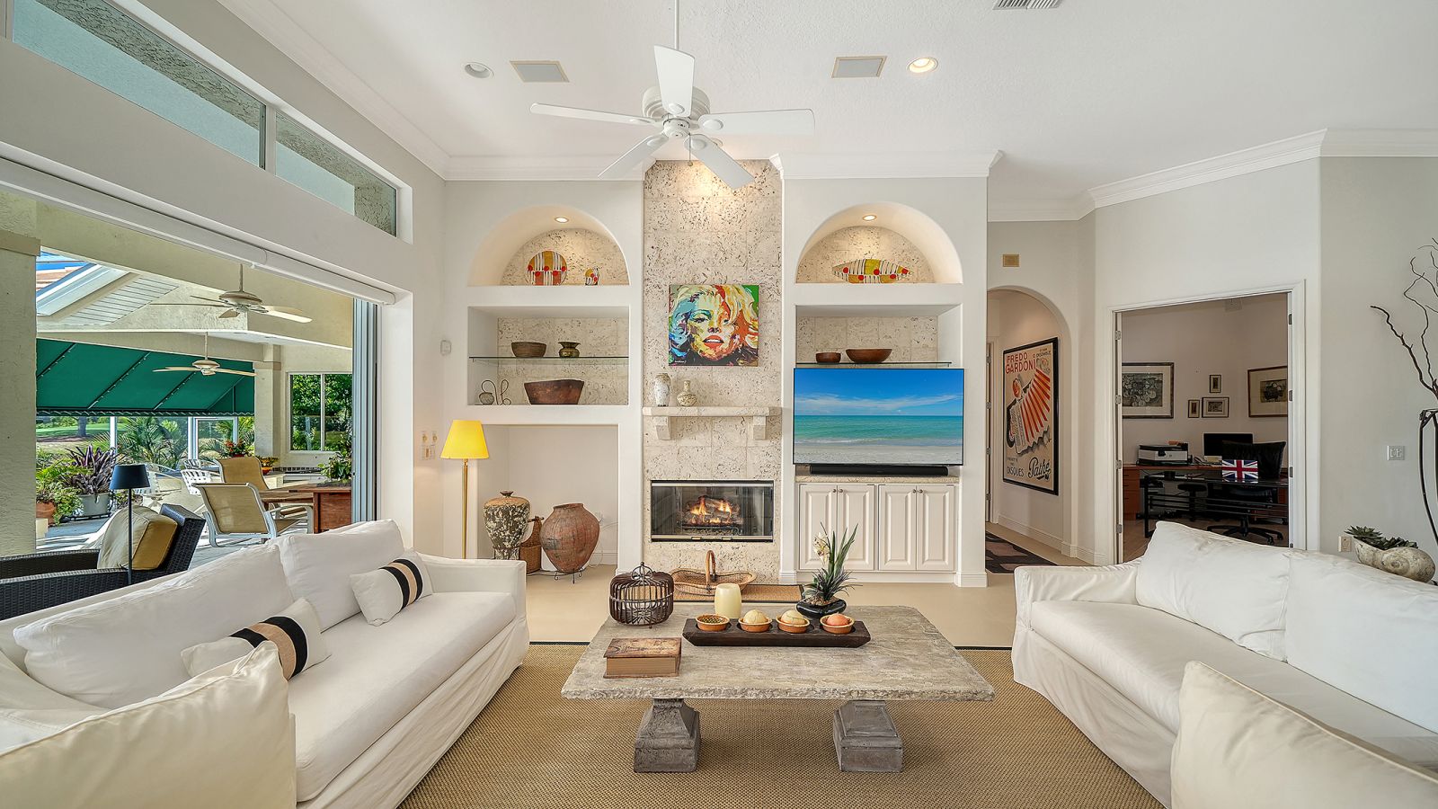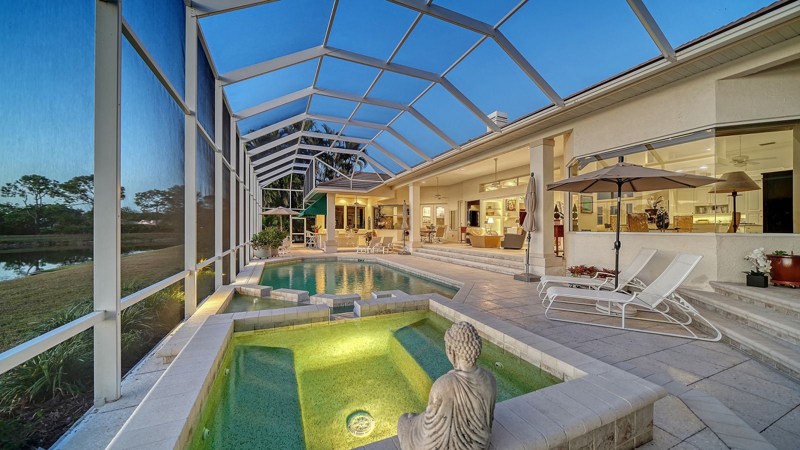 This beautiful John Cannon home has arguably the best water views in the whole of University Park! Boasting 3 bedrooms, 3 baths + den, a 3-car side-return garage, and a huge pool deck, this 3,100-square-foot home is set on 0.4 acre of lushly landscaped property against a backdrop of expansive west-facing lake and golf course views. The home has been fastidiously maintained and beautifully updated. The split-bed floor one-story plan is anchored by a stunning living area with volume ceilings, a striking coral-stone fireplace surround, built-in shelving, and pocket sliders to a huge screened terrace with a sparkling pool and jaw-dropping water views. The primary suite has a large bedroom and spacious seating area overlooking the pool and lake, two walk-in closets, and a spacious bathroom with quartz cabinetry and a vanity desk. The kitchen was remodeled in 2018 with sleek granite countertops, and the appliances were all updated in the past couple of years with Thermador and Wolf fixtures. This home boasts an abundance of natural light in every room which, combined with extra features including high ceilings, a neutral palette, plantation shutters, sunshades, built-in features, and a whole-house generator, represents incredible value in a prime location behind the gates of this sought-after country club University Park Country Club is a gated, resident-owned community offering a 27-hole Ron Garl-designed golf course, eleven lighted Har-Tru tennis courts, four pickleball courts, croquet, a fitness center, and multiple on-site dining options. Miles of tree-lined streets provide opportunities for walking and biking, and a variety of social clubs and organized activities are available to residents. Located approximately four miles from downtown Sarasota, the community provides convenient access to shopping, dining, cultural venues, healthcare, and major transportation routes. University Town Center, with its wide selection of shops, restaurants, and fitness studios, is about two miles away, along with Nathan Benderson Park and nearby Mote Marine facilities. Gulf Coast beaches, SRQ airport, the Ringling Museum, boating options, and St. Armands Circle are all within an estimated 15-minute drive.
