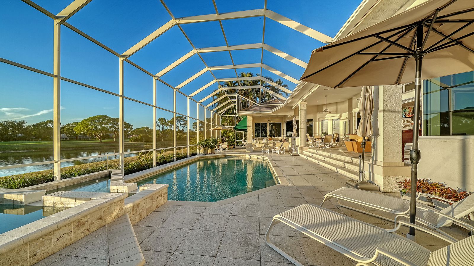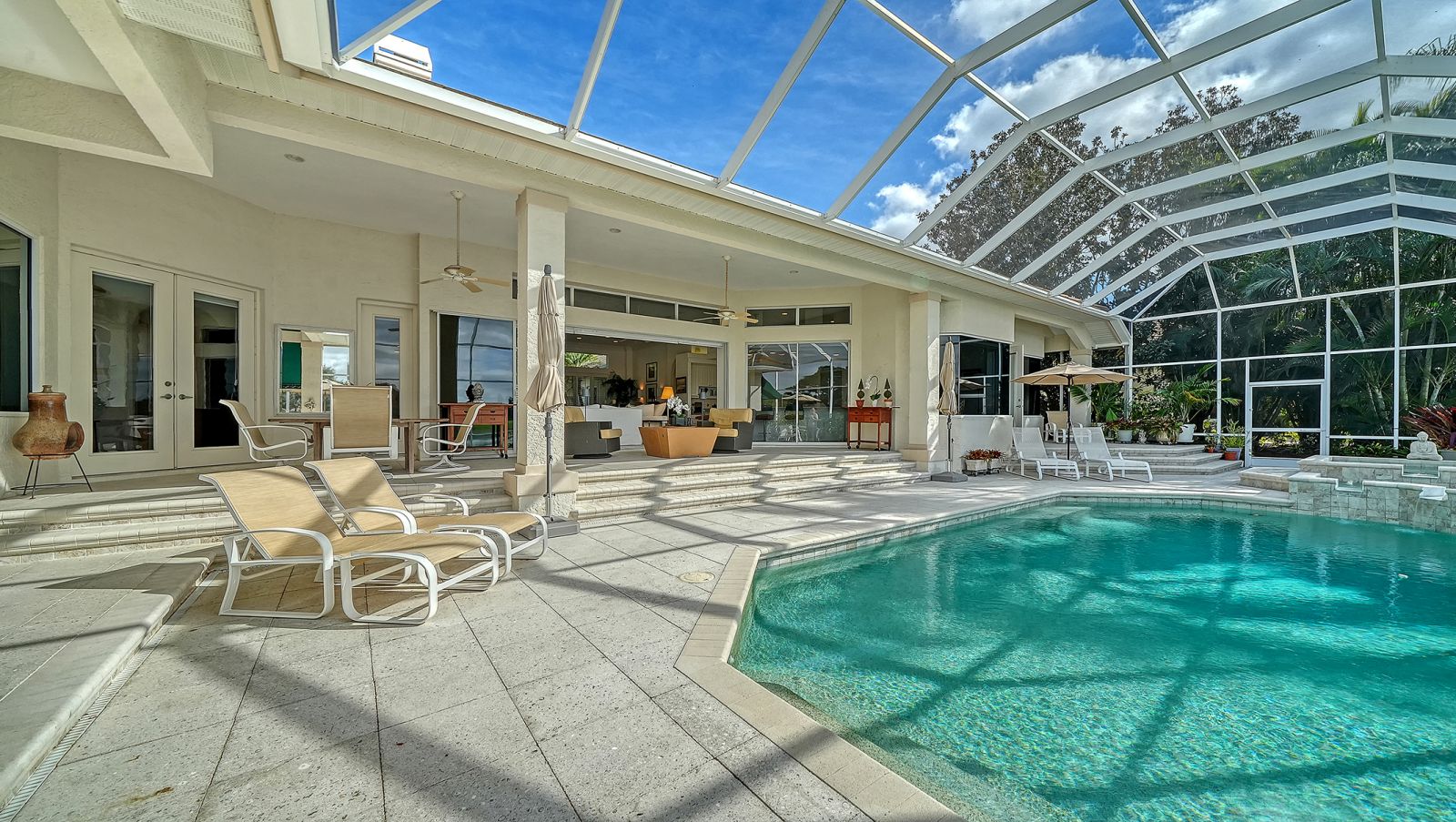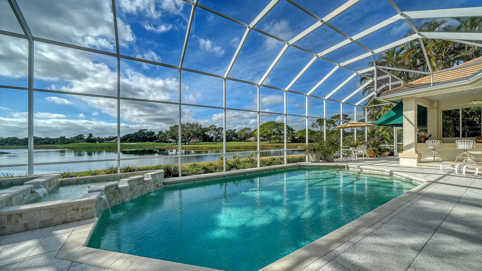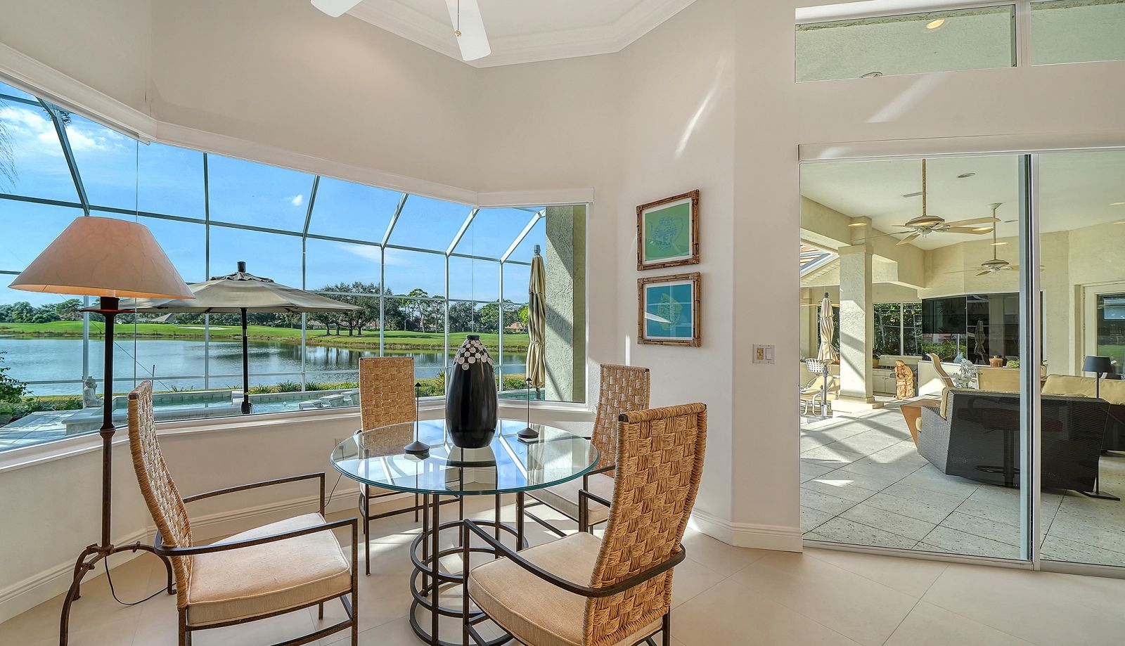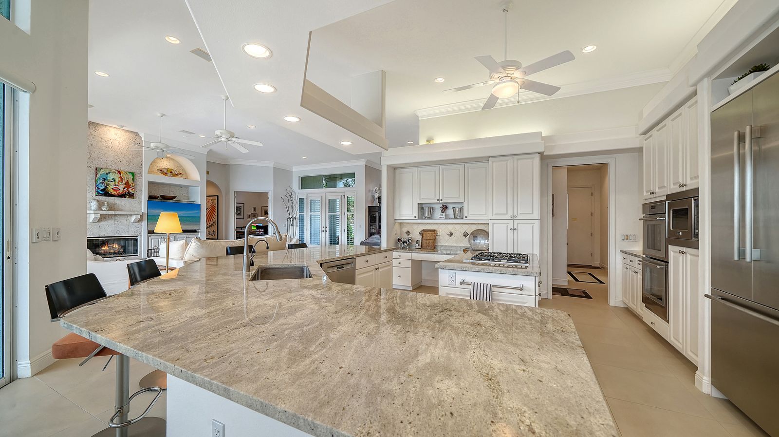 This beautiful John Cannon home has arguably the best water views in the whole of University Park! Boasting 3 bedrooms, 3 baths + den, a 3-car side-return garage, and a huge pool deck, this 3,100-square-foot home is set on 0.4 acre of lushly landscaped property against a backdrop of expansive west-facing lake and golf course views. The home has been fastidiously maintained and beautifully updated. The split-bed floor one-story plan is anchored by a stunning living area with volume ceilings, a striking coral-stone fireplace surround, built-in shelving, and pocket sliders to a huge screened terrace with a sparkling pool and jaw-dropping water views. The primary suite has a large bedroom and spacious seating area overlooking the pool and lake, two walk-in closets, and a spacious bathroom with quartz cabinetry and a vanity desk. The kitchen was remodeled in 2018 with sleek granite countertops, and the appliances were all updated in the past couple of years with Thermador and Wolf fixtures. This home boasts an abundance of natural light in every room which, combined with extra features including high ceilings, a neutral palette, plantation shutters, sunshades, built-in features, and a whole-house generator, represents incredible value in a prime location behind the gates of this sought-after country club University Park Country Club is a gated, resident-owned community offering a 27-hole Ron Garl-designed golf course, eleven lighted Har-Tru tennis courts, four pickleball courts, croquet, a fitness center, and multiple on-site dining options. Miles of tree-lined streets provide opportunities for walking and biking, and a variety of social clubs and organized activities are available to residents. Located approximately four miles from downtown Sarasota, the community provides convenient access to shopping, dining, cultural venues, healthcare, and major transportation routes. University Town Center, with its wide selection of shops, restaurants, and fitness studios, is about two miles away, along with Nathan Benderson Park and nearby Mote Marine facilities. Gulf Coast beaches, SRQ airport, the Ringling Museum, boating options, and St. Armands Circle are all within an estimated 15-minute drive.