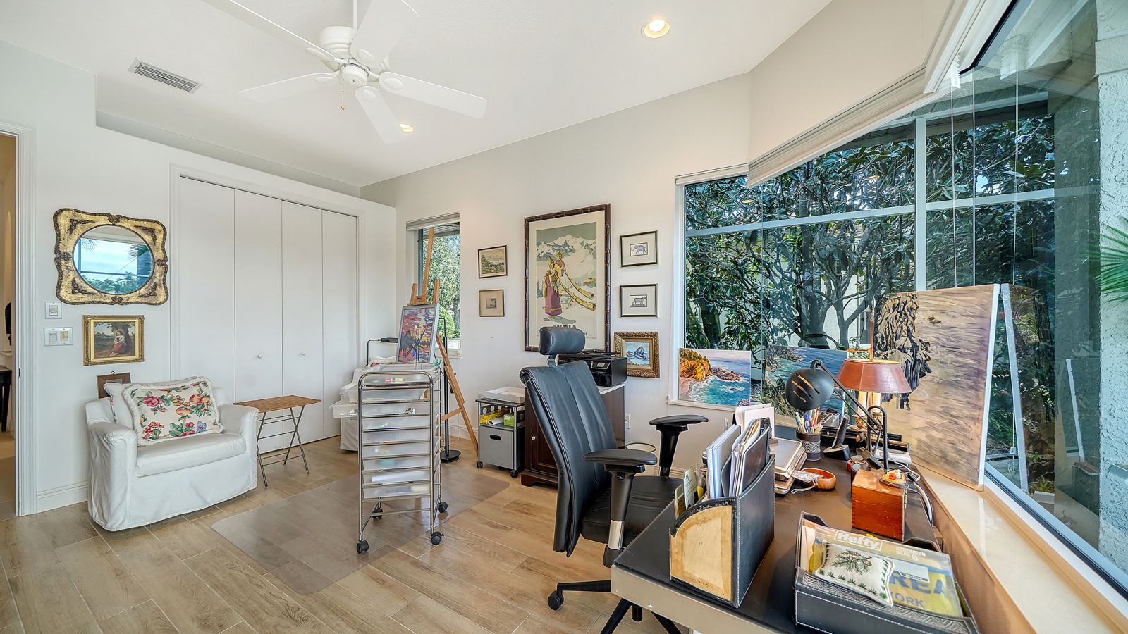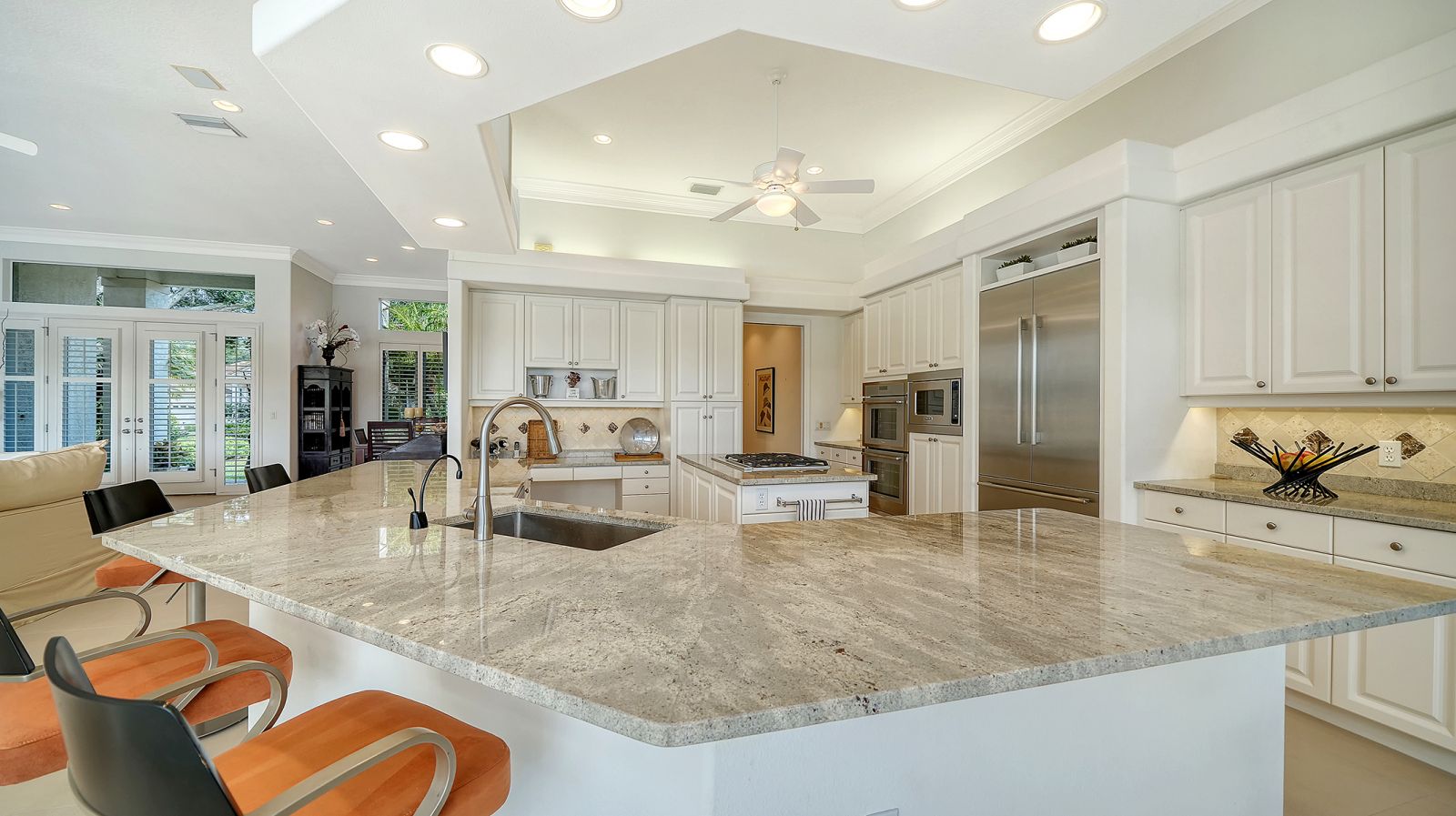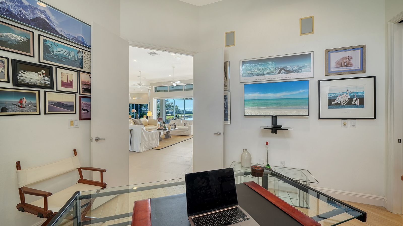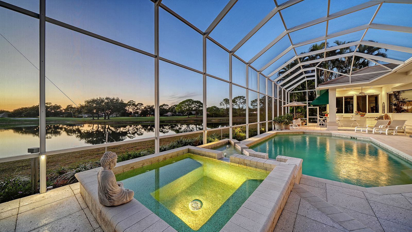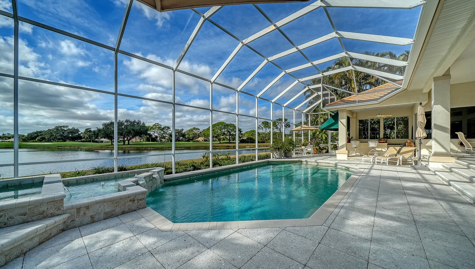 This beautiful John Cannon home has arguably the best water views in the whole of University Park! Boasting 3 bedrooms, 3 baths + den, a 3-car side-return garage, and a huge pool deck, this 3,100-square-foot home is set on 0.4 acre of lushly landscaped property against a backdrop of expansive west-facing lake and golf course views. The home has been fastidiously maintained and beautifully updated. The split-bed floor one-story plan is anchored by a stunning living area with volume ceilings, a striking coral-stone fireplace surround, built-in shelving, and pocket sliders to a huge screened terrace with a sparkling pool and jaw-dropping water views. The primary suite has a large bedroom and spacious seating area overlooking the pool and lake, two walk-in closets, and a spacious bathroom with quartz cabinetry and a vanity desk. The kitchen was remodeled in 2018 with sleek granite countertops, and the appliances were all updated in the past couple of years with Thermador and Wolf fixtures. This home boasts an abundance of natural light in every room which, combined with extra features including high ceilings, a neutral palette, plantation shutters, sunshades, built-in features, and a whole-house generator, represents incredible value in a prime location behind the gates of this sought-after country club University Park Country Club is a gated, resident-owned community offering a 27-hole Ron Garl-designed golf course, eleven lighted Har-Tru tennis courts, four pickleball courts, croquet, a fitness center, and multiple on-site dining options. Miles of tree-lined streets provide opportunities for walking and biking, and a variety of social clubs and organized activities are available to residents. Located approximately four miles from downtown Sarasota, the community provides convenient access to shopping, dining, cultural venues, healthcare, and major transportation routes. University Town Center, with its wide selection of shops, restaurants, and fitness studios, is about two miles away, along with Nathan Benderson Park and nearby Mote Marine facilities. Gulf Coast beaches, SRQ airport, the Ringling Museum, boating options, and St. Armands Circle are all within an estimated 15-minute drive.
