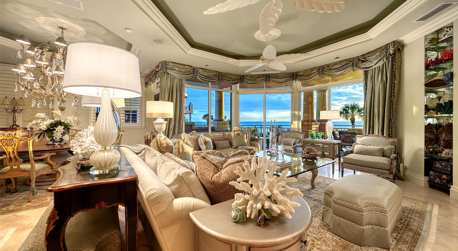 Where every day unfolds like a private Gulf Coast retreat.Set directly along the shimmering waters of the Gulf of Mexico, this refined 3-bedroom, 3-bath residence at La Firenza offers an elevated expression of coastal living on Longboat Key. Encompassing approximately 3,582 square feet, the home pairs timeless elegance with a gracious, livable scale--designed to celebrate light, views, and an effortless indoor-outdoor lifestyle framed by unforgettable sunsets.A private elevator opens to a formal foyer that immediately sets the tone, with paneled walls, mirrored accents, and classic detailing that transitions seamlessly into the main living areas. The layout unfolds into expansive living and dining spaces defined by soaring tray ceilings, custom millwork, and a coastal aesthetic. Walls of glass along the Gulf-facing side of the residence, drawing the horizon into nearly every principal room and creating a constant connection to the water. Multiple seating areas allow for both intimate moments and elegant entertaining, all oriented toward the terraces and the ever-changing Gulf beyond.The primary suite is a tranquil sanctuary positioned to maximize sunset views, offering generous proportions, layered ceiling details, and direct access to the terrace. Guest suites are thoughtfully placed to provide privacy and comfort, each with well-appointed en-suite baths. Throughout the residence, finishes reflect a classic, refined style--stone flooring, bespoke cabinetry, architectural ceilings, and carefully curated lighting--creating a home that feels both polished and inviting.Outdoor living is an essential extension of the interior, with a spacious terrace ideal for dining, lounging, and sunset gatherings, complete with a summer kitchen overlooking the beach. Residents of La Firenza enjoy a boutique, gated setting with private beach access, a heated beachfront pool and spa, fitness facilities, and secure garage parking. Ideally located near the dining, shopping, and cultural offerings of Longboat Key and St. Armands Circle, this exceptional residence offers a rare opportunity to experience beachfront living defined by elegance, privacy, and enduring coastal beauty.