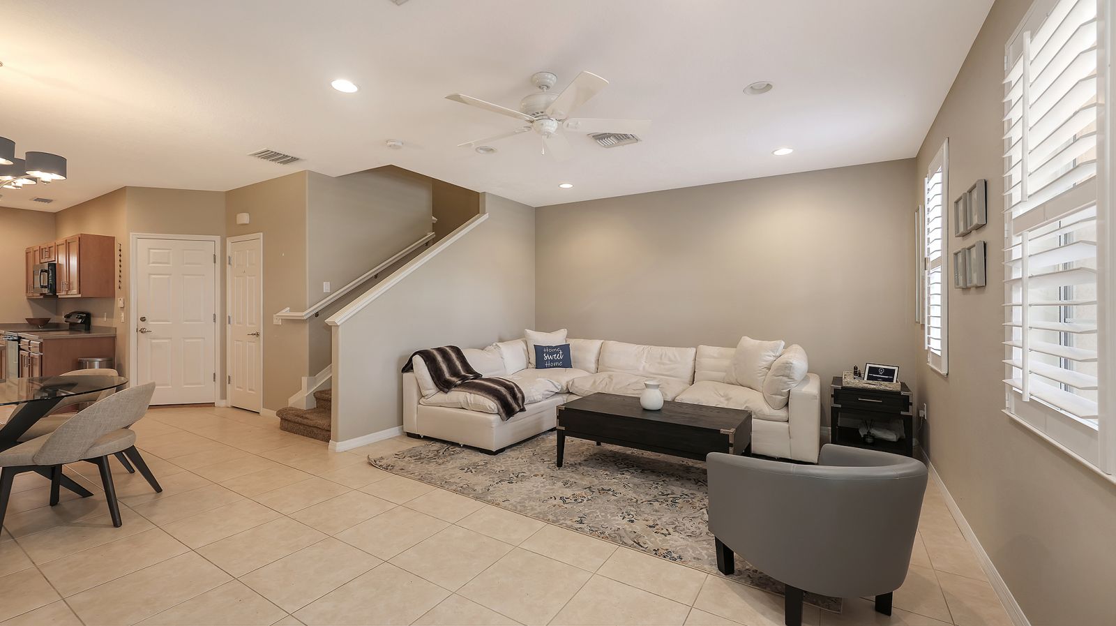 Spacious 1,660 square feet of well-designed living space awaits in this thoughtfully laid out townhome. The residence features three bedrooms, two full and one half bathrooms and a one car attached garage for your convenience. This functional floorplan provides ample room for comfortable daily life. Beautiful Plantation Shutters adorn the large windows to easily allow ample natural lighting.The sunset facing primary bedroom offers a serene retreat, with a spacious layout and massive ensuite bathroom and walk in closet. Two additional bedrooms provide flexible usage, whether as a home office, guest room, or personal retreat. The bathrooms are tastefully appointed, ensuring modern convenience and privacy.The open concept design seamlessly integrates the living, dining, and cooking areas, creating a harmonious flow throughout the home. Abundant natural light and high-quality finishes contribute to the inviting ambiance. The kitchen offers a breakfast bar and an extra large walk in pantry/storage area. The laundry is inside and pockets off the kitchen area. The private one car attached garage allows you to enter the home directly for both security and convenience.This townhome presents an ideal living situation for those seeking a well-appointed, comfortable, and adaptable residence close to the beaches yet secure from weather events. A single bay garage is located at the rear of the building and attached to enter the residence. There are additional spaces for driveway parking as well. The lake facing front door has a covered porch large enough to enjoy patio seating while relaxing to watch the Sunset outdoors or just observe the natural habitat along the shoreline of the lake.You'll appreciate maintenance free living at this picturesque community with playground, community pool and tennis available for your enjoyment.