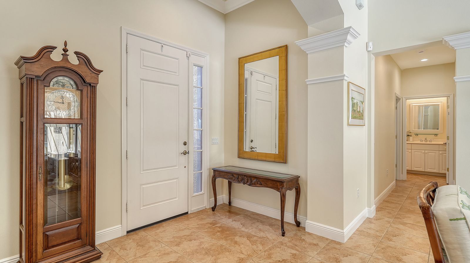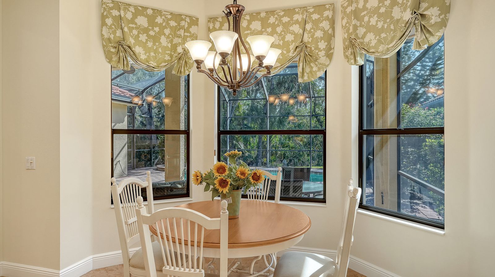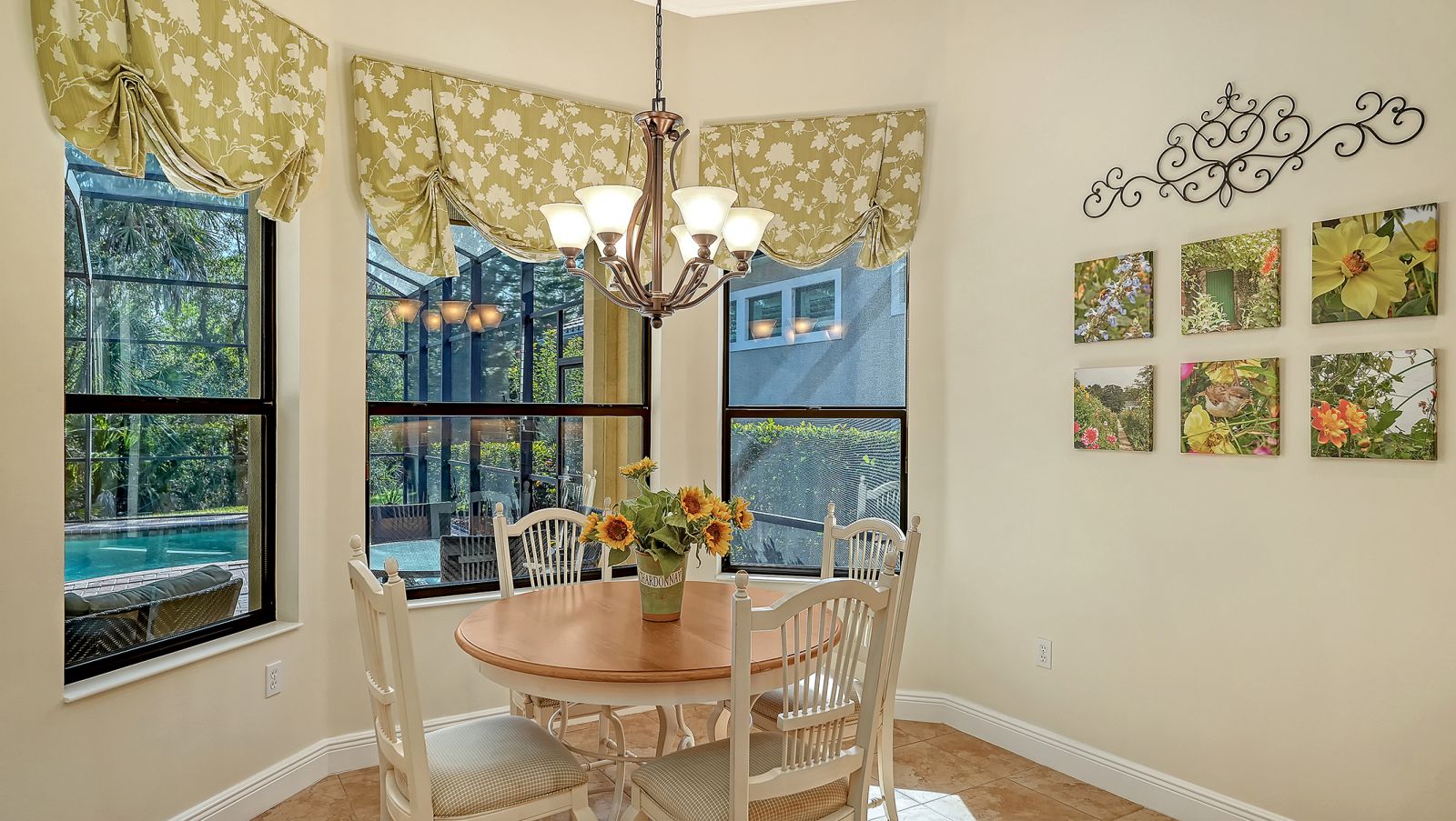 Located in the sought-after maintenance-free Silverwood enclave of the prestigious gated Lakewood Ranch Country Club, this Neal Homes residence combines timeless craftsmanship with refined comfort in a beautifully landscaped setting. A gracious entry reveals tile flooring throughout the main living areas, crown molding, recessed lighting, and a living room enhanced by beam detailing on the tray ceiling, custom built-ins, and gorgeous views of the screened lanai, pool, and spa, and lush landscaping. The kitchen is thoughtfully designed with stainless steel appliances including a five-burner LG gas range, granite countertops, a center island, ample cabinetry, pendant and under-cabinet task lighting, a large pantry, and an inviting eat-in area overlooking the pool. A formal dining room adds elegance with its ceiling medallion and natural flow for entertaining. The expansive primary suite offers a quiet retreat with high-end carpet, 2 spacious walk-in closets, private French-door access to the lanai, and a spa-inspired bath featuring dual vanities, a soaking tub, a walk-in glass-and-tile shower, and a separate water closet. Two generously sized guest bedrooms provide comfort and versatility--one currently serving as a bright office space--with large closets, including one walk-in, and access to a well-appointed guest bath with a bathtub/shower combination and stylish vanity. The home includes a laundry room with newer full-size LG washer, dryer and utility sink, plus an oversized 2-car courtyard-facing garage with plentiful built-in storage and an additional convenient utility sink. White plantation shutters, high-end finishes, a new water heater (2025), 3M protection on all windows, hurricane-rated fabric panel for the front entry and mature landscaping elevate the overall safety and appeal, while the herringbone-pattern brick paver driveway and meticulously maintained grounds create an inviting arrival. Silverwood is known for its winding streets, majestic trees, and wide sidewalks, all within the guard-gated Lakewood Ranch Country Club, where optional membership in the Club provides access to 4 championship golf courses, a state-of-the-art fitness center, tennis and pickleball courts, resort-style pools, multiple clubhouse dining options, and miles of scenic trails. Lakewood Ranch, America's #1 rated master-planned community, is nationally recognized for its exceptional lifestyle, offering beautifully maintained neighborhoods, scenic trails and parks, top-rated schools, and vibrant town centers filled with dining, shopping, and year-round events...all just minutes from premier beaches, medical centers, and Sarasota's cultural attractions.