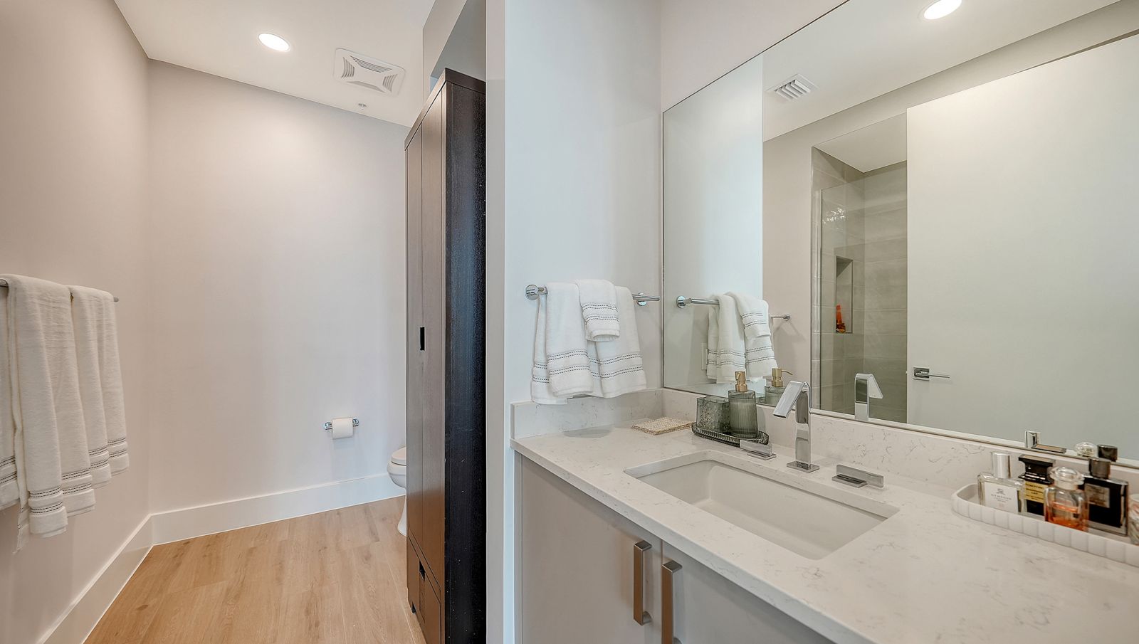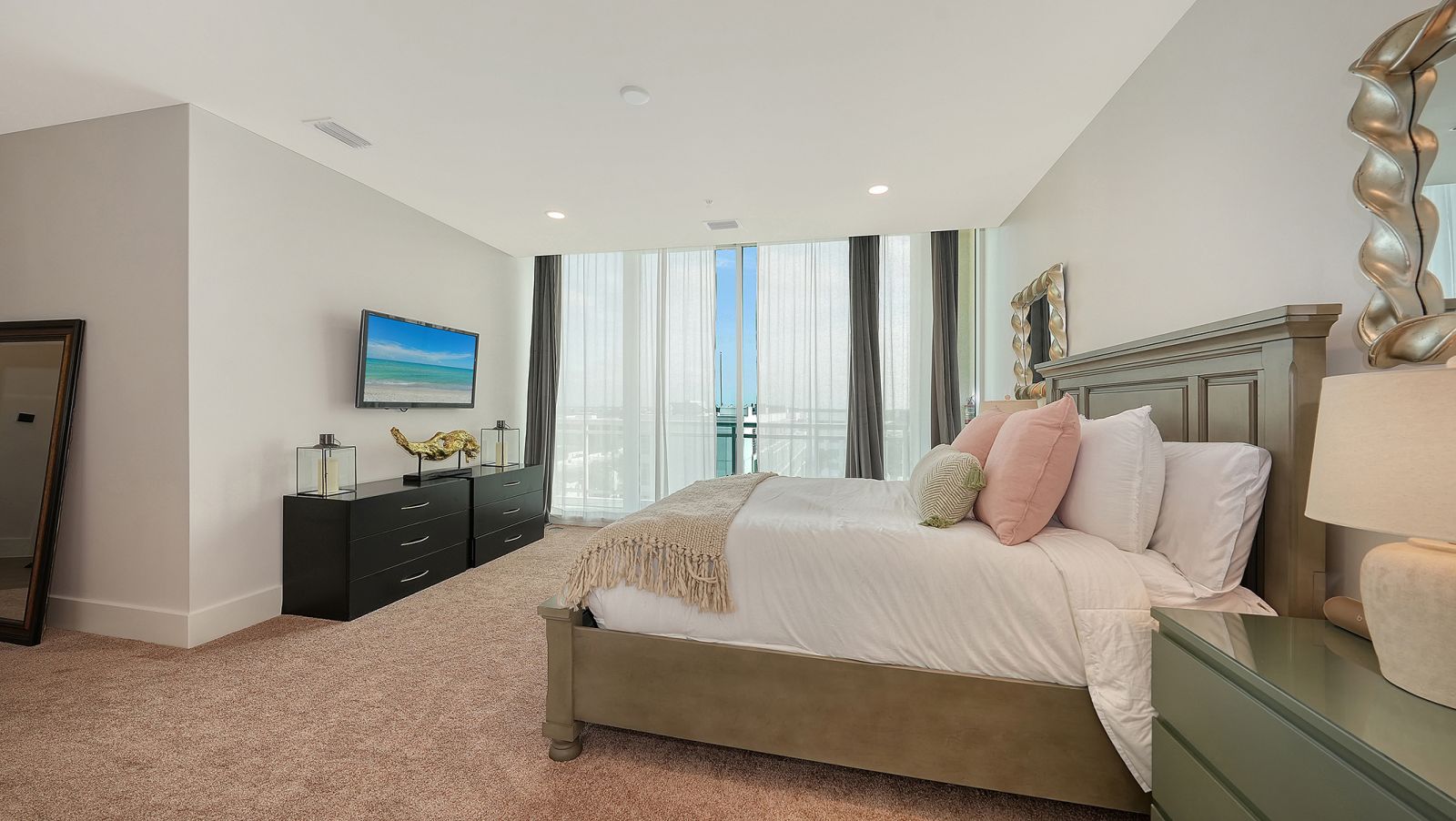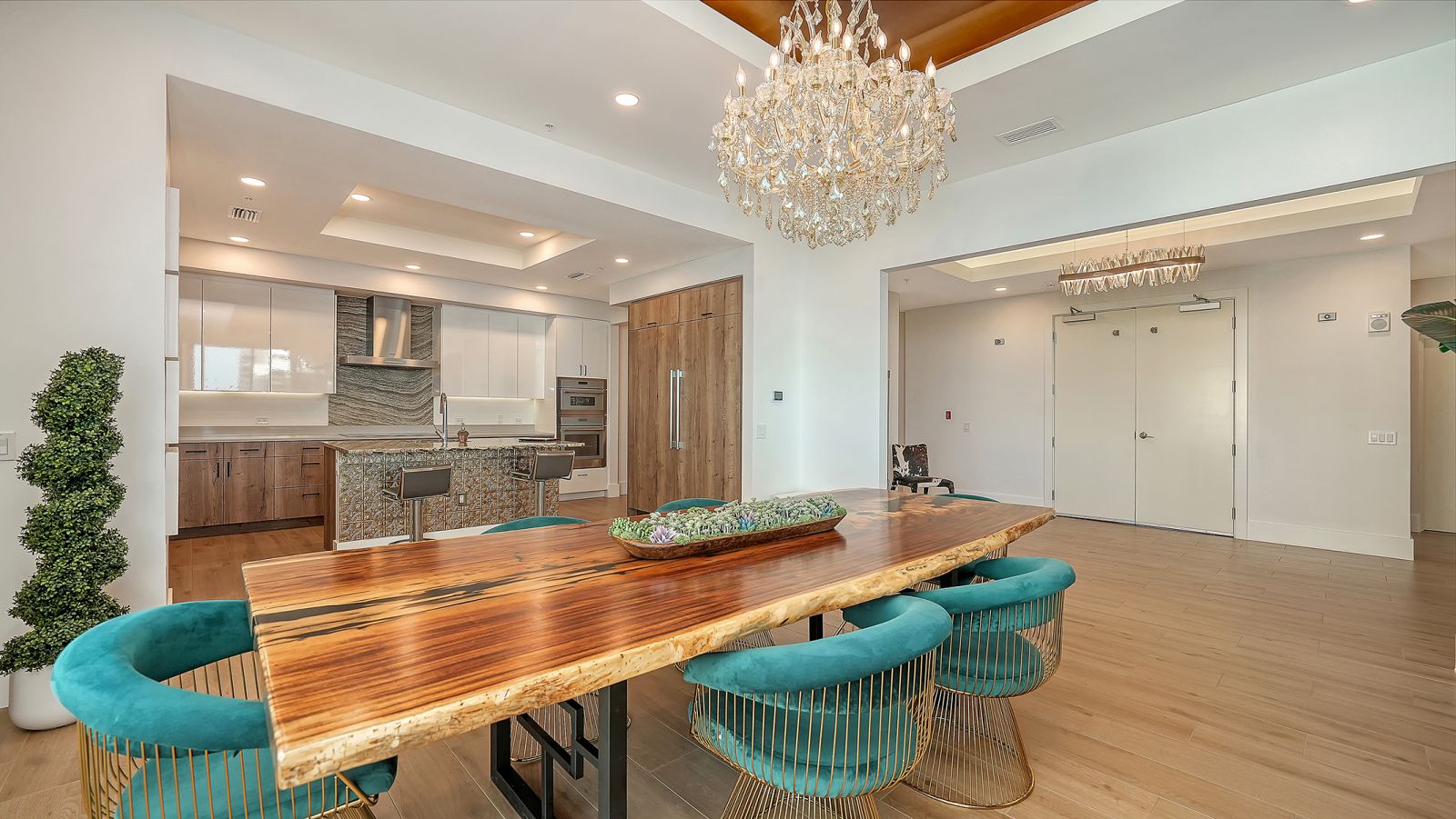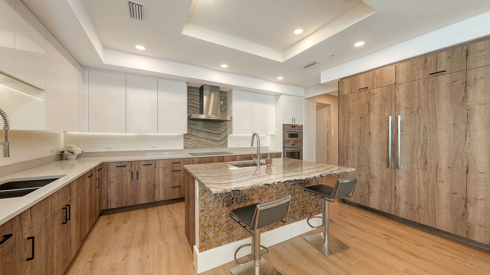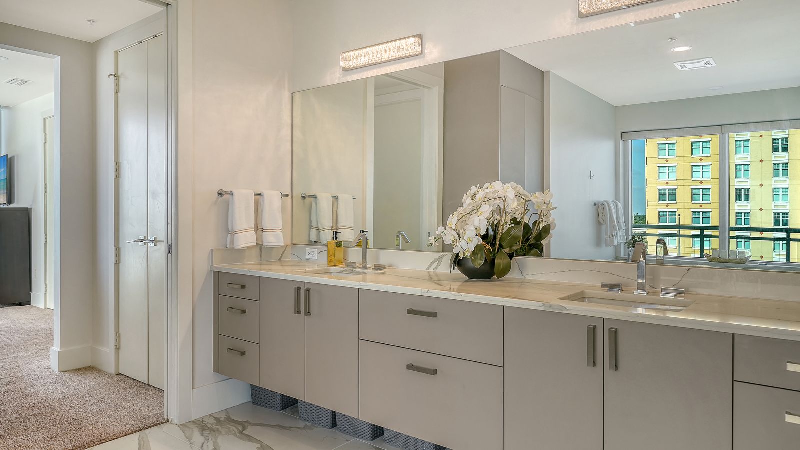 Enjoy refined elevated Living at The BLVD offering more than a home--this northwest corner 4-bedroom unit delivers a premier vantage to Sarasota's spectacular bay and city skyline views from sunrise to sunset. Perfectly positioned in the Bayfront District, this modern masterpiece rises above the ordinary to bestow a stunning expression of Sarasota living. Expansive floor-to-ceiling glass along with a 1,356 sq ft wraparound balcony reveal sweeping unobstructed bay vistas and glittering city views. A private elevator entry introduces a flowing 3,698 sq ft layout with tons of natural light designed to showcase the view from nearly every space. The generous great room is designed for both comfort and entertaining, highlighted by soaring tray ceilings, a custom wooden slatwall, and wood-planked tile flooring. The kitchen serves as a striking focal point, blending refined cabinetry and a tailored tile backsplash for a clean, contemporary aesthetic. A quartz-clad island provides abundant workspace and storage, while premium Thermador appliances--including convection cooktop, built-in wall oven, wine refrigerator, and dual pantries with custom shelving--cater to both everyday living and elevated culinary pursuits. The primary suite offers a tranquil retreat, featuring two walk-in closets and a spa-inspired bath complete with a soaking tub and an expansive glass-enclosed shower featuring luxurious his-and-her Rain Head, enhanced with integrated steam for a spa-like retreat. An additional oversized bedroom suite currently used as a bonus room could become the primary bedroom. Two additional bedroom suites each enjoy private terrace access and indulgent en-suite baths. A stylish powder room and a well-appointed laundry room complete the interior.BLVD is an intimate, boutique residence with just forty-nine homes, distinguished by its curated, hotel-inspired amenities and full-time concierge services. Residents enjoy an elegant social lounge with service bar, a state-of-the-art fitness center, conference facilities, a temperature-controlled wine room with private secured storage, an indoor driving range, and a dedicated dog grooming suite. An expansive outdoor terrace provides additional lounge spaces and thoughtfully designed pet amenities. At the pinnacle of the building, Sarasota's premier rooftop retreat offers an unmatched setting for relaxation and entertaining, featuring a stunning zero-horizon pool, inviting lounge areas, a covered summer kitchen, and a fire pit overlooking the bay. Residence 701 reflects the very essence of the Sarasota lifestyle--where refined luxury and effortless sophistication converge. And COMING SOON - 1000 NORTH Sarasota, an exclusive members-only club located on the bottom floor of the BLVD and centered in the heart of the city's cultural corridor. This private retreat will offer refined dining and handcrafted cocktails. From waterfront strolls and acclaimed dining to world-class arts and cultural events just moments away, BLVD is as much a destination as it is a home.
