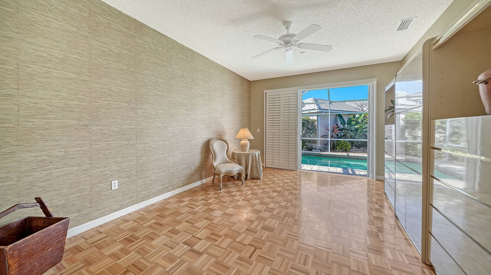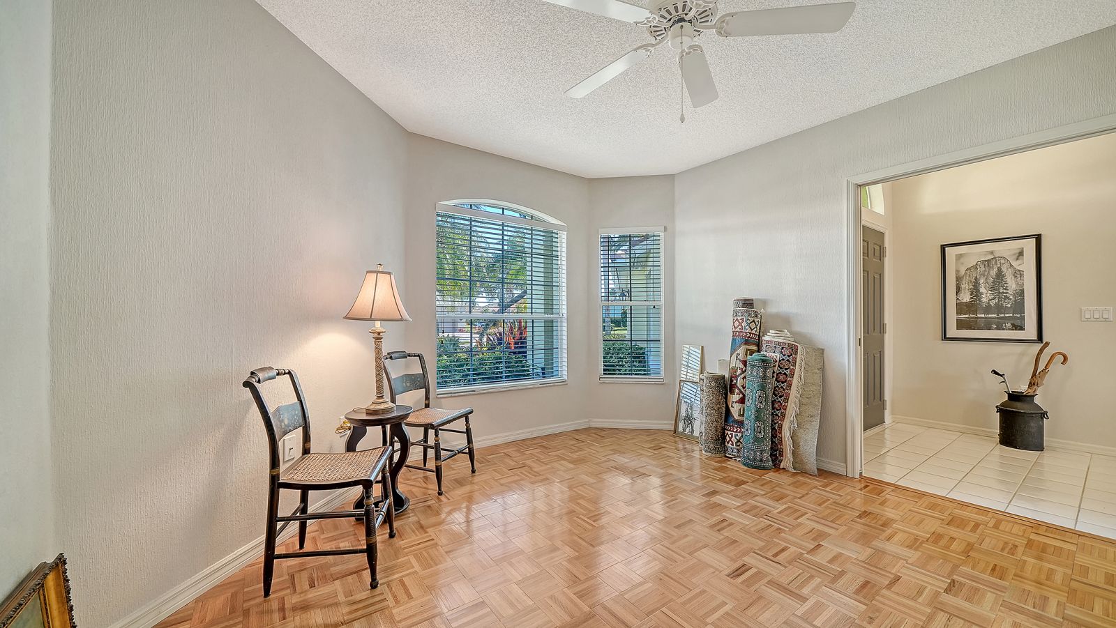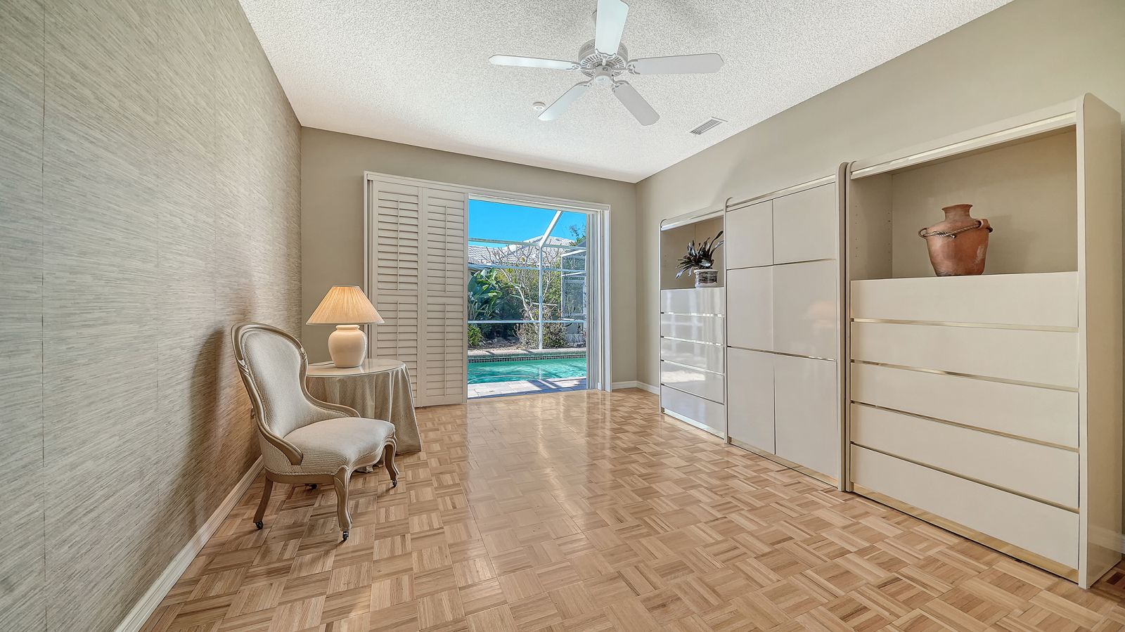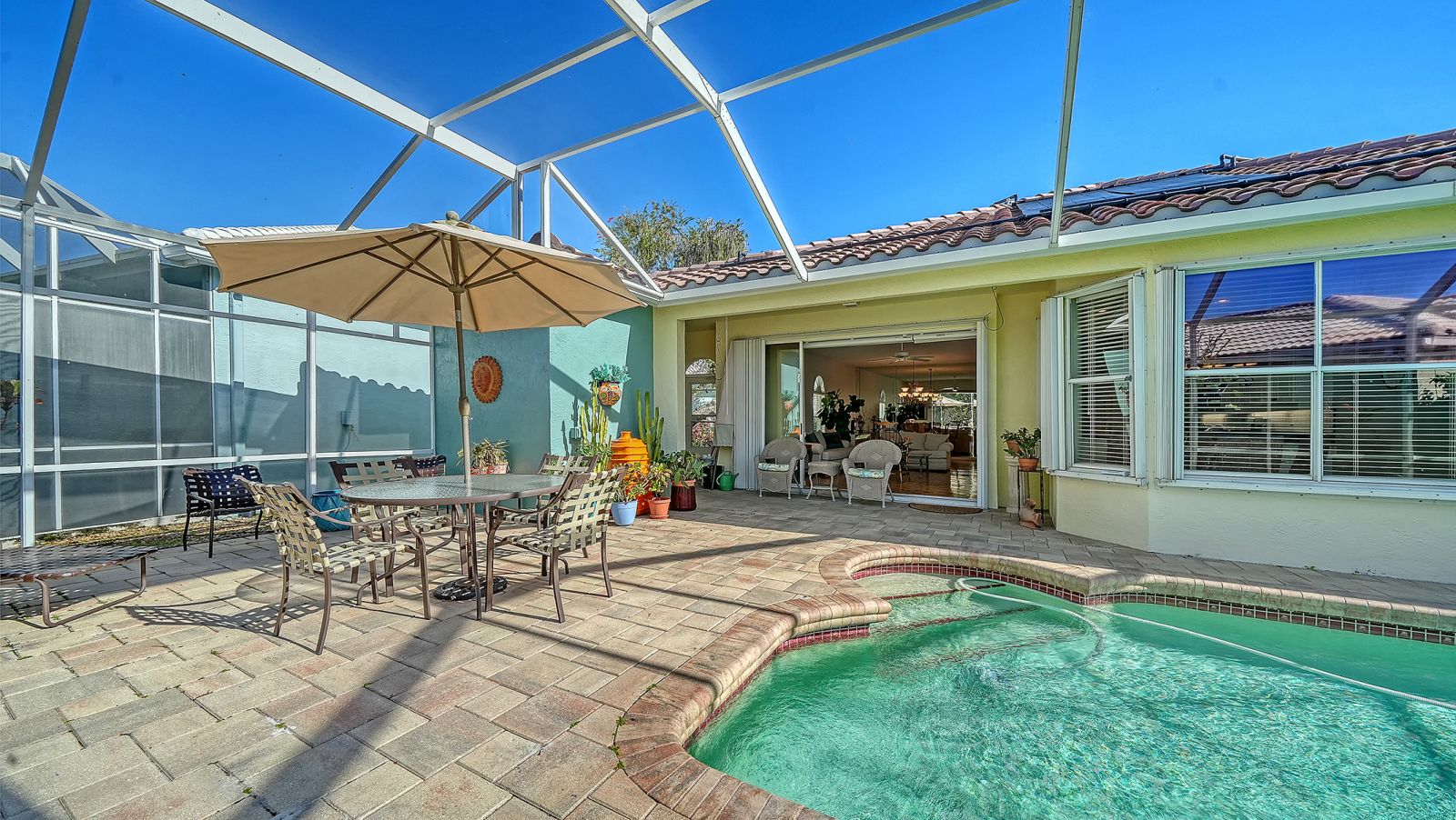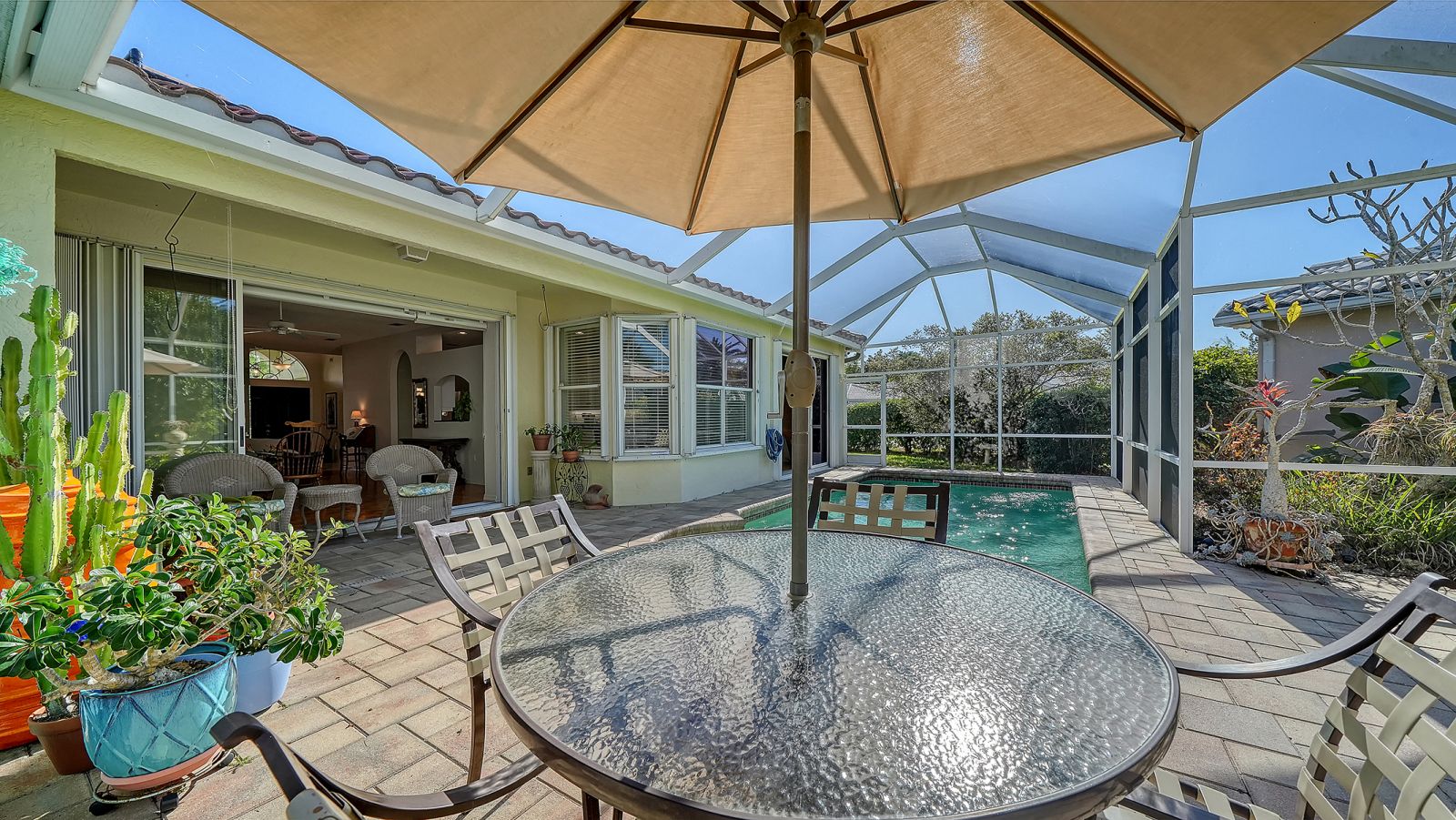 This is a rare opportunity to own a .23-acre corner-lot home in the gated community of Marbella at Palmer Ranch, ideally near the main gate. The property features a spacious grassy area ideal for pets, along with a private, tucked-away garden beside the pool under a beautiful bottlebrush tree. Enjoy the west-facing, solar-heated pool and paver pool deck offering excellent privacy, complemented by an exterior half pool bath, ideal for enjoying Florida's outdoor lifestyle. The barrel tile roof and solar pool heating panels were replaced in November 2024, providing peace of mind. Additional features include hurricane panel protection, non-flood zone status and Evacuation Zone D. The home is move-in ready and offered optionally furnished for the new owner's convenience. Inside, you'll find two bedrooms plus a den, a kitchen with a breakfast area overlooking the pool, a spacious pantry, granite countertops and ample storage, ideal for everyday living and entertaining. Conveniently at the northwest corner of Palmer Ranch, with easy access to Gulf Gate, the library and Siesta Key. Low maintenance fees of $750 semi-annually are modest for this lifestyle. Rentals are not permitted.