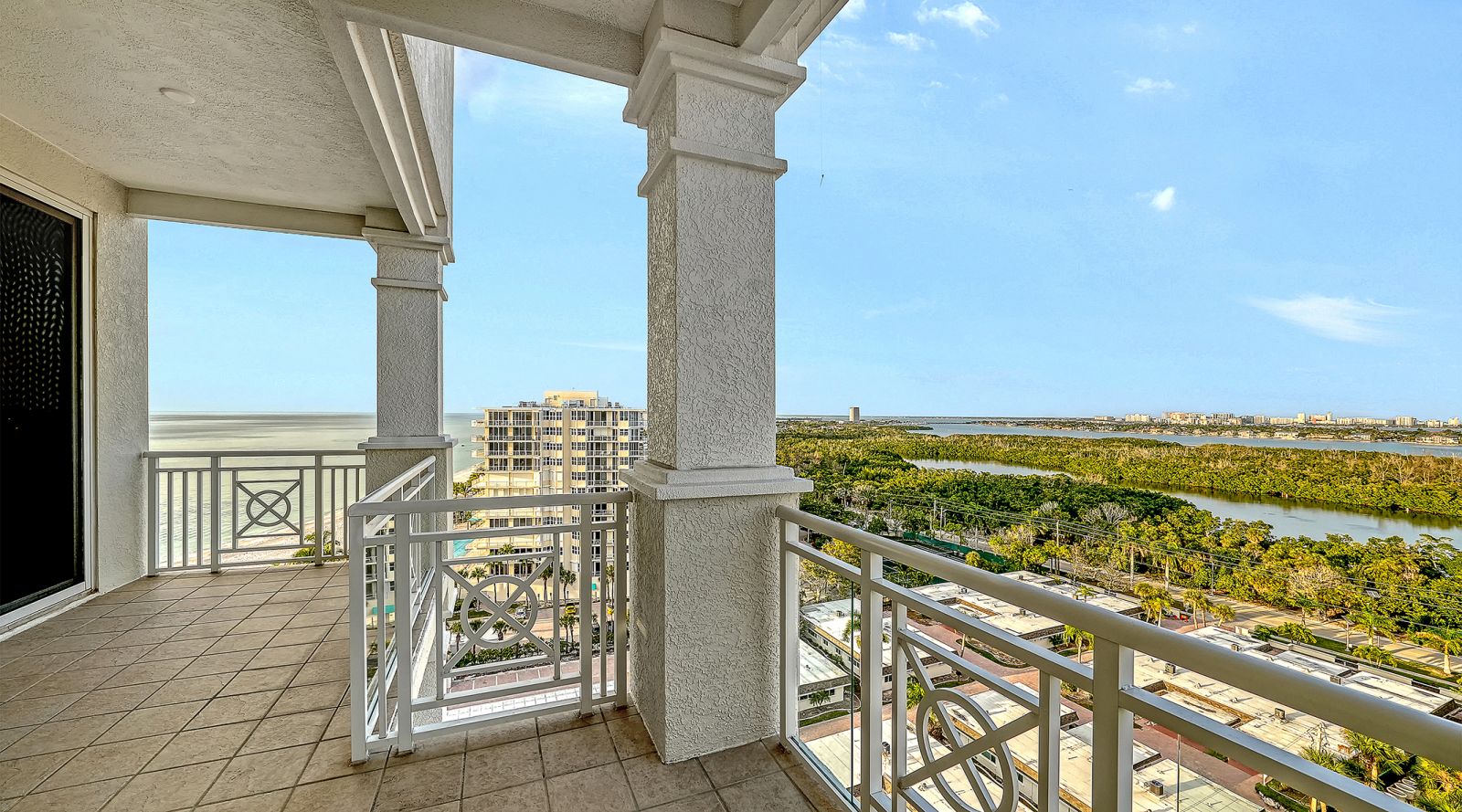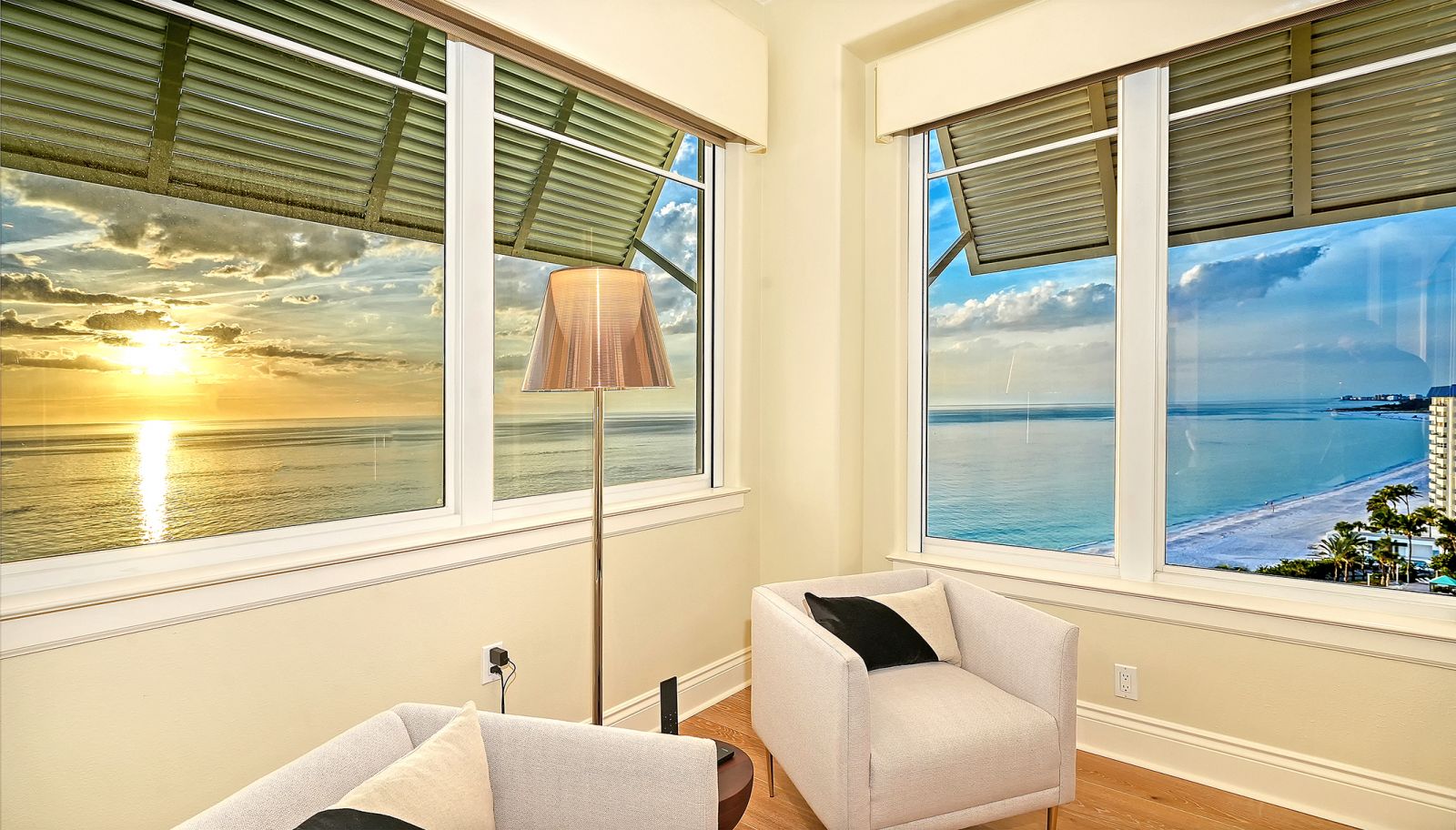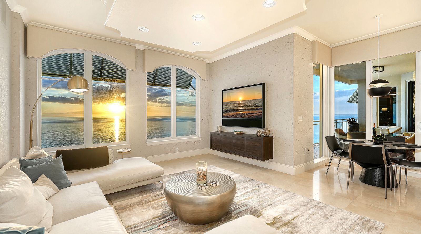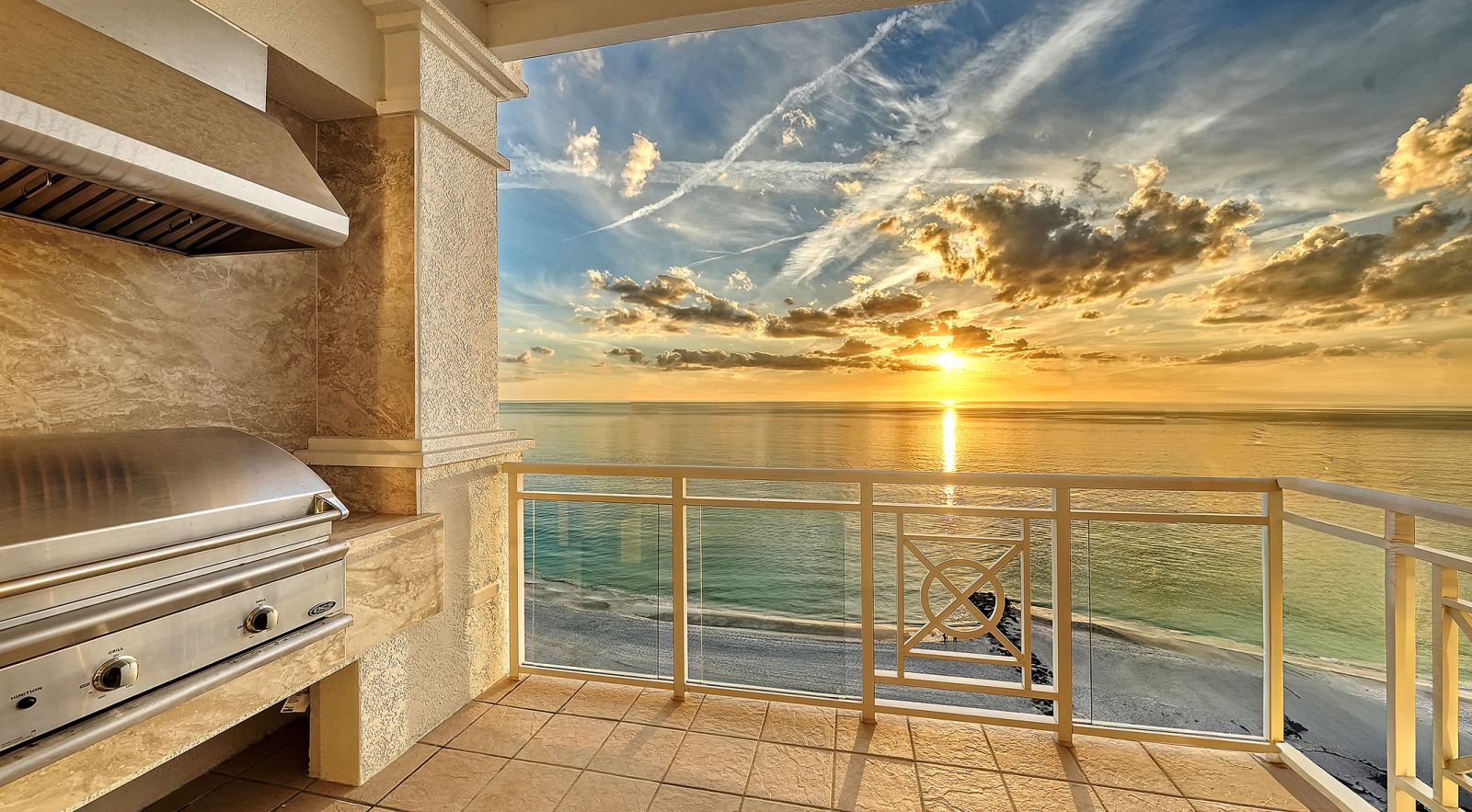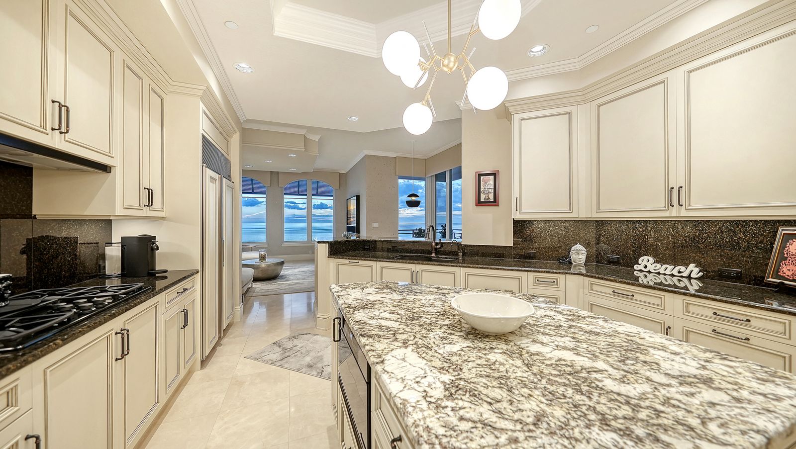 Poised high above the Gulf of Mexico in the coveted & guard-gated Orchid Beach Club, this gulf-to-bay penthouse features breathtaking direct views of azure Gulf waters & expansive Lido beach, dazzling & vibrant sunsets, plus spectacular Bay & Downtown City views. This masterfully renovated 3654 sf condominium embodies refined luxury, bespoke craftsmanship, & is offered turnkey furnished featuring new designer pieces curated by decorator Audrey Arthur. Your private elevator foyer opens to an expansive main living room, where a comprehensive renovation showcases Venetian plaster walls, sculptural Soft Square lighting, and custom floating cabinetry by Metro Cabinet Company, creating an atmosphere of effortless sophistication. Floor-to-ceiling impact-rated sliding glass doors draw the eye to shimmering horizon, ensuring the Gulf remains an ever-present backdrop for gathering and entertaining. The adjacent dining room enjoys equally dramatic views and is anchored by a bespoke floating wine bar, complemented by dining table and chairs imported from Italy. Beyond, the serene family room offers a relaxed coastal setting-quiet, luminous, and framed by sparkling blue water, with custom finishes that evoke warmth and refinement. The kitchen blends craftsmanship and function with custom Westwood Manufacturing cabinetry, refined stone surfaces, a center island, and a suite of chef-caliber appliances including a custom paneled Sub-Zero refrigerator and Faber/Dacor cooking ensemble including double ovens & 5-burner gas cooktop. The Gulf-facing terrace offers an extraordinary expanse of outdoor living space with a granite-clad grill station and stainless hood, ideal for coastal dining and sunset gatherings. The spacious primary suite is a private retreat with sitting area and direct access to the gulf-front terrace, offering an intimate front-row seat to sunset, and the rhythm of the waves. Two custom walk-in closets and a spa-inspired marble bath with a dual-entry glass shower and deep jetted soaking tub complete this serene escape. Two guest suites welcome visitors with bespoke walk-in closets, luxuriously finished baths, and access to a 2nd sweeping terrace capturing enchanting sunrises and views of Sarasota Bay & the sparkling city skyline. Each bedroom is finished with warm wide-plank Legno Bastone floors. Thoughtful updates throughout include Control4 smart home automation w/ LED lighting & electric window treatments, frame art TV, custom window cornices, designer wallpaper, wide-plank wood floors, a reimagined laundry room, and 2025 ACs. A rare private 3-car garage completes this remarkable offering. Life at Orchid Beach Club is defined by indulgent amenities, attentive service, and private beachfront living. Residents enjoy concierge services, on-site management, modern fitness center, massage room, library, game room, beautifully designed club spaces with fireside lounge, terrace, catering kitchen, heated Gulf-front pool & spa, & summer kitchen. Additional pluses include 24-hr guard-gated security, electric vehicle charging stations, bicycle & kayak storage, & 2 well-appointed West Indies-style guest suites. Lido Key offers miles of soft white sand, turquoise water, & lush parkland while nearby St. Armands Circle & downtown Sarasota offer exceptional dining, boutiques, & cultural experiences. Make this exceptional sanctuary yours, an unparalleled lifestyle for the discerning buyer seeking the pinnacle of Gulf-front living.