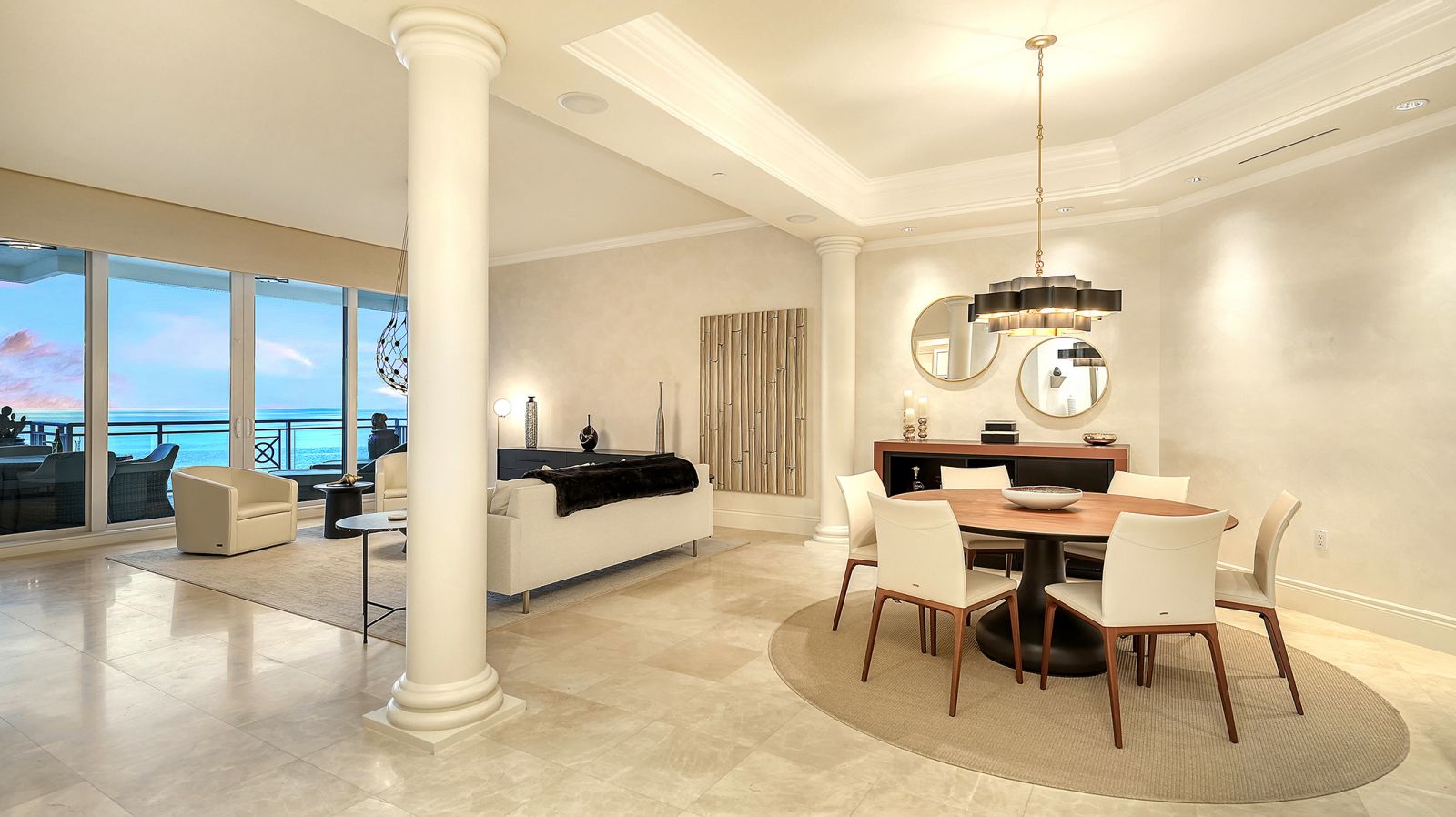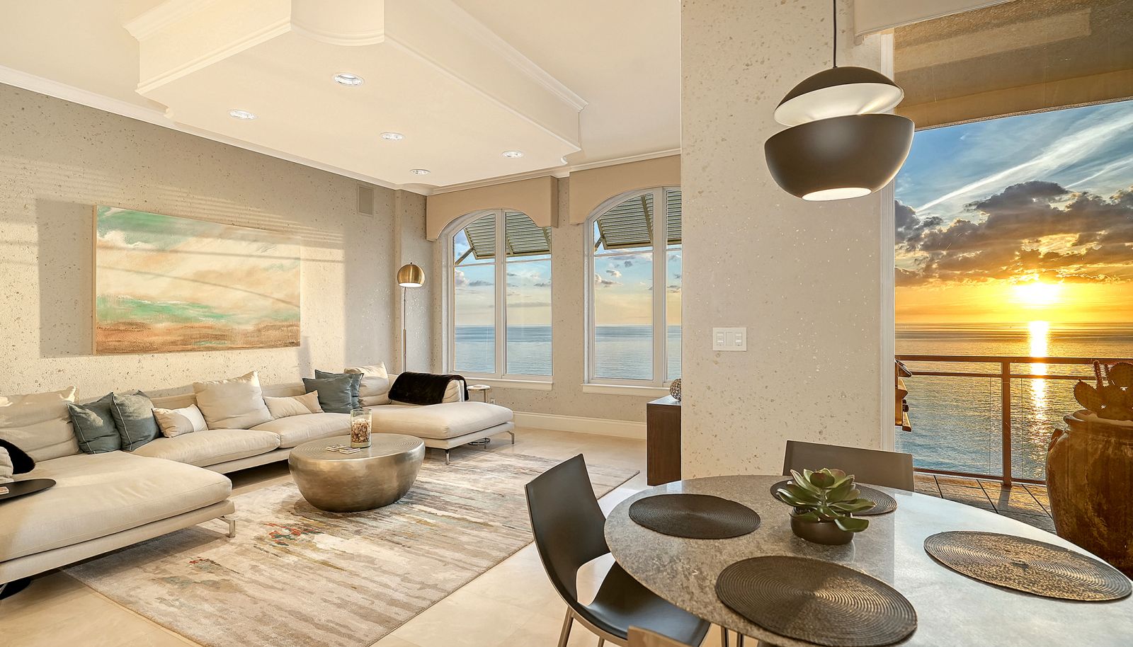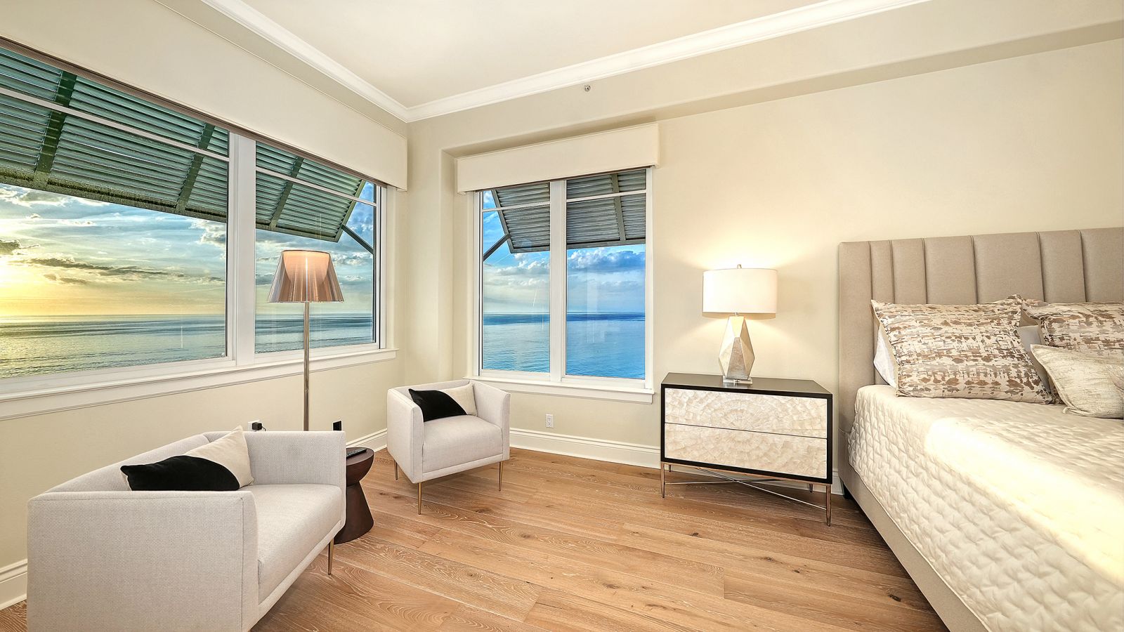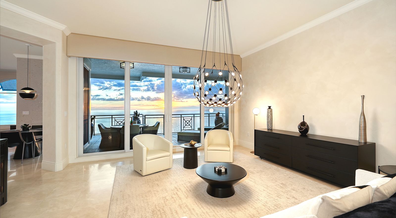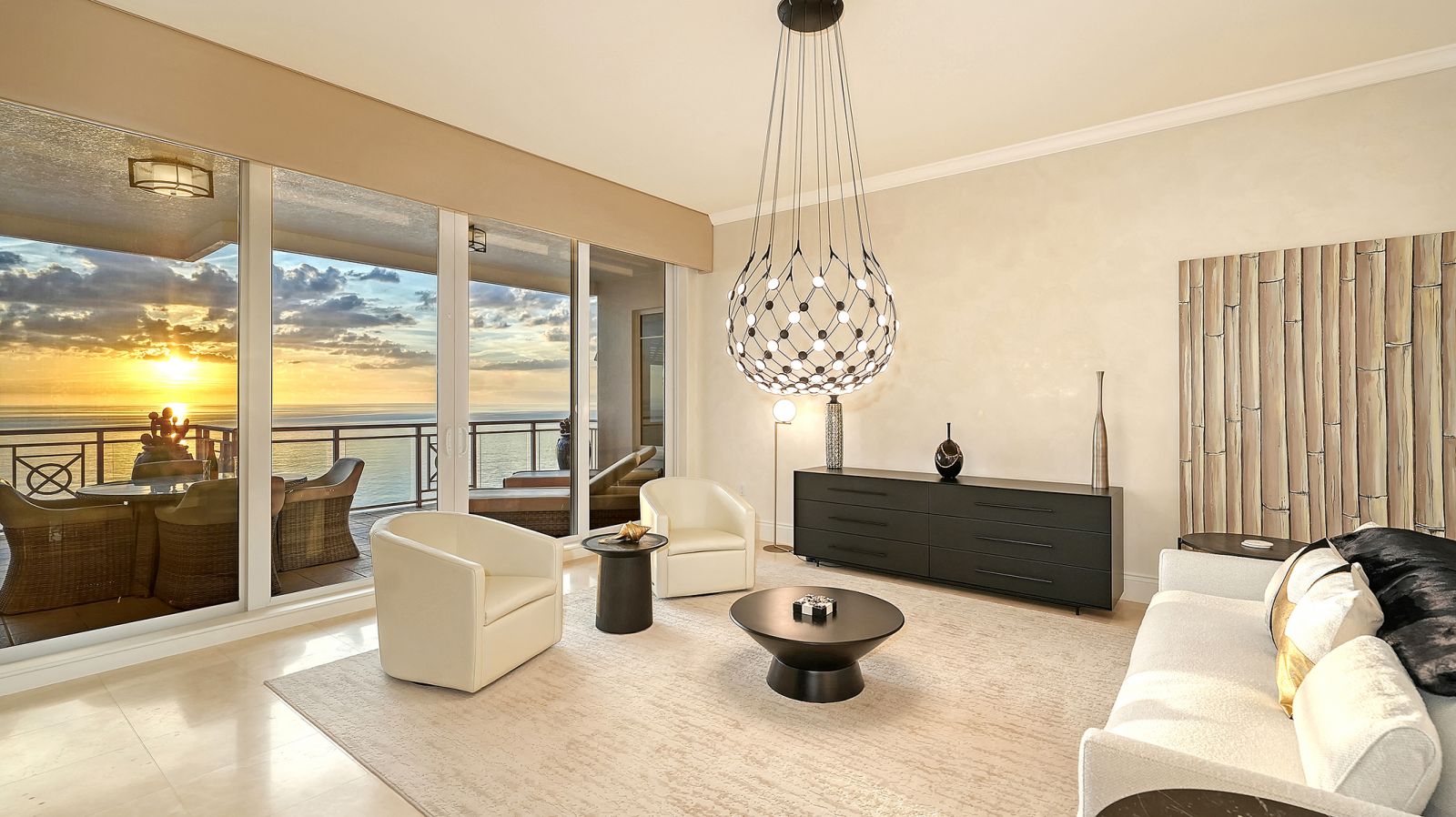 Poised high above the Gulf of Mexico in the coveted & guard-gated Orchid Beach Club, this gulf-to-bay penthouse features breathtaking direct views of azure Gulf waters & expansive Lido beach, dazzling & vibrant sunsets, plus spectacular Bay & Downtown City views. This masterfully renovated 3654 sf condominium embodies refined luxury, bespoke craftsmanship, & is offered turnkey furnished featuring new designer pieces curated by decorator Audrey Arthur. Your private elevator foyer opens to an expansive main living room, where a comprehensive renovation showcases Venetian plaster walls, sculptural Soft Square lighting, and custom floating cabinetry by Metro Cabinet Company, creating an atmosphere of effortless sophistication. Floor-to-ceiling impact-rated sliding glass doors draw the eye to shimmering horizon, ensuring the Gulf remains an ever-present backdrop for gathering and entertaining. The adjacent dining room enjoys equally dramatic views and is anchored by a bespoke floating wine bar, complemented by dining table and chairs imported from Italy. Beyond, the serene family room offers a relaxed coastal setting-quiet, luminous, and framed by sparkling blue water, with custom finishes that evoke warmth and refinement. The kitchen blends craftsmanship and function with custom Westwood Manufacturing cabinetry, refined stone surfaces, a center island, and a suite of chef-caliber appliances including a custom paneled Sub-Zero refrigerator and Faber/Dacor cooking ensemble including double ovens & 5-burner gas cooktop. The Gulf-facing terrace offers an extraordinary expanse of outdoor living space with a granite-clad grill station and stainless hood, ideal for coastal dining and sunset gatherings. The spacious primary suite is a private retreat with sitting area and direct access to the gulf-front terrace, offering an intimate front-row seat to sunset, and the rhythm of the waves. Two custom walk-in closets and a spa-inspired marble bath with a dual-entry glass shower and deep jetted soaking tub complete this serene escape. Two guest suites welcome visitors with bespoke walk-in closets, luxuriously finished baths, and access to a 2nd sweeping terrace capturing enchanting sunrises and views of Sarasota Bay & the sparkling city skyline. Each bedroom is finished with warm wide-plank Legno Bastone floors. Thoughtful updates throughout include Control4 smart home automation w/ LED lighting & electric window treatments, frame art TV, custom window cornices, designer wallpaper, wide-plank wood floors, a reimagined laundry room, and 2025 ACs. A rare private 3-car garage completes this remarkable offering. Life at Orchid Beach Club is defined by indulgent amenities, attentive service, and private beachfront living. Residents enjoy concierge services, on-site management, modern fitness center, massage room, library, game room, beautifully designed club spaces with fireside lounge, terrace, catering kitchen, heated Gulf-front pool & spa, & summer kitchen. Additional pluses include 24-hr guard-gated security, electric vehicle charging stations, bicycle & kayak storage, & 2 well-appointed West Indies-style guest suites. Lido Key offers miles of soft white sand, turquoise water, & lush parkland while nearby St. Armands Circle & downtown Sarasota offer exceptional dining, boutiques, & cultural experiences. Make this exceptional sanctuary yours, an unparalleled lifestyle for the discerning buyer seeking the pinnacle of Gulf-front living.