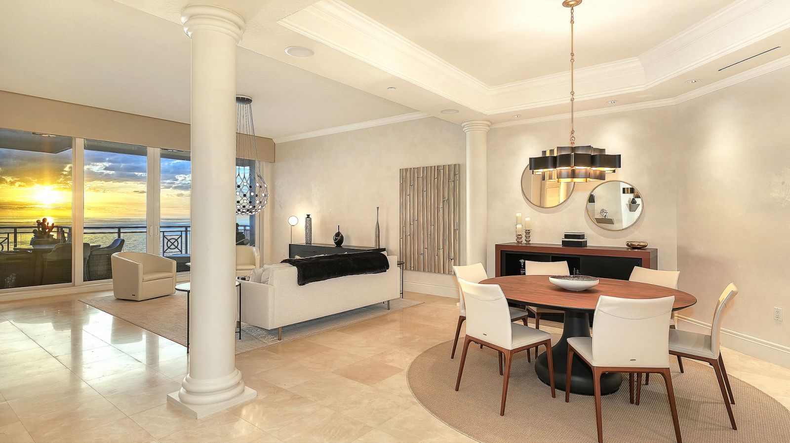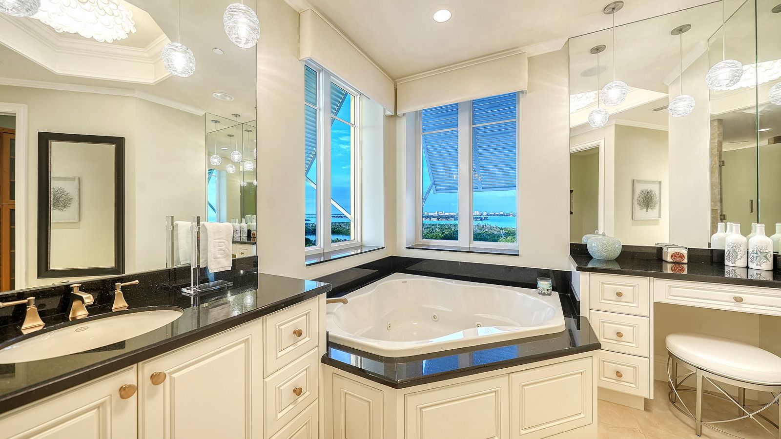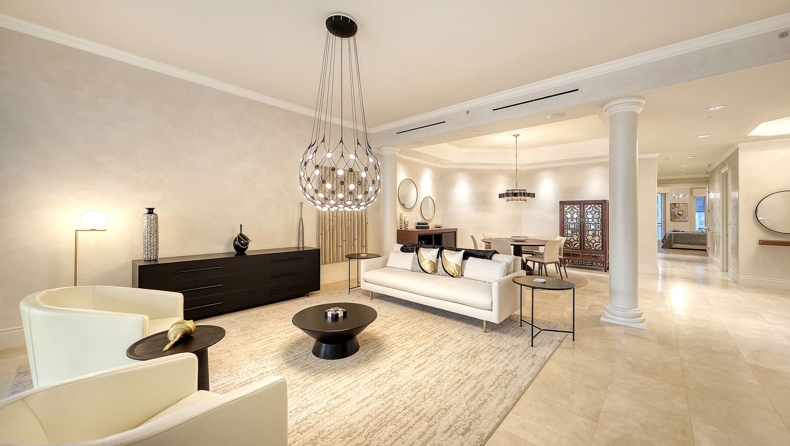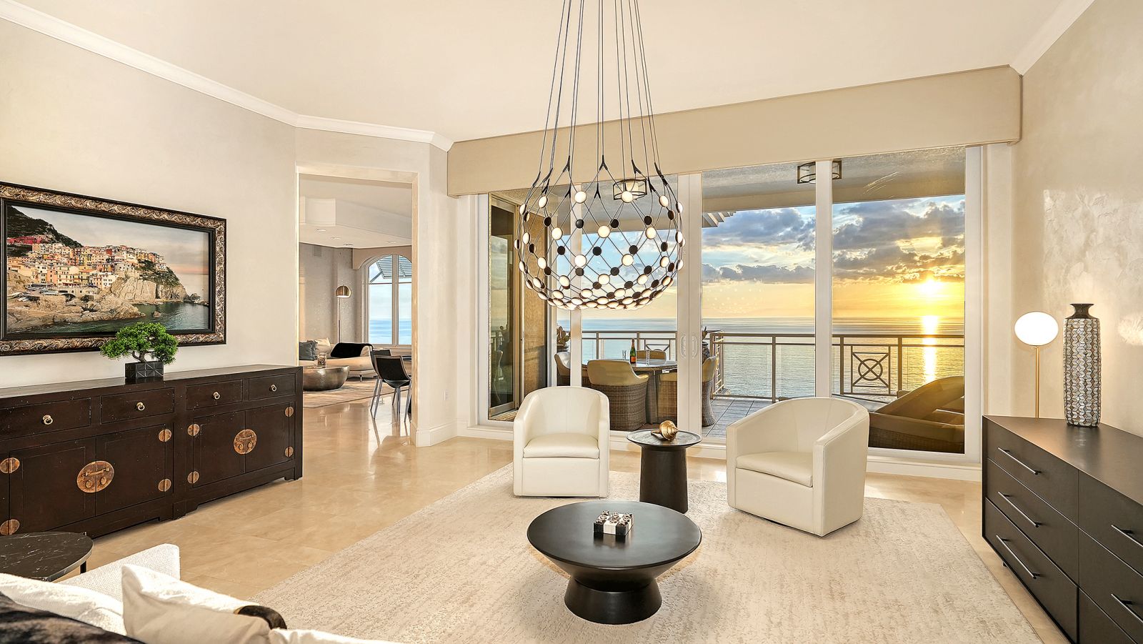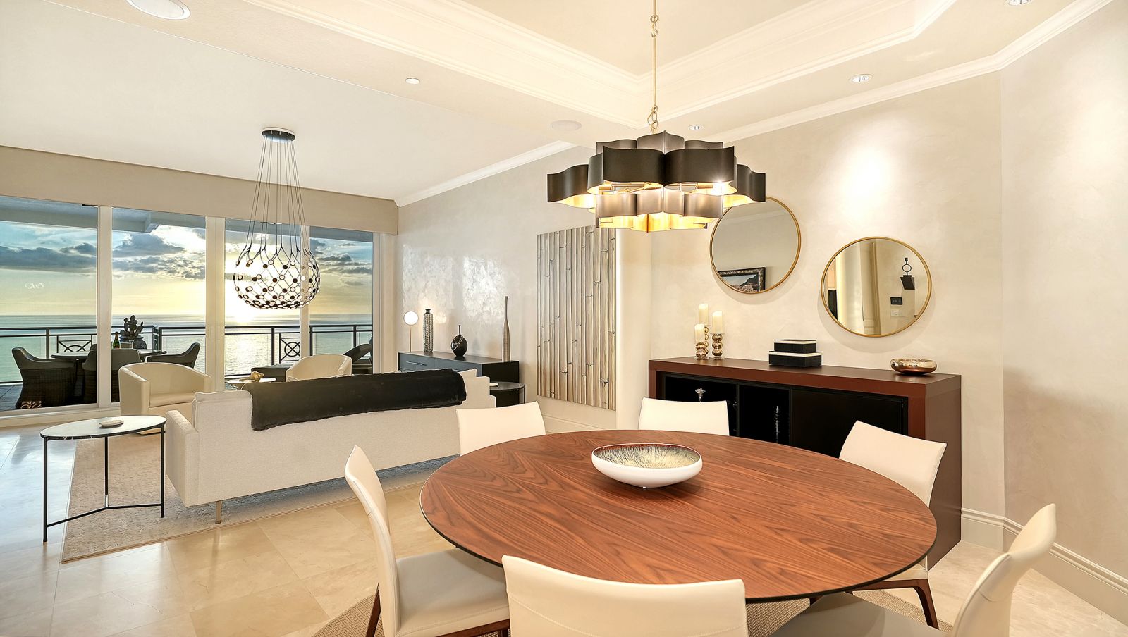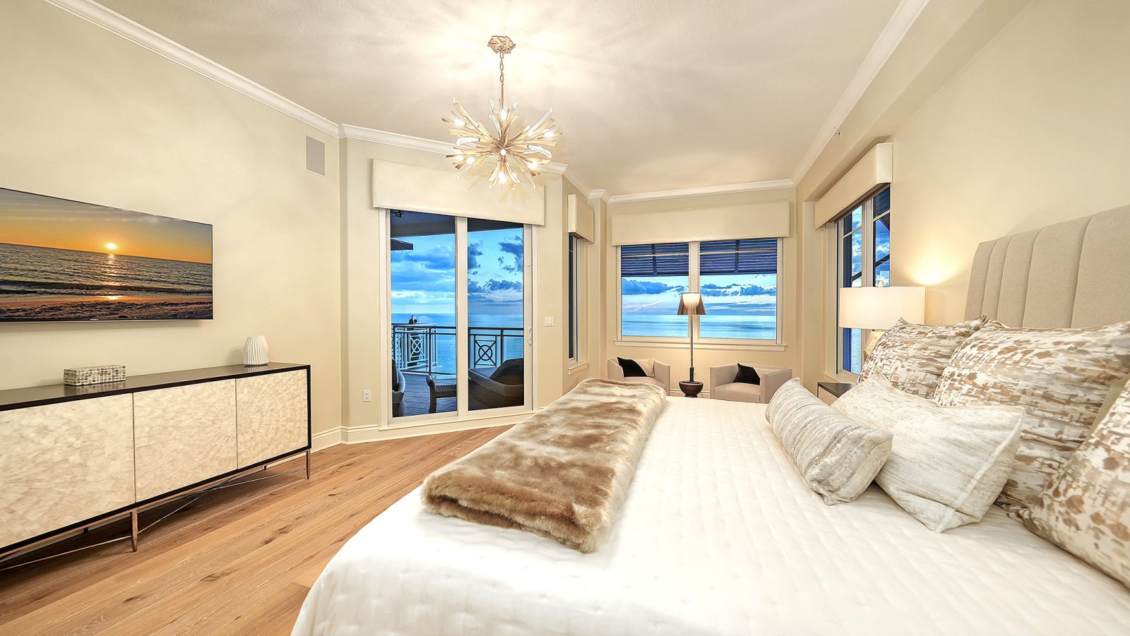 Poised high above the Gulf of Mexico in the coveted & guard-gated Orchid Beach Club, this gulf-to-bay penthouse features breathtaking direct views of azure Gulf waters & expansive Lido beach, dazzling & vibrant sunsets, plus spectacular Bay & Downtown City views. This masterfully renovated 3654 sf condominium embodies refined luxury, bespoke craftsmanship, & is offered turnkey furnished featuring new designer pieces curated by decorator Audrey Arthur. Your private elevator foyer opens to an expansive main living room, where a comprehensive renovation showcases Venetian plaster walls, sculptural Soft Square lighting, and custom floating cabinetry by Metro Cabinet Company, creating an atmosphere of effortless sophistication. Floor-to-ceiling impact-rated sliding glass doors draw the eye to shimmering horizon, ensuring the Gulf remains an ever-present backdrop for gathering and entertaining. The adjacent dining room enjoys equally dramatic views and is anchored by a bespoke floating wine bar, complemented by dining table and chairs imported from Italy. Beyond, the serene family room offers a relaxed coastal setting-quiet, luminous, and framed by sparkling blue water, with custom finishes that evoke warmth and refinement. The kitchen blends craftsmanship and function with custom Westwood Manufacturing cabinetry, refined stone surfaces, a center island, and a suite of chef-caliber appliances including a custom paneled Sub-Zero refrigerator and Faber/Dacor cooking ensemble including double ovens & 5-burner gas cooktop. The Gulf-facing terrace offers an extraordinary expanse of outdoor living space with a granite-clad grill station and stainless hood, ideal for coastal dining and sunset gatherings. The spacious primary suite is a private retreat with sitting area and direct access to the gulf-front terrace, offering an intimate front-row seat to sunset, and the rhythm of the waves. Two custom walk-in closets and a spa-inspired marble bath with a dual-entry glass shower and deep jetted soaking tub complete this serene escape. Two guest suites welcome visitors with bespoke walk-in closets, luxuriously finished baths, and access to a 2nd sweeping terrace capturing enchanting sunrises and views of Sarasota Bay & the sparkling city skyline. Each bedroom is finished with warm wide-plank Legno Bastone floors. Thoughtful updates throughout include Control4 smart home automation w/ LED lighting & electric window treatments, frame art TV, custom window cornices, designer wallpaper, wide-plank wood floors, a reimagined laundry room, and 2025 ACs. A rare private 3-car garage completes this remarkable offering. Life at Orchid Beach Club is defined by indulgent amenities, attentive service, and private beachfront living. Residents enjoy concierge services, on-site management, modern fitness center, massage room, library, game room, beautifully designed club spaces with fireside lounge, terrace, catering kitchen, heated Gulf-front pool & spa, & summer kitchen. Additional pluses include 24-hr guard-gated security, electric vehicle charging stations, bicycle & kayak storage, & 2 well-appointed West Indies-style guest suites. Lido Key offers miles of soft white sand, turquoise water, & lush parkland while nearby St. Armands Circle & downtown Sarasota offer exceptional dining, boutiques, & cultural experiences. Make this exceptional sanctuary yours, an unparalleled lifestyle for the discerning buyer seeking the pinnacle of Gulf-front living.