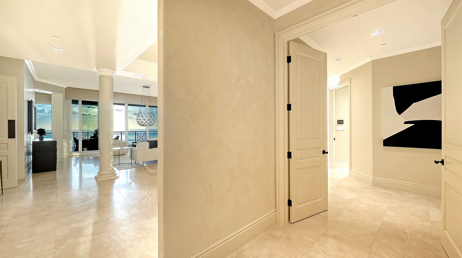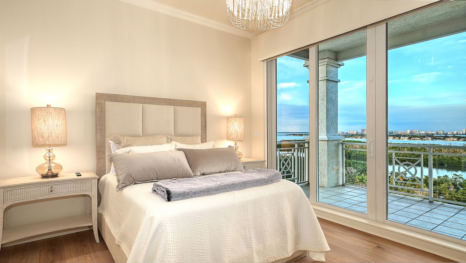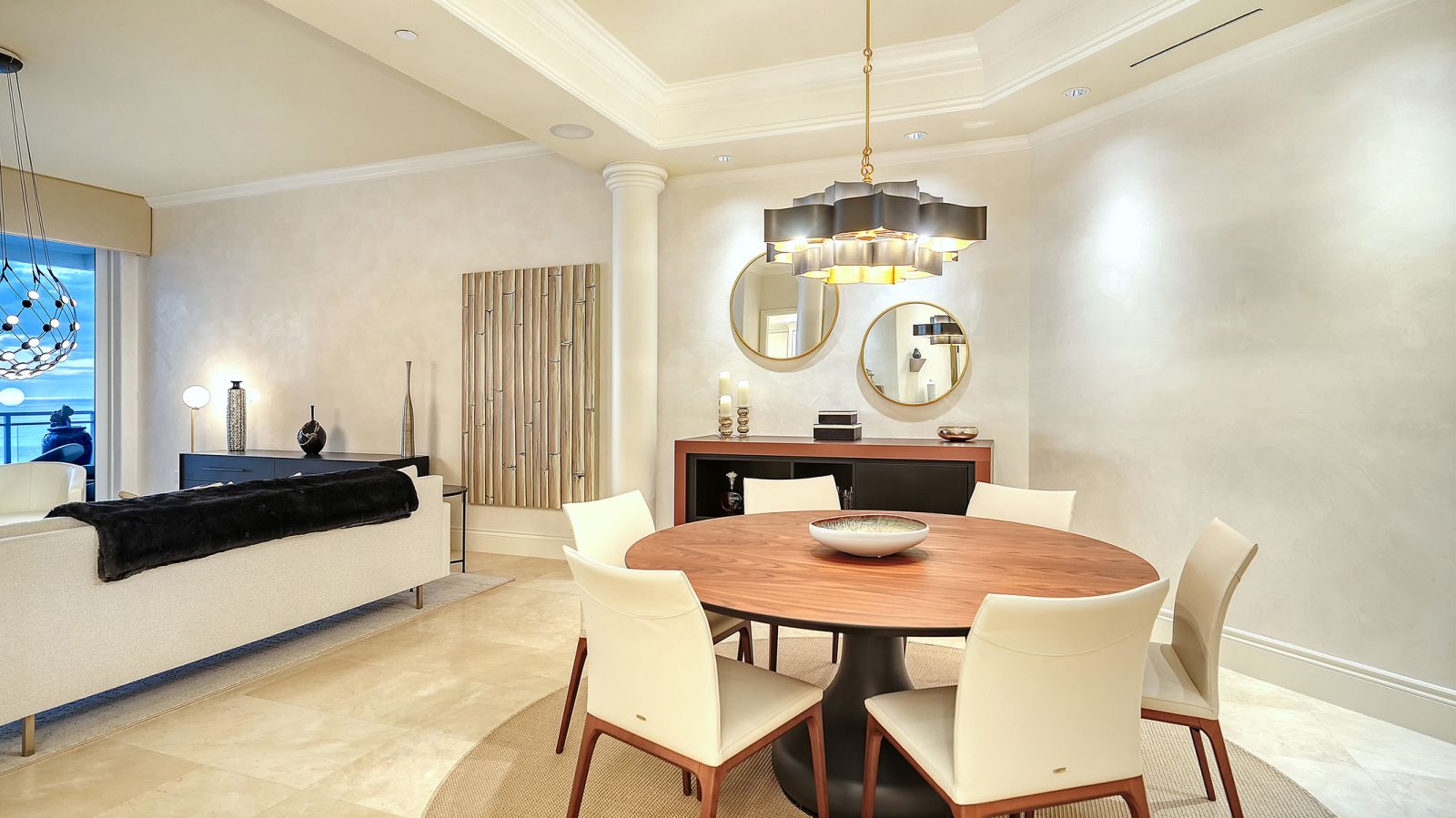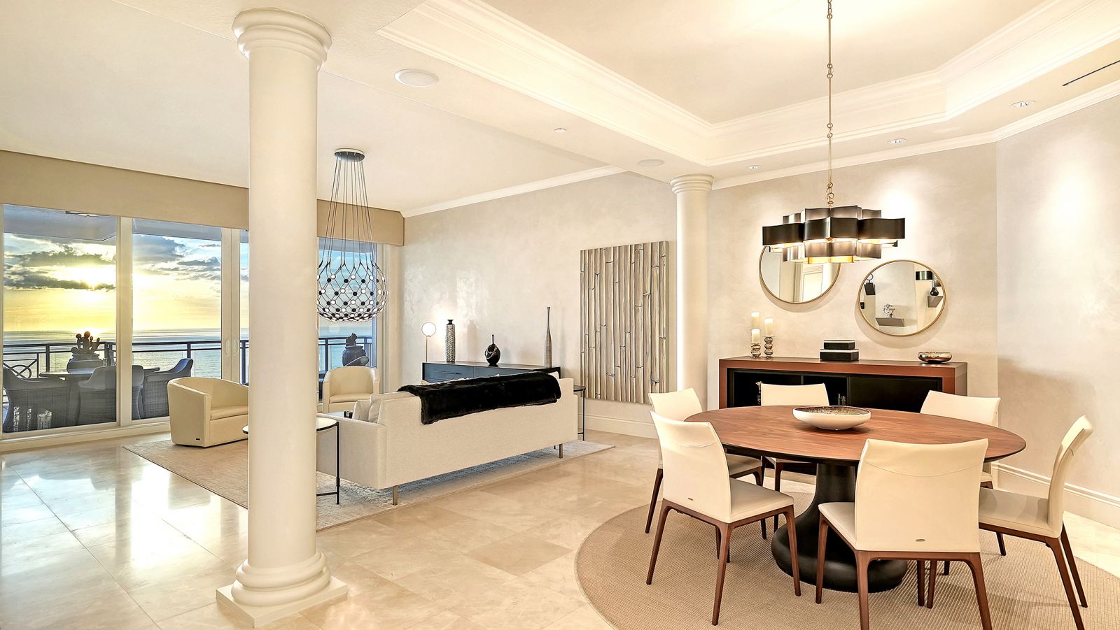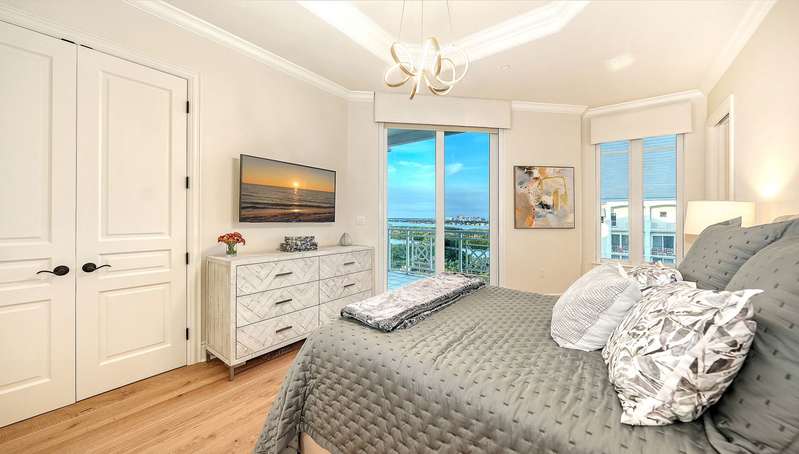 Poised high above the Gulf of Mexico in the coveted & guard-gated Orchid Beach Club, this gulf-to-bay penthouse features breathtaking direct views of azure Gulf waters & expansive Lido beach, dazzling & vibrant sunsets, plus spectacular Bay & Downtown City views. This masterfully renovated 3654 sf condominium embodies refined luxury, bespoke craftsmanship, & is offered turnkey furnished featuring new designer pieces curated by decorator Audrey Arthur. Your private elevator foyer opens to an expansive main living room, where a comprehensive renovation showcases Venetian plaster walls, sculptural Soft Square lighting, and custom floating cabinetry by Metro Cabinet Company, creating an atmosphere of effortless sophistication. Floor-to-ceiling impact-rated sliding glass doors draw the eye to shimmering horizon, ensuring the Gulf remains an ever-present backdrop for gathering and entertaining. The adjacent dining room enjoys equally dramatic views and is anchored by a bespoke floating wine bar, complemented by dining table and chairs imported from Italy. Beyond, the serene family room offers a relaxed coastal setting-quiet, luminous, and framed by sparkling blue water, with custom finishes that evoke warmth and refinement. The kitchen blends craftsmanship and function with custom Westwood Manufacturing cabinetry, refined stone surfaces, a center island, and a suite of chef-caliber appliances including a custom paneled Sub-Zero refrigerator and Faber/Dacor cooking ensemble including double ovens & 5-burner gas cooktop. The Gulf-facing terrace offers an extraordinary expanse of outdoor living space with a granite-clad grill station and stainless hood, ideal for coastal dining and sunset gatherings. The spacious primary suite is a private retreat with sitting area and direct access to the gulf-front terrace, offering an intimate front-row seat to sunset, and the rhythm of the waves. Two custom walk-in closets and a spa-inspired marble bath with a dual-entry glass shower and deep jetted soaking tub complete this serene escape. Two guest suites welcome visitors with bespoke walk-in closets, luxuriously finished baths, and access to a 2nd sweeping terrace capturing enchanting sunrises and views of Sarasota Bay & the sparkling city skyline. Each bedroom is finished with warm wide-plank Legno Bastone floors. Thoughtful updates throughout include Control4 smart home automation w/ LED lighting & electric window treatments, frame art TV, custom window cornices, designer wallpaper, wide-plank wood floors, a reimagined laundry room, and 2025 ACs. A rare private 3-car garage completes this remarkable offering. Life at Orchid Beach Club is defined by indulgent amenities, attentive service, and private beachfront living. Residents enjoy concierge services, on-site management, modern fitness center, massage room, library, game room, beautifully designed club spaces with fireside lounge, terrace, catering kitchen, heated Gulf-front pool & spa, & summer kitchen. Additional pluses include 24-hr guard-gated security, electric vehicle charging stations, bicycle & kayak storage, & 2 well-appointed West Indies-style guest suites. Lido Key offers miles of soft white sand, turquoise water, & lush parkland while nearby St. Armands Circle & downtown Sarasota offer exceptional dining, boutiques, & cultural experiences. Make this exceptional sanctuary yours, an unparalleled lifestyle for the discerning buyer seeking the pinnacle of Gulf-front living.