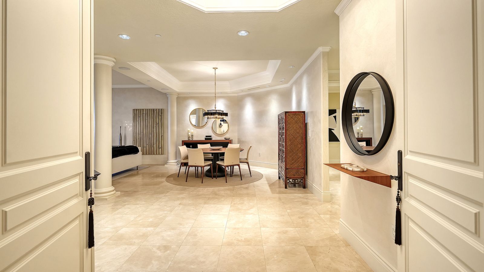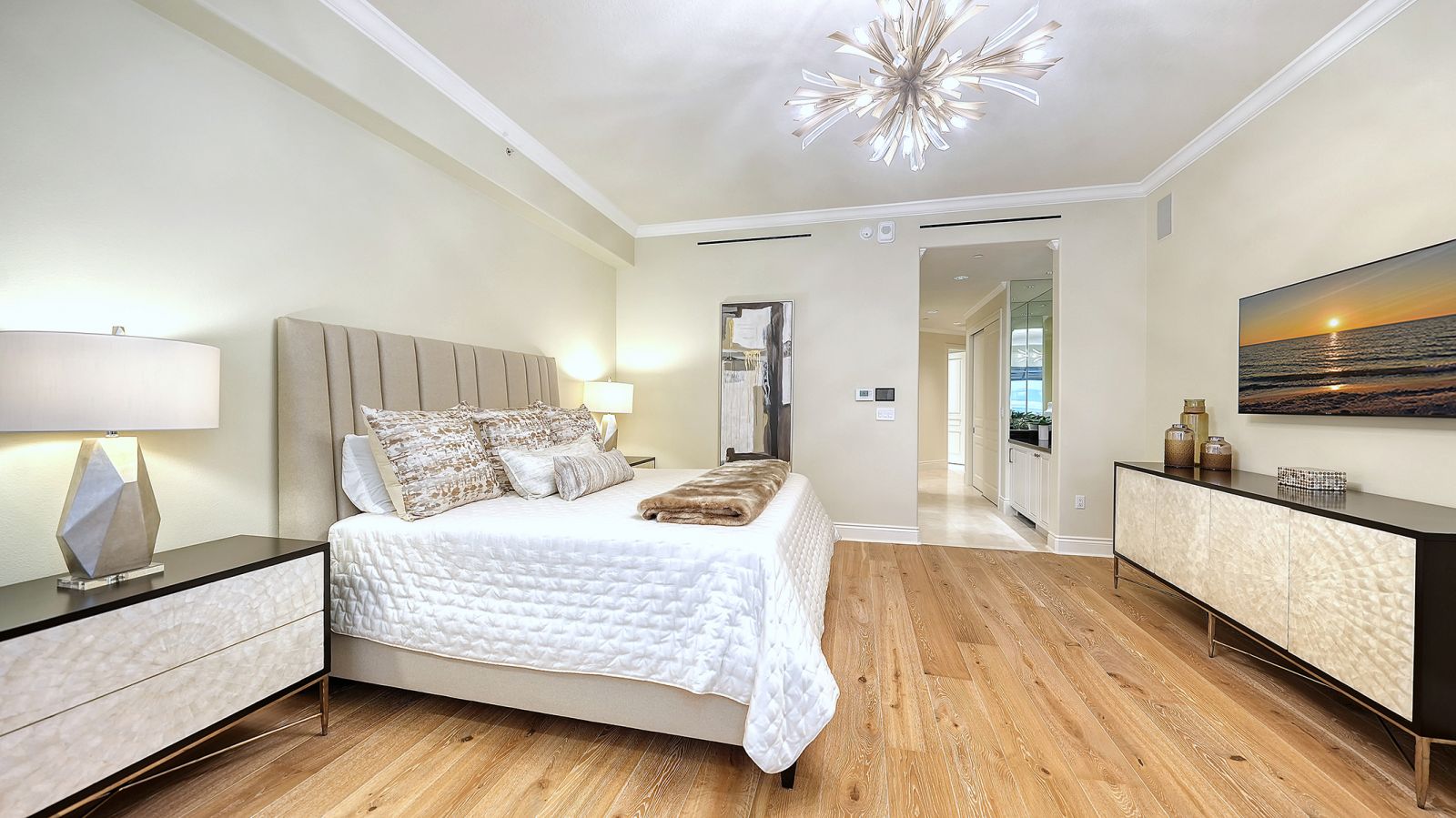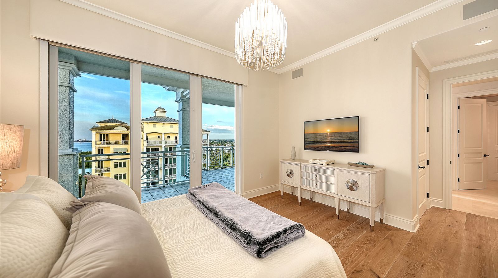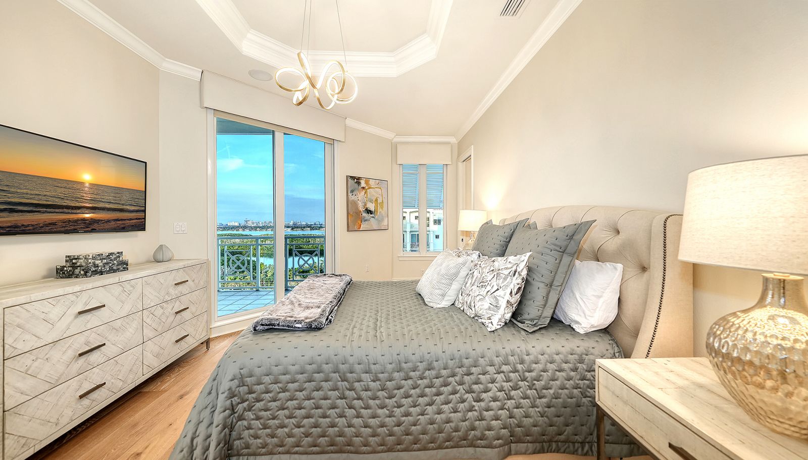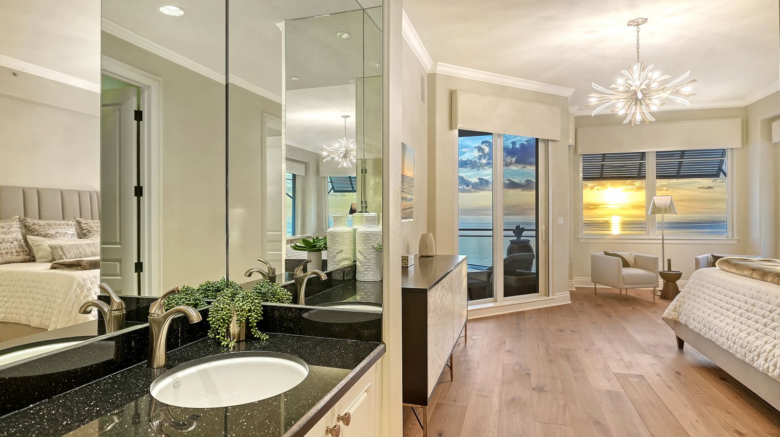 Poised high above the Gulf of Mexico in the coveted & guard-gated Orchid Beach Club, this gulf-to-bay penthouse features breathtaking direct views of azure Gulf waters & expansive Lido beach, dazzling & vibrant sunsets, plus spectacular Bay & Downtown City views. This masterfully renovated 3654 sf condominium embodies refined luxury, bespoke craftsmanship, & is offered turnkey furnished featuring new designer pieces curated by decorator Audrey Arthur. Your private elevator foyer opens to an expansive main living room, where a comprehensive renovation showcases Venetian plaster walls, sculptural Soft Square lighting, and custom floating cabinetry by Metro Cabinet Company, creating an atmosphere of effortless sophistication. Floor-to-ceiling impact-rated sliding glass doors draw the eye to shimmering horizon, ensuring the Gulf remains an ever-present backdrop for gathering and entertaining. The adjacent dining room enjoys equally dramatic views and is anchored by a bespoke floating wine bar, complemented by dining table and chairs imported from Italy. Beyond, the serene family room offers a relaxed coastal setting-quiet, luminous, and framed by sparkling blue water, with custom finishes that evoke warmth and refinement. The kitchen blends craftsmanship and function with custom Westwood Manufacturing cabinetry, refined stone surfaces, a center island, and a suite of chef-caliber appliances including a custom paneled Sub-Zero refrigerator and Faber/Dacor cooking ensemble including double ovens & 5-burner gas cooktop. The Gulf-facing terrace offers an extraordinary expanse of outdoor living space with a granite-clad grill station and stainless hood, ideal for coastal dining and sunset gatherings. The spacious primary suite is a private retreat with sitting area and direct access to the gulf-front terrace, offering an intimate front-row seat to sunset, and the rhythm of the waves. Two custom walk-in closets and a spa-inspired marble bath with a dual-entry glass shower and deep jetted soaking tub complete this serene escape. Two guest suites welcome visitors with bespoke walk-in closets, luxuriously finished baths, and access to a 2nd sweeping terrace capturing enchanting sunrises and views of Sarasota Bay & the sparkling city skyline. Each bedroom is finished with warm wide-plank Legno Bastone floors. Thoughtful updates throughout include Control4 smart home automation w/ LED lighting & electric window treatments, frame art TV, custom window cornices, designer wallpaper, wide-plank wood floors, a reimagined laundry room, and 2025 ACs. A rare private 3-car garage completes this remarkable offering. Life at Orchid Beach Club is defined by indulgent amenities, attentive service, and private beachfront living. Residents enjoy concierge services, on-site management, modern fitness center, massage room, library, game room, beautifully designed club spaces with fireside lounge, terrace, catering kitchen, heated Gulf-front pool & spa, & summer kitchen. Additional pluses include 24-hr guard-gated security, electric vehicle charging stations, bicycle & kayak storage, & 2 well-appointed West Indies-style guest suites. Lido Key offers miles of soft white sand, turquoise water, & lush parkland while nearby St. Armands Circle & downtown Sarasota offer exceptional dining, boutiques, & cultural experiences. Make this exceptional sanctuary yours, an unparalleled lifestyle for the discerning buyer seeking the pinnacle of Gulf-front living.