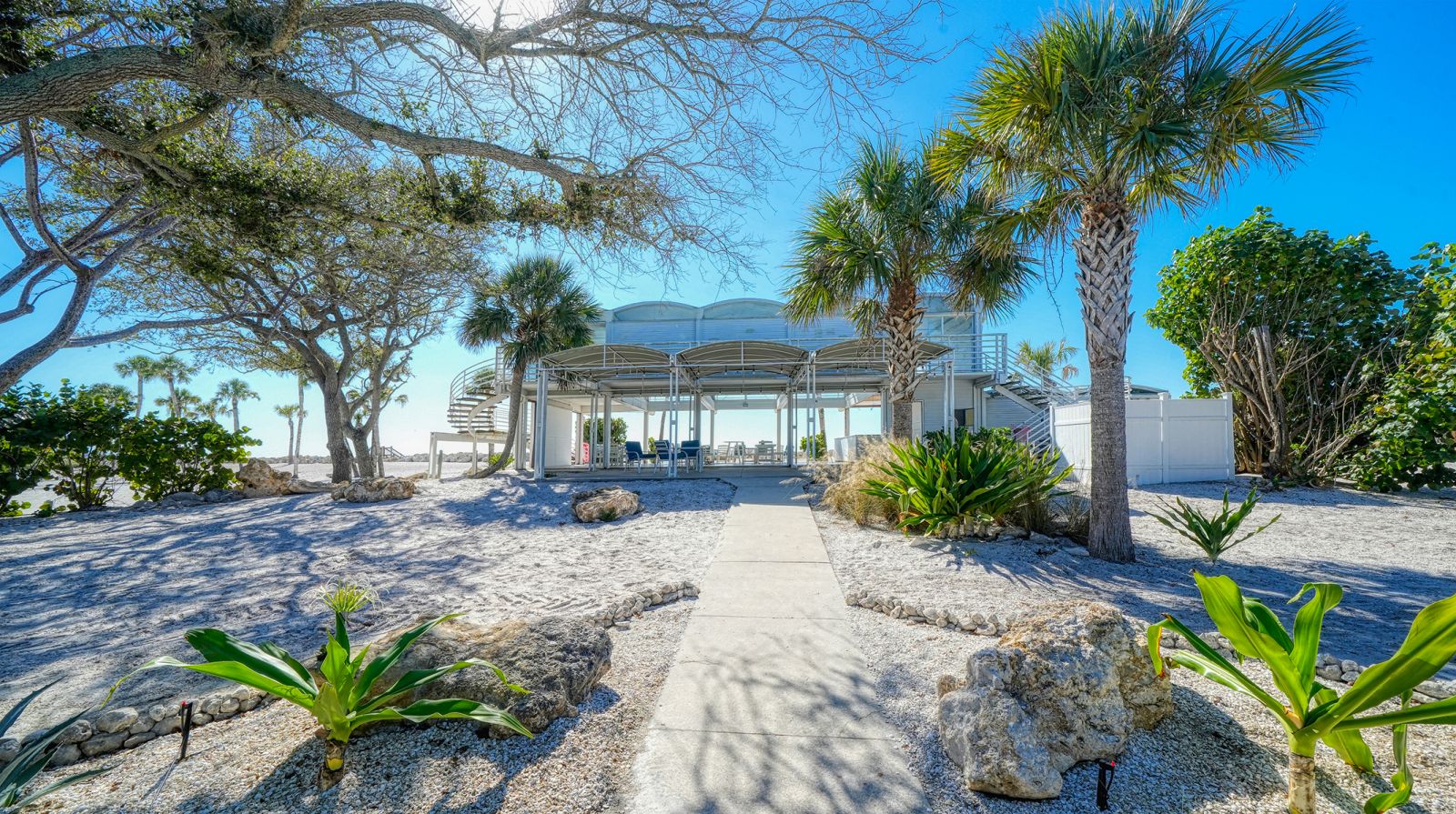 One or more photo(s) has been virtually staged. Set within the gates of the exclusive Sanderling Club on Siesta Key, this exceptional 3-bedroom, 3.5-bath residence presents a rare opportunity to own in one of the island's most private and storied coastal communities. The Sanderling is a member-owned, Gulf-to-Bay enclave situated along both the bay and the Gulf, celebrated for its low-density design, lush tropical landscape, iconic banyan canopy, and unparalleled access to Siesta Key's world-famous quartz sand beach. Residents enjoy boat slips for lease, both a clay and hard court tennis court, and several pickleball courts, enhancing the community's coastal lifestyle. Adding to its uniqueness, the owners of this home also hold one-ninth ownership of the preserve lot next door, ensuring lasting privacy and the feeling of a protected natural buffer beside the property. Beautifully positioned among mature tropical landscaping, this totally renovated home blends timeless charm with meaningful, high-quality upgrades. All windows and doors are impact-rated, offering security, energy efficiency, and a peaceful interior environment. A brand-new roof was installed in 2025, and the home is insulated throughout with isonene foam insulation, creating exceptional climate control, quieter living, and long-term efficiency. Inside, the home is warm, inviting, and designed for relaxed coastal living. The main living spaces feature abundant natural light and tranquil garden views, enhanced by large windows and sliders that connect seamlessly to the surrounding greenery. A rare feature for Siesta Key, the living room includes a fully functioning wood-burning fireplace, creating a cozy focal point for cool winter evenings and adding unique character to the home. The open living and dining areas offer flexible space for entertaining or everyday comfort, while the kitchen provides ample cabinetry, generous workspace, and excellent flow to the surrounding rooms. In addition to the three bedrooms, the home includes a comfortable office ideal for remote work or quiet reading, as well as a large walk-in pantry offering exceptional storage and organization--valuable features that enhance everyday livability. The primary suite is privately situated and offers peaceful views, generous closet space, and an en-suite bath designed for comfort and functionality. Two additional guest suites, each with their own private bathrooms, provide excellent accommodations for family and visitors, while the convenient half bath enhances the main living areas. The layout flows naturally, offering privacy where needed and open gathering spaces where desired. Outdoor living is one of the home's greatest attributes. Surrounded by mature landscaping and the Sanderling's natural canopy, the outdoor areas feel serene and secluded. A beautifully installed turf lawn on the side of the home creates a low-maintenance, usable space ideal for pets, play, or additional lounging. A dedicated fire pit area adds to the ambiance, offering the perfect place to gather in the evenings and enjoy the soft Gulf breezes. As a resident of the Sanderling Club, you'll enjoy access to a members-only beachfront, guard-gated security, clubhouse facilities, tennis and pickleball courts, and boat access--amenities that reflect the community's architectural heritage, natural beauty, and commitment to privacy. The atmosphere here is timeless serenity, unmatched on the Gulf.