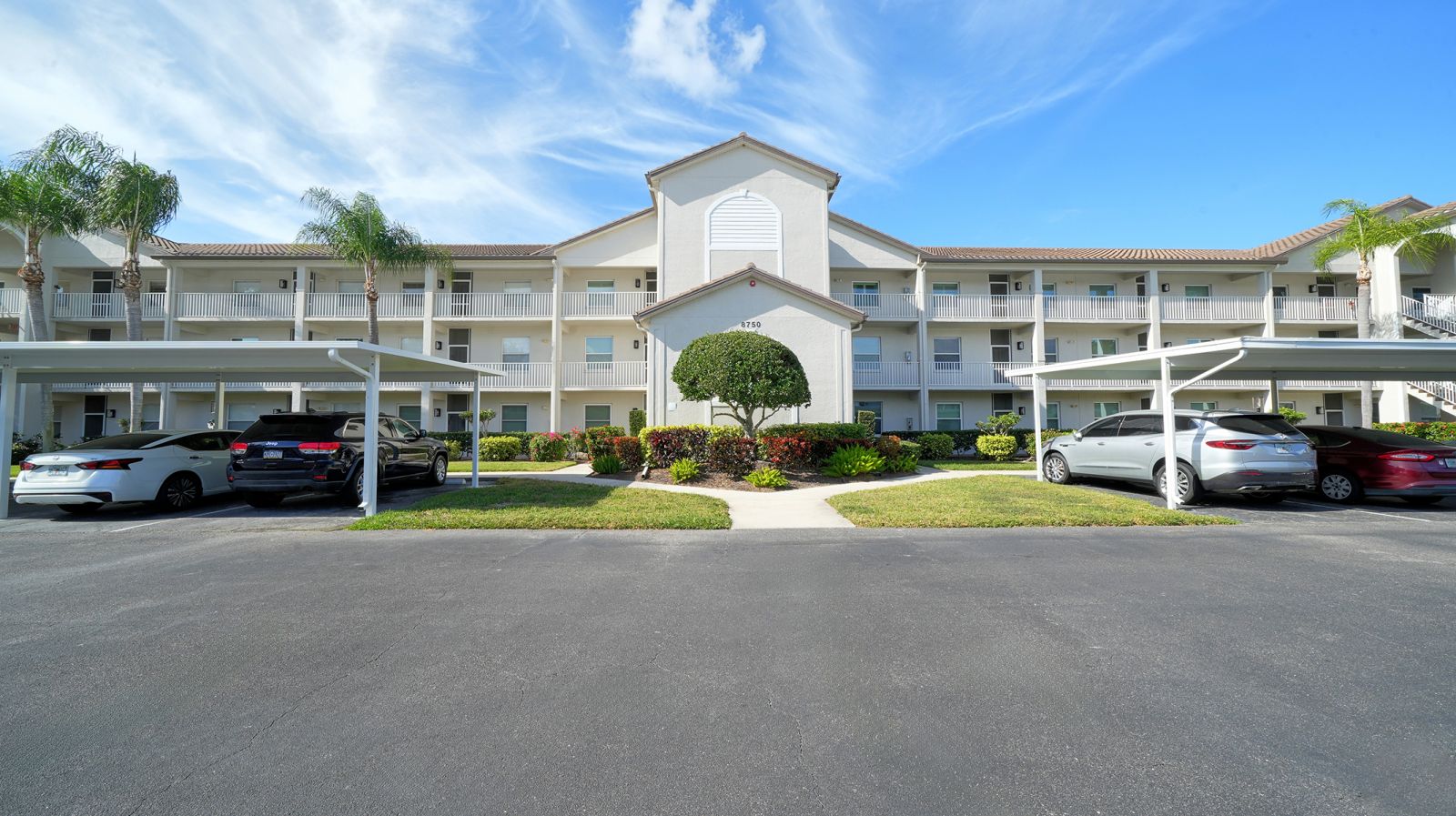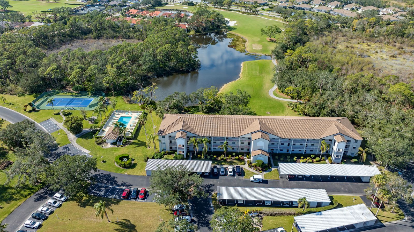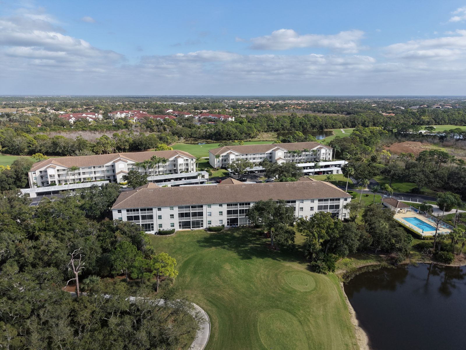 Under contract-accepting backup offers. Turnkey Furnished Terraces condo with amazing views of the 9th hole lake and fairway! Great Florida Sunsets every night. Luxury vinyl flooring throughout the living spaces, updated Kitchen with quartz counters. Crown Molding in the living room. Primary has its own slider out to the lanai, walk-in closet and an modern shower to boot! Guest quarters in the front of the home, bedrooms have carpet. The Terraces have recently updated roof, elevators and paint. Great community pool, pickleball/tennis court and outdoor grills and gathering areas to enjoy this lovely condo group. Storage closet under the carports for each owner as well. A premier member-owned country club, Stoneybrook of Sarasota, is only a short distance from Siesta Key and offers easy access to shopping and borders the Legacy Trail. Ownership in Stoneybrook Golf and Country Club includes an updated clubhouse and restaurant, Har-Tru tennis facility, well-equipped fitness center and additional club pool and spa. Nestled between Downtown Sarasota and Downtown Venice. In 2024, the Golf Course went through a complete redesign and seller has paid the 2024 assessment in full.