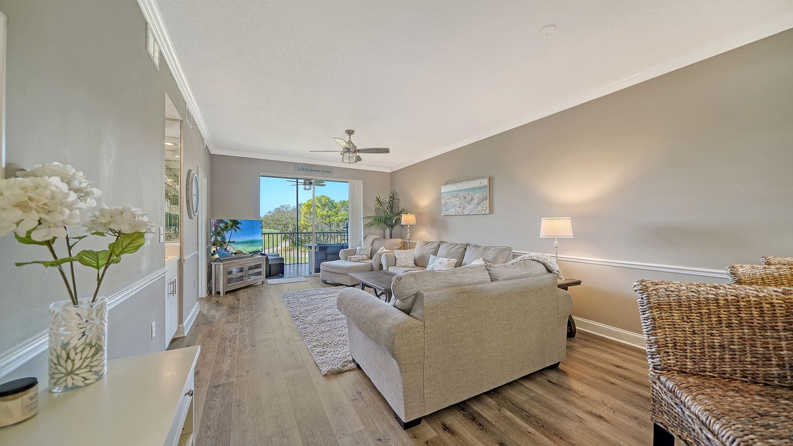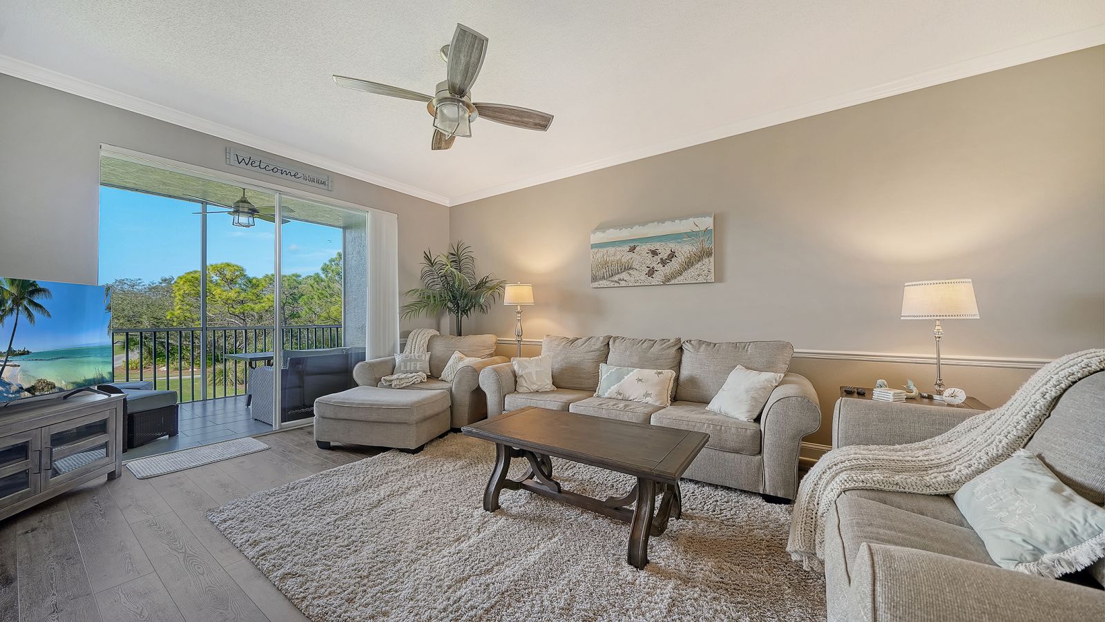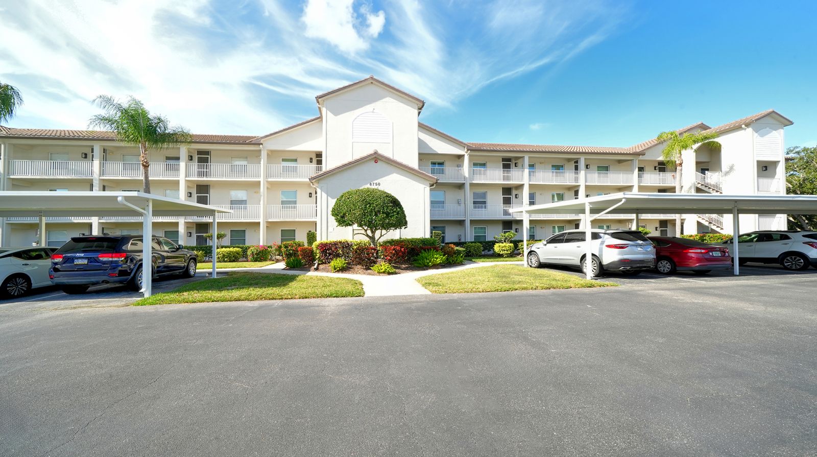 Under contract-accepting backup offers. Turnkey Furnished Terraces condo with amazing views of the 9th hole lake and fairway! Great Florida Sunsets every night. Luxury vinyl flooring throughout the living spaces, updated Kitchen with quartz counters. Crown Molding in the living room. Primary has its own slider out to the lanai, walk-in closet and an modern shower to boot! Guest quarters in the front of the home, bedrooms have carpet. The Terraces have recently updated roof, elevators and paint. Great community pool, pickleball/tennis court and outdoor grills and gathering areas to enjoy this lovely condo group. Storage closet under the carports for each owner as well. A premier member-owned country club, Stoneybrook of Sarasota, is only a short distance from Siesta Key and offers easy access to shopping and borders the Legacy Trail. Ownership in Stoneybrook Golf and Country Club includes an updated clubhouse and restaurant, Har-Tru tennis facility, well-equipped fitness center and additional club pool and spa. Nestled between Downtown Sarasota and Downtown Venice. In 2024, the Golf Course went through a complete redesign and seller has paid the 2024 assessment in full.