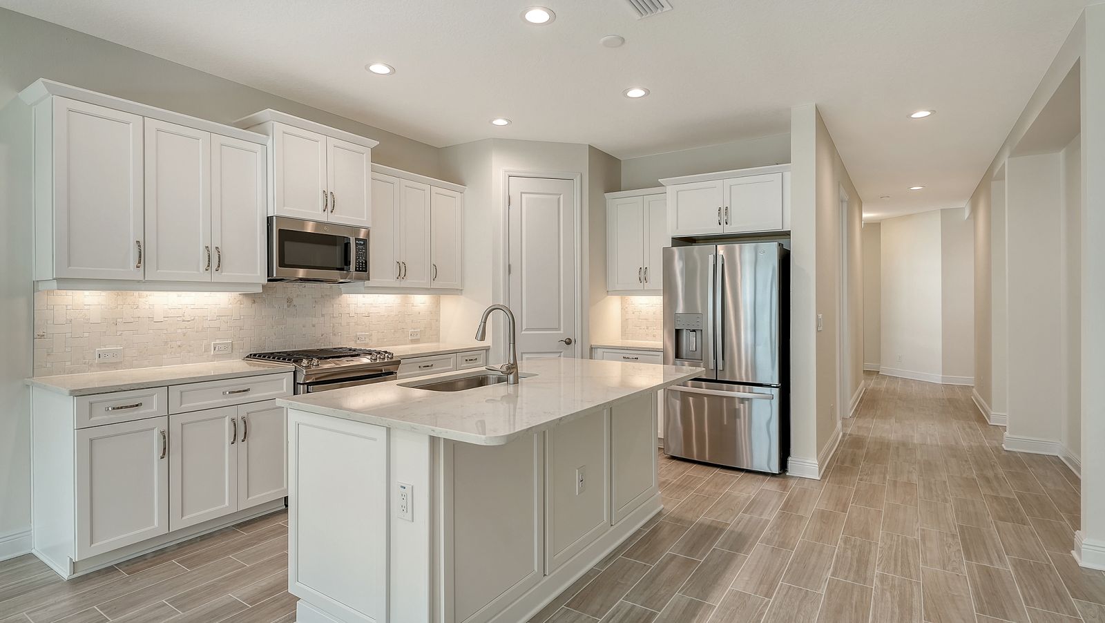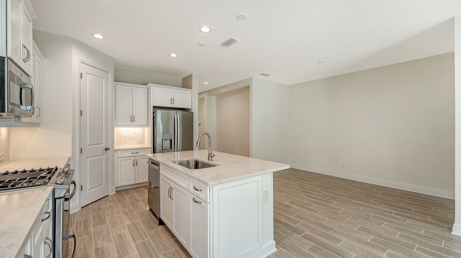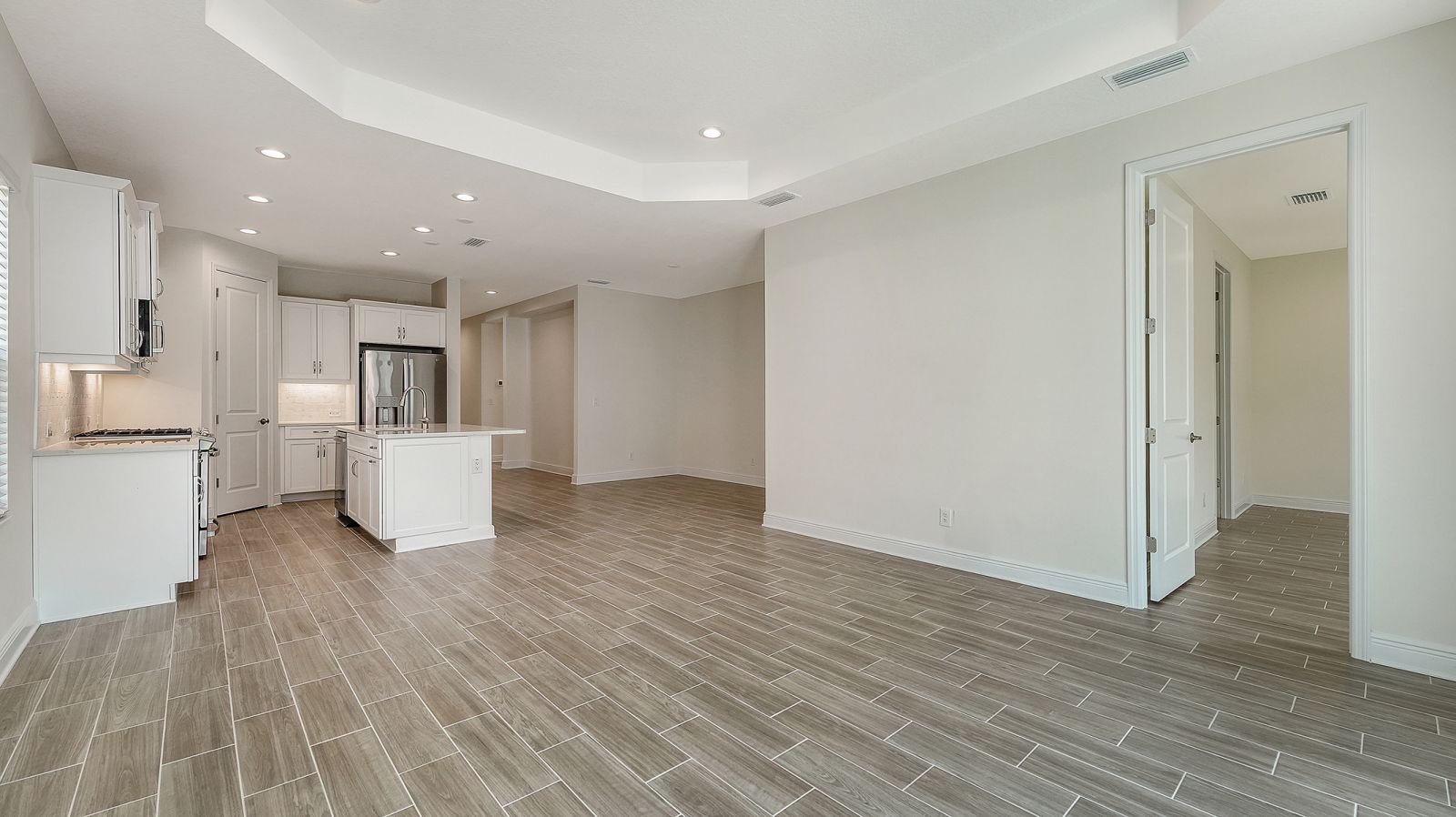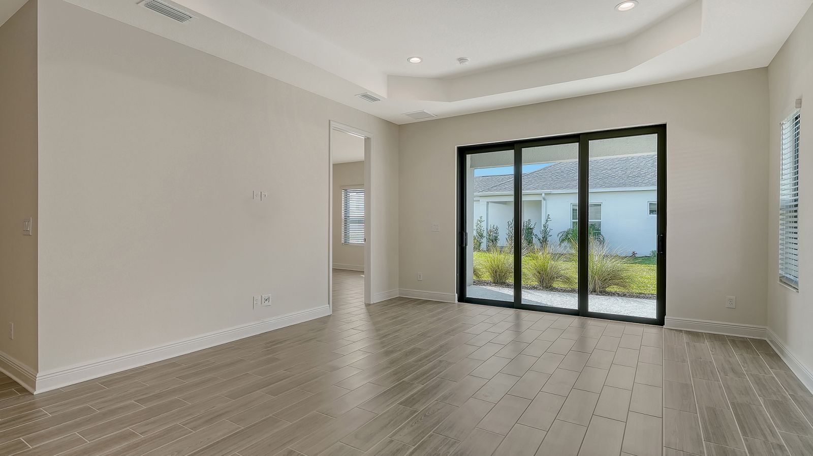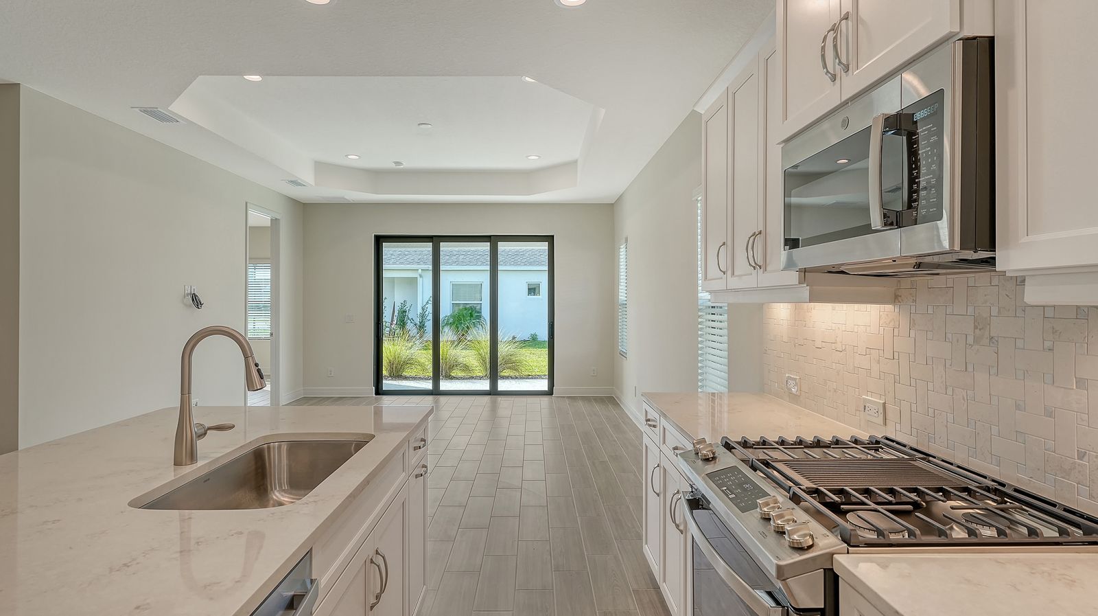 This beautiful and highly sought-after Dream 2 is available for immediate purchase in Canoe Creek, Parrish, Florida, by Neal Communities. Its attractive exterior offers exceptional curb appeal, welcoming you with a charming front porch. Inside, the open-concept layout is designed to impress, featuring upgraded flooring throughout and a beautiful kitchen with solid wood white cabinetry, quartz countertops, and a designer backsplash. The kitchen, dining area, and great room flow seamlessly together, making the home ideal for entertaining. The private primary suite is thoughtfully separated from the guest bedrooms, which are conveniently located near a full guest bath. The Dream 2 Floor plan is a Neal Communities Favorite!Schedule your tour today--this home won't last long!