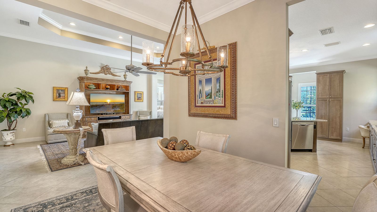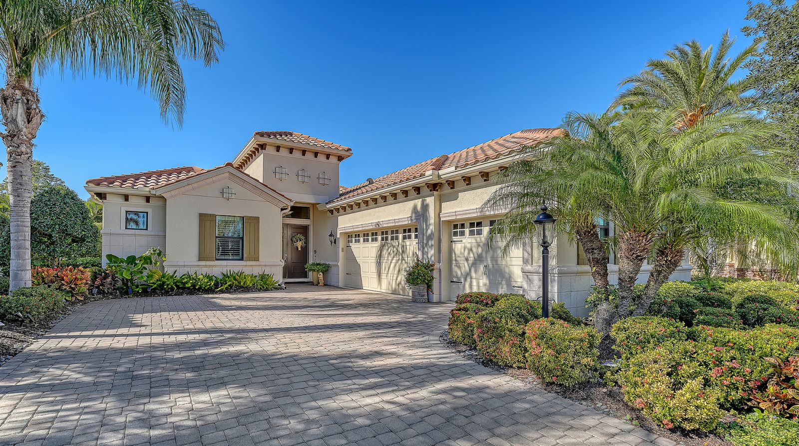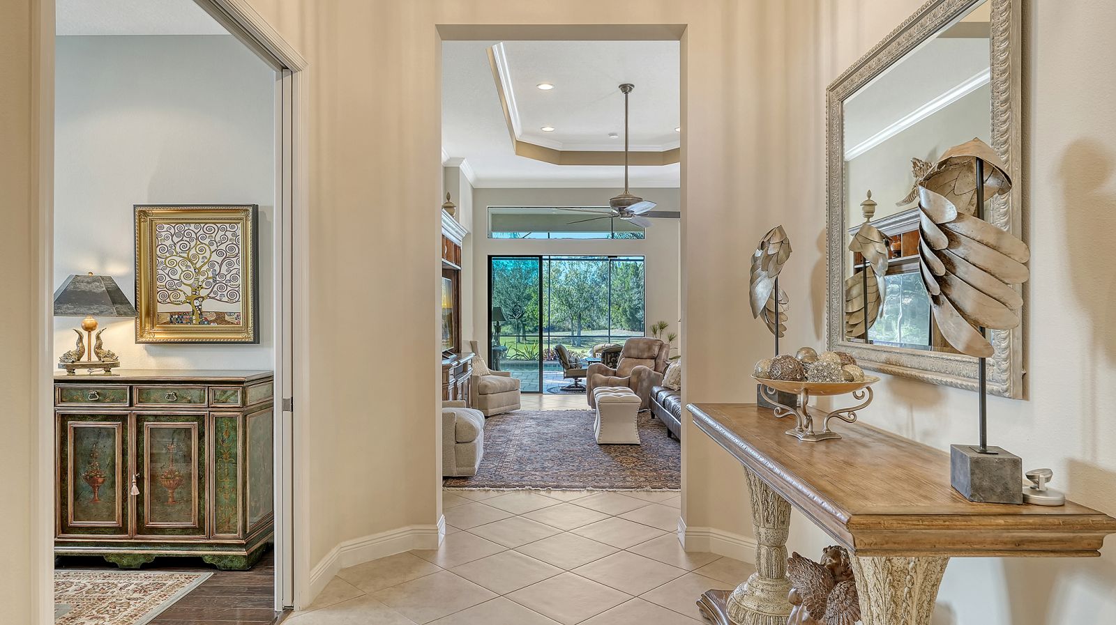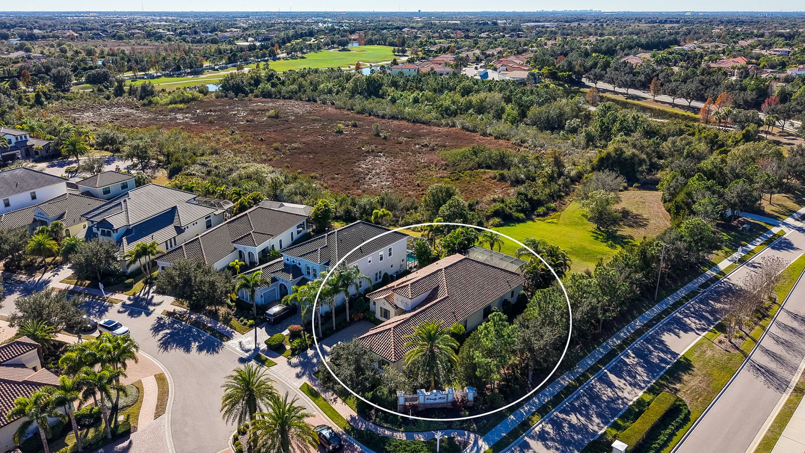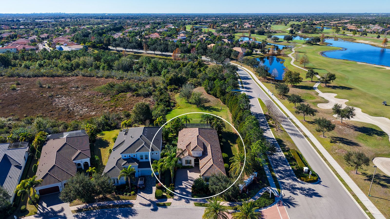 Privately positioned on an oversized homesite within the gated enclave of Country Club East, this beautifully appointed three-bedroom, 3.5-bath residence with a private office enjoys tranquil preserve views that create a serene, park-like backdrop for everyday living. The setting offers a rare sense of space and privacy while embracing the best of Florida's indoor-outdoor lifestyle.A welcoming entry through double front doors introduces a light-filled interior where a private office with double doors sits just off the foyer. The open great room is designed for both comfort and entertaining, highlighted by soaring ceilings, tray accents, and a sleek wet bar with stone countertop. Large sliding glass doors frame peaceful preserve views and lead seamlessly to the lanai beyond.The chef's kitchen is thoughtfully designed with rich wood cabinetry, stone countertops, stainless steel appliances, upgraded lighting, and a generous island with breakfast bar. A built-in desk tucked beside a picture window provides a charming workspace with views of the surrounding greenery, while the formal dining area with crown molding and designer lighting sets the stage for memorable gatherings.The primary suite is a true retreat, featuring luxury vinyl plank flooring, plantation shutters, a tray ceiling, and two walk-in closets. The spa-inspired bath offers split vanities, a beautifully tiled walk-in shower, and a private water closet. Two additional guest suites, each with its own bath, are positioned at the front of the home to ensure privacy for family and guests.Outdoor living takes center stage on the expansive lanai with a heated pool and spa, dedicated pool bath, and breathtaking sunset views over the preserve--ideal for relaxing or entertaining. Notable upgrades include a side-entry three -car garage, enhanced landscaping, a Culligan whole-house water system, sealed attic for energy efficiency, and more.Residents of Country Club East enjoy gated security, scenic walking trails, a fitness center, and multiple community pools, along with exclusive access to The Retreat and The Residents Club offering resort-style amenities, dining, and social spaces. Optional membership to Lakewood Ranch Golf & Country Club provides access to championship golf, tennis, pickleball, state-of-the-art fitness facilities, and multiple clubhouses.