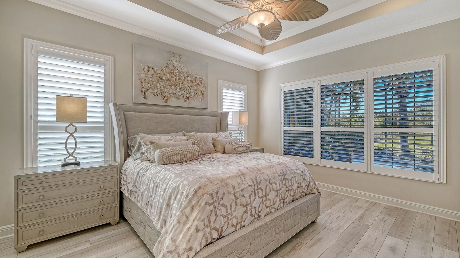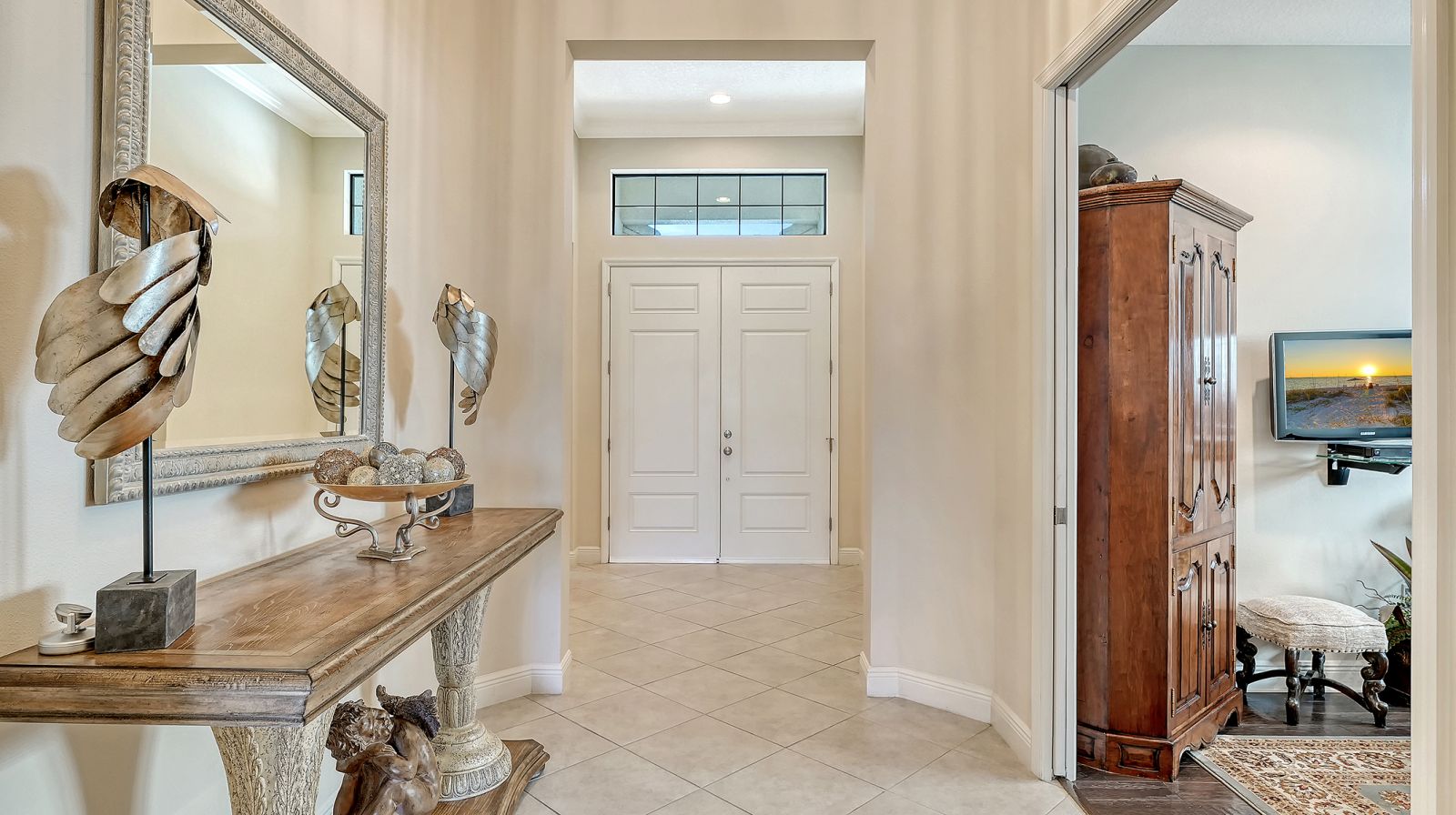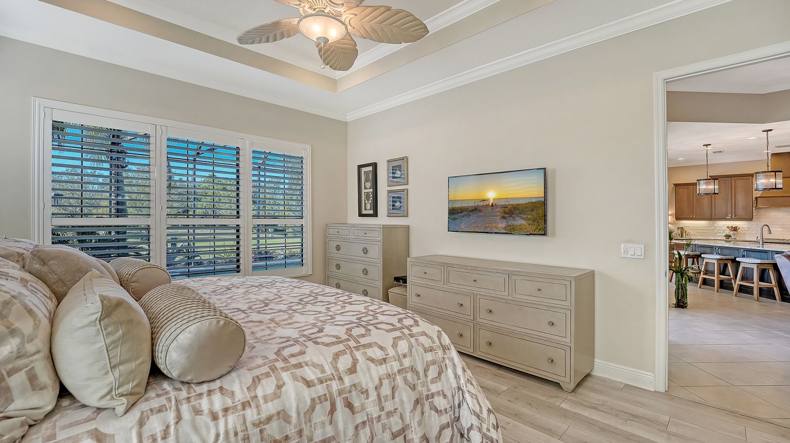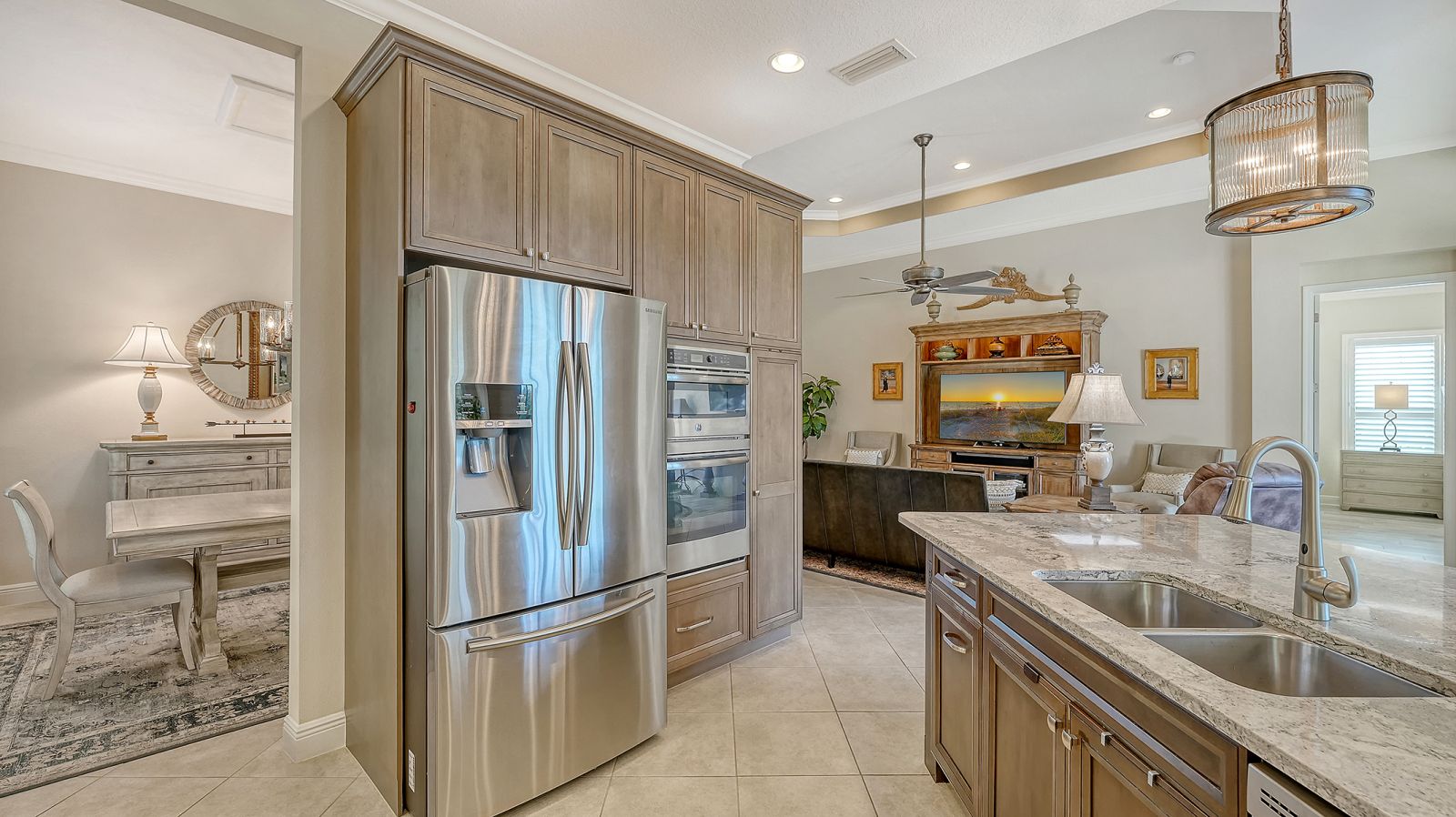 Privately positioned on an oversized homesite within the gated enclave of Country Club East, this beautifully appointed three-bedroom, 3.5-bath residence with a private office enjoys tranquil preserve views that create a serene, park-like backdrop for everyday living. The setting offers a rare sense of space and privacy while embracing the best of Florida's indoor-outdoor lifestyle.A welcoming entry through double front doors introduces a light-filled interior where a private office with double doors sits just off the foyer. The open great room is designed for both comfort and entertaining, highlighted by soaring ceilings, tray accents, and a sleek wet bar with stone countertop. Large sliding glass doors frame peaceful preserve views and lead seamlessly to the lanai beyond.The chef's kitchen is thoughtfully designed with rich wood cabinetry, stone countertops, stainless steel appliances, upgraded lighting, and a generous island with breakfast bar. A built-in desk tucked beside a picture window provides a charming workspace with views of the surrounding greenery, while the formal dining area with crown molding and designer lighting sets the stage for memorable gatherings.The primary suite is a true retreat, featuring luxury vinyl plank flooring, plantation shutters, a tray ceiling, and two walk-in closets. The spa-inspired bath offers split vanities, a beautifully tiled walk-in shower, and a private water closet. Two additional guest suites, each with its own bath, are positioned at the front of the home to ensure privacy for family and guests.Outdoor living takes center stage on the expansive lanai with a heated pool and spa, dedicated pool bath, and breathtaking sunset views over the preserve--ideal for relaxing or entertaining. Notable upgrades include a side-entry three -car garage, enhanced landscaping, a Culligan whole-house water system, sealed attic for energy efficiency, and more.Residents of Country Club East enjoy gated security, scenic walking trails, a fitness center, and multiple community pools, along with exclusive access to The Retreat and The Residents Club offering resort-style amenities, dining, and social spaces. Optional membership to Lakewood Ranch Golf & Country Club provides access to championship golf, tennis, pickleball, state-of-the-art fitness facilities, and multiple clubhouses.