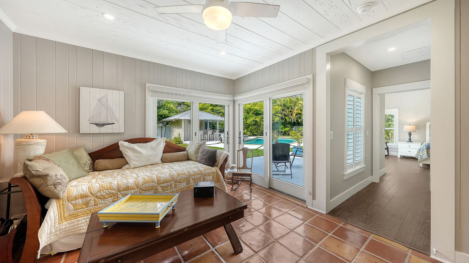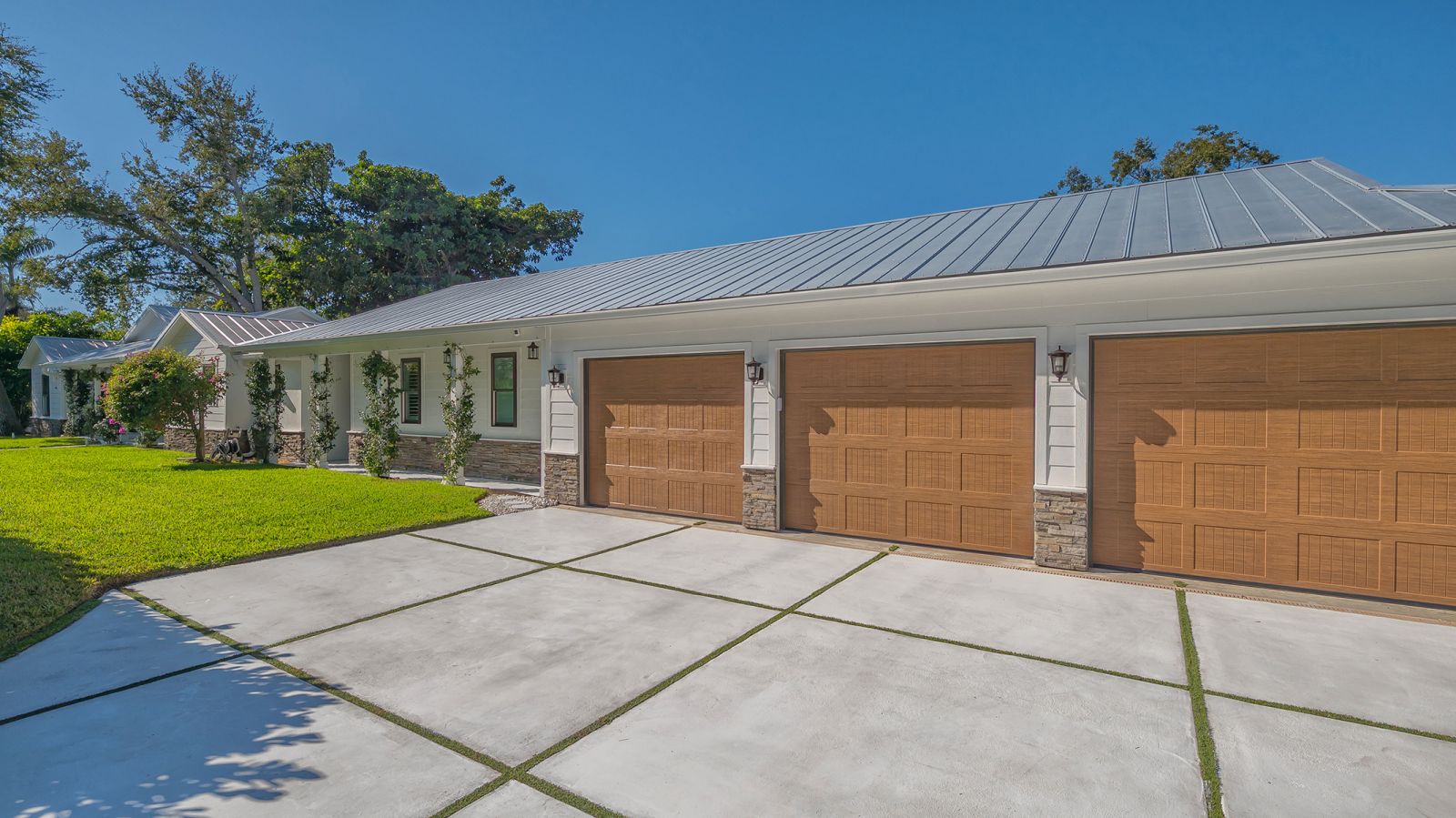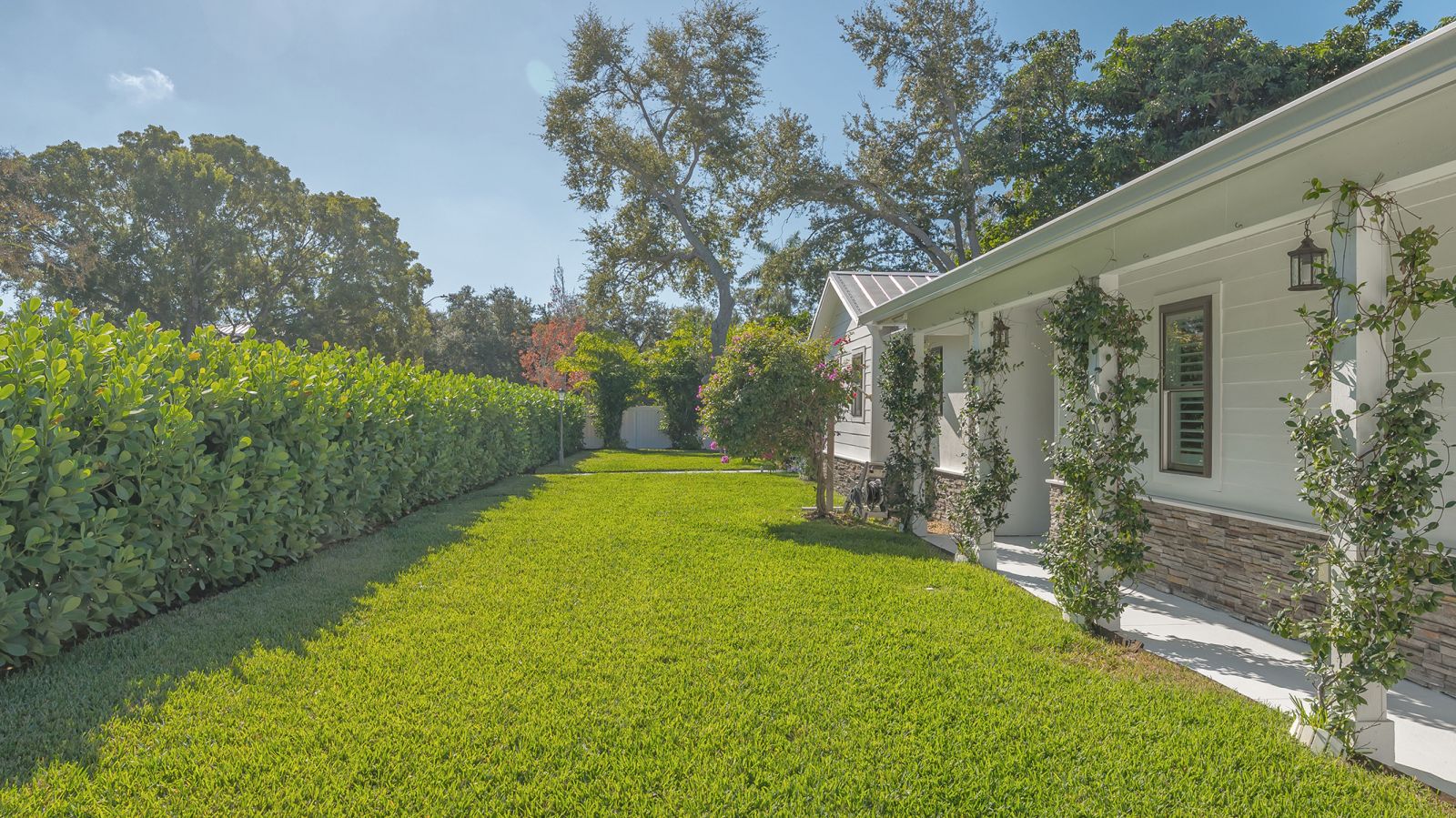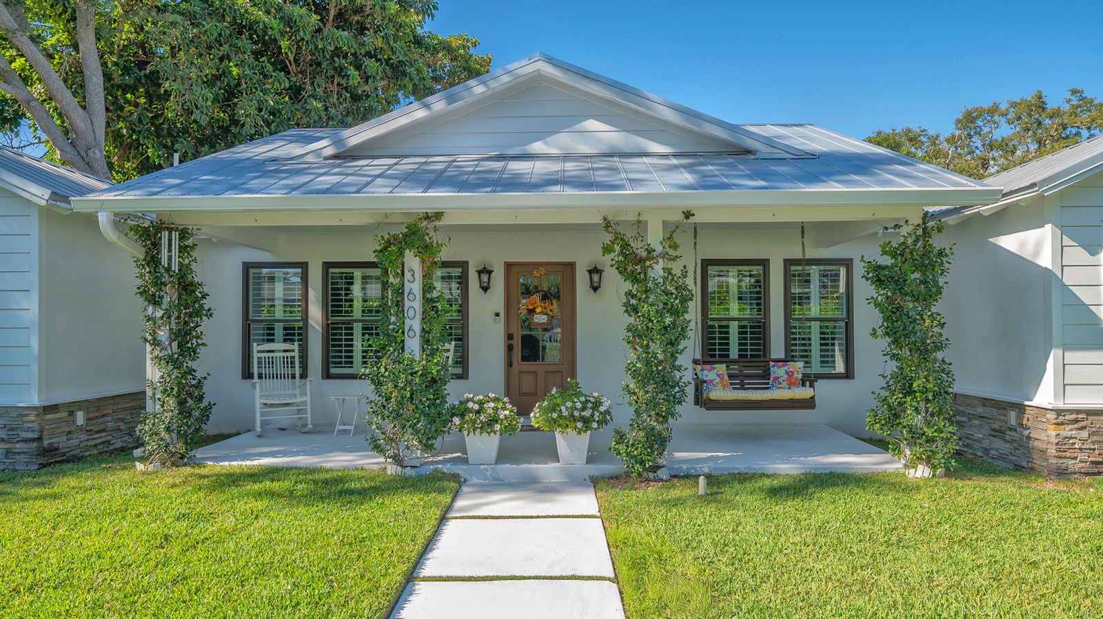 A rare and extraordinary offering, this is the home everyone has been waiting for. Rebuilt from the ground up between 2021-2024, this stunning farmhouse-coastal estate blends timeless charm with modern luxury on a beautifully landscaped .45-acre lot, providing one of the largest under grass rear yards west of trail in the exclusive Granada neighborhood, ideal for a entertaining and added privacy. No expense was spared and no detail overlooked in this fully reimagined residence, truly a "1939 meets 2025" masterpiece in one of Sarasota's most coveted locations. From the metal roof, hurricane-rated windows and doors, spray-foam insulation, dual A/C and heating systems (3-ton and 5-ton), and buried utilities, to the oversized 3-car garage and full irrigation well system, this home was designed for both beauty and long-term performance. Inside, you'll find oak-grain wood flooring, porcelain tile, custom cabinetry throughout, plantation shutters on every window, and a gorgeous chef's kitchen featuring an oversized island, farmhouse sink, granite countertops, GE Profile stainless appliances, dual ovens, wine cooler, and more. The thoughtfully designed split floor plan offers three full bathrooms, pocket doors for privacy, and a luxurious primary suite with oversized his-and-hers walk-in closets. Sliders and windows open to the resort-style pool area from three separate rooms, the primary suite, cabana, and dining area creating seamless indoor/outdoor living. The pool has been completely updated with a new surface, tile, coping, pump, filtration, and heater. Outdoors, enjoy a screened porch with pecky cypress ceilings, dusk-to-dawn and motion lighting, and breathtaking, mature landscaping including fruit trees, fishtail palms, pitch apple hedge, and an approximately 80-year-old banyan tree, all supported by over 18,500 square feet of lush, irrigated grounds, an increasingly rare find in this west-of-trail setting. Perfectly positioned just minutes to downtown Sarasota, Sarasota Memorial Hospital, Southside Village, and the world-famous sands of Siesta Key Beach, this location offers both convenience and prestige, quiet neighborhood living with immediate access to dining, shopping, healthcare, and coastal lifestyle amenities. This is not a remodel, this is essentially a brand-new custom home wrapped in classic charm. A true Granada neighborhood showpiece, offering the character everyone loves, the space that's nearly impossible to find today, and the peace of mind of modern construction. Homes like this simply do not come along often.