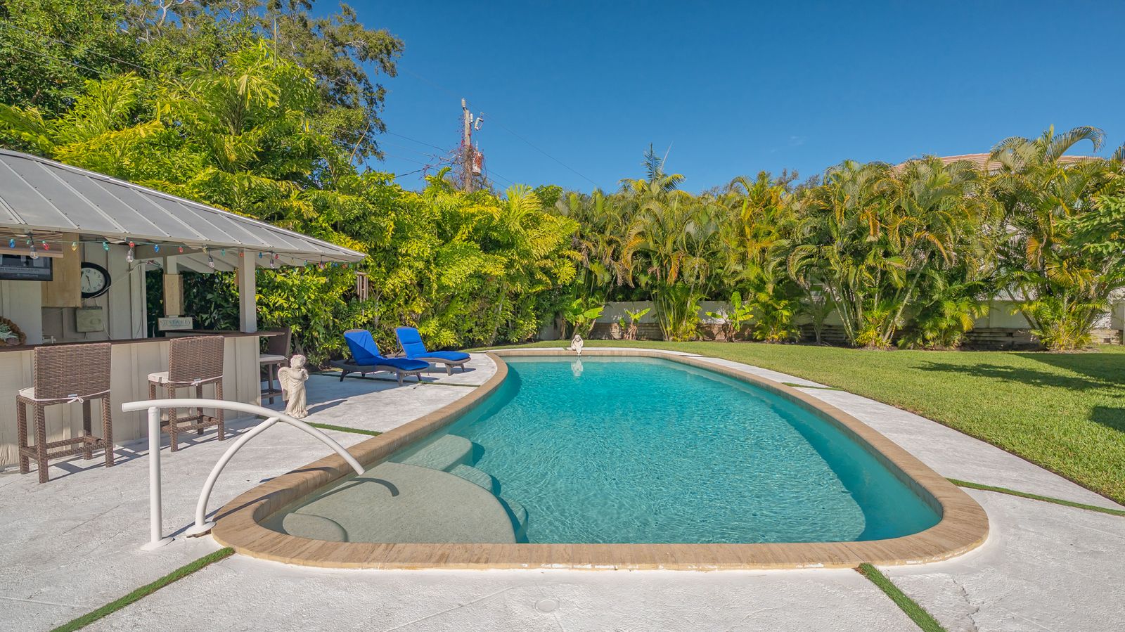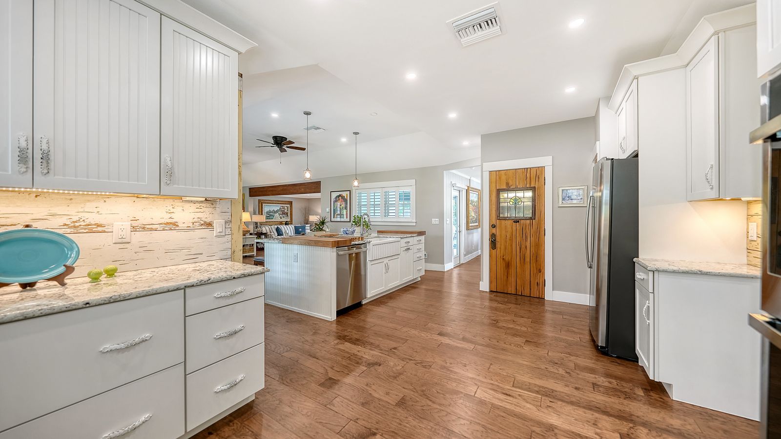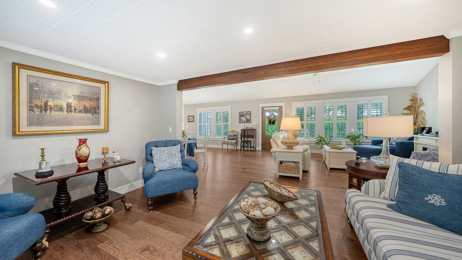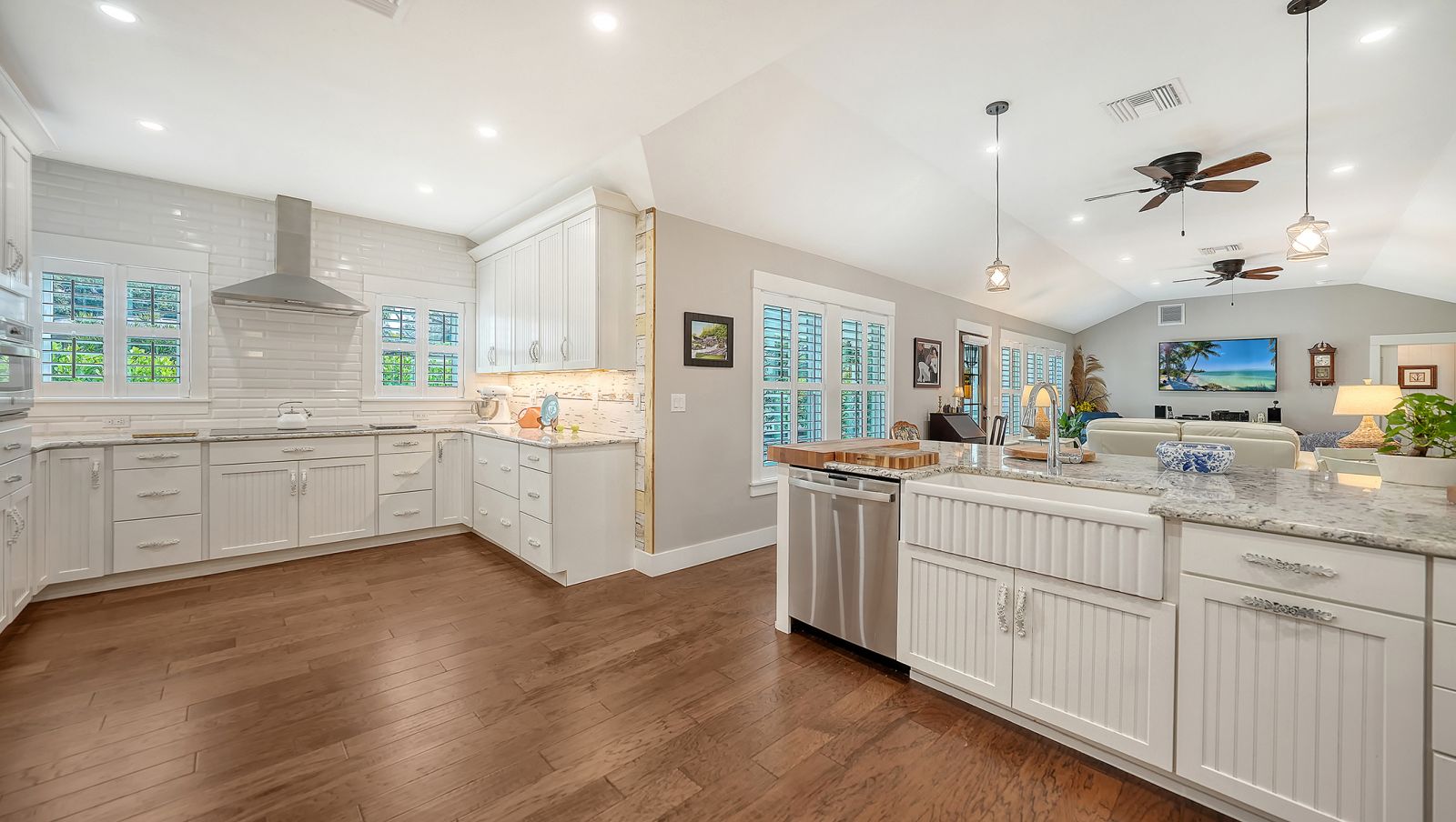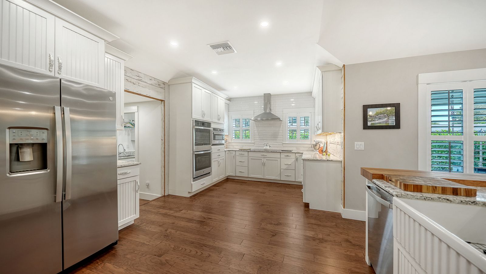 A rare and extraordinary offering, this is the home everyone has been waiting for. Rebuilt from the ground up between 2021-2024, this stunning farmhouse-coastal estate blends timeless charm with modern luxury on a beautifully landscaped .45-acre lot, providing one of the largest under grass rear yards west of trail in the exclusive Granada neighborhood, ideal for a entertaining and added privacy. No expense was spared and no detail overlooked in this fully reimagined residence, truly a "1939 meets 2025" masterpiece in one of Sarasota's most coveted locations. From the metal roof, hurricane-rated windows and doors, spray-foam insulation, dual A/C and heating systems (3-ton and 5-ton), and buried utilities, to the oversized 3-car garage and full irrigation well system, this home was designed for both beauty and long-term performance. Inside, you'll find oak-grain wood flooring, porcelain tile, custom cabinetry throughout, plantation shutters on every window, and a gorgeous chef's kitchen featuring an oversized island, farmhouse sink, granite countertops, GE Profile stainless appliances, dual ovens, wine cooler, and more. The thoughtfully designed split floor plan offers three full bathrooms, pocket doors for privacy, and a luxurious primary suite with oversized his-and-hers walk-in closets. Sliders and windows open to the resort-style pool area from three separate rooms, the primary suite, cabana, and dining area creating seamless indoor/outdoor living. The pool has been completely updated with a new surface, tile, coping, pump, filtration, and heater. Outdoors, enjoy a screened porch with pecky cypress ceilings, dusk-to-dawn and motion lighting, and breathtaking, mature landscaping including fruit trees, fishtail palms, pitch apple hedge, and an approximately 80-year-old banyan tree, all supported by over 18,500 square feet of lush, irrigated grounds, an increasingly rare find in this west-of-trail setting. Perfectly positioned just minutes to downtown Sarasota, Sarasota Memorial Hospital, Southside Village, and the world-famous sands of Siesta Key Beach, this location offers both convenience and prestige, quiet neighborhood living with immediate access to dining, shopping, healthcare, and coastal lifestyle amenities. This is not a remodel, this is essentially a brand-new custom home wrapped in classic charm. A true Granada neighborhood showpiece, offering the character everyone loves, the space that's nearly impossible to find today, and the peace of mind of modern construction. Homes like this simply do not come along often.
