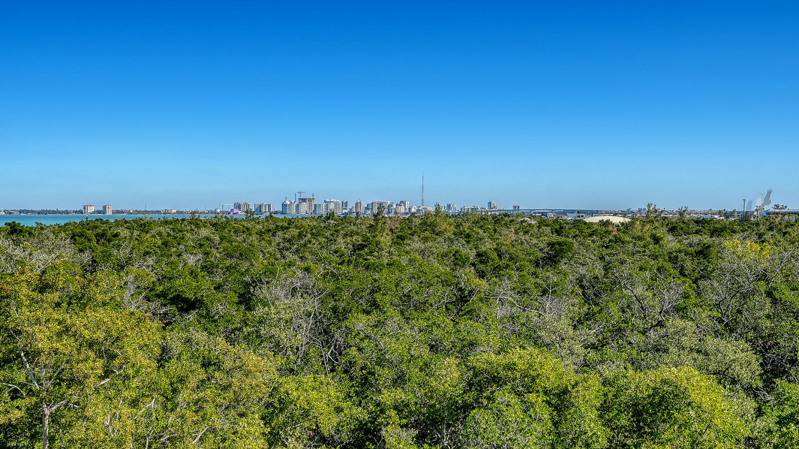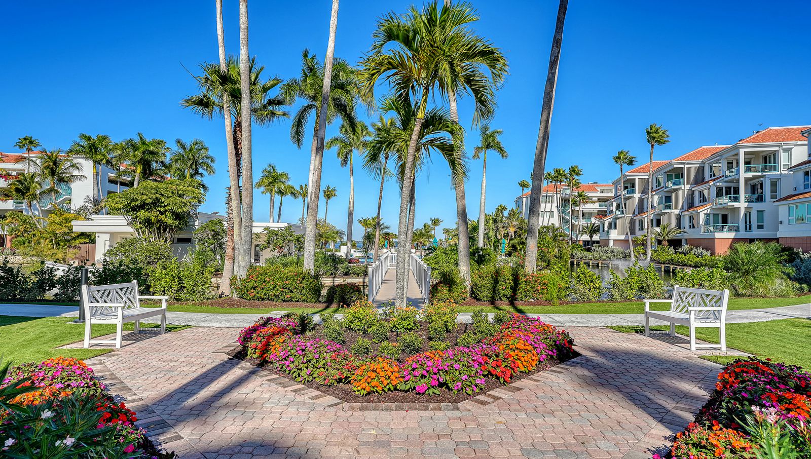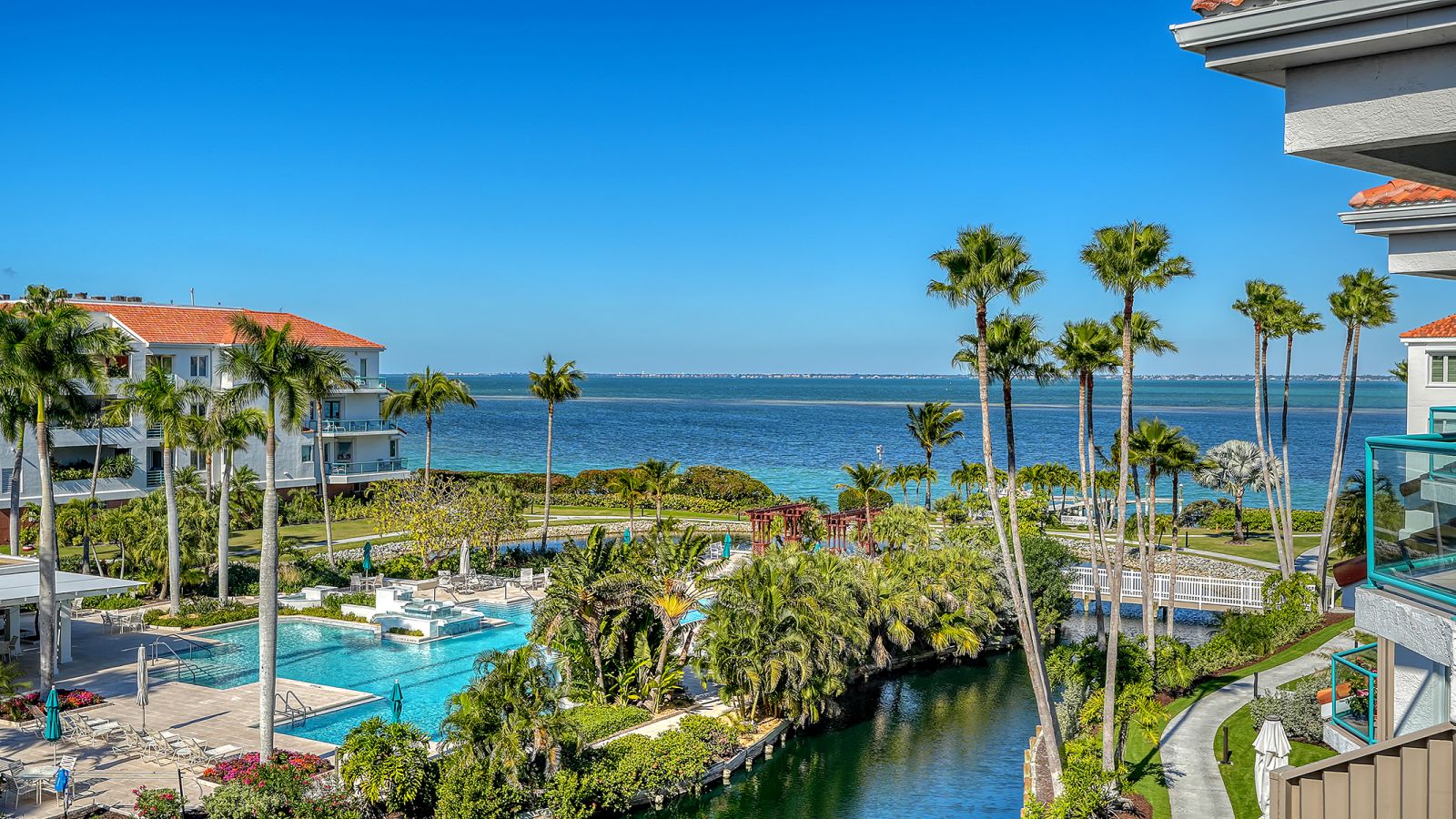 One or more photo(s) has been virtually staged. Set amid the lush, manicured grounds of Tangerine Bay, this exceptional two-story penthouse residence offers a rare blend of architectural volume, natural light, and water views. Mature tropical landscaping, tranquil lagoons, and resort-style amenities create a serene, park-like environment that feels both private and welcoming. Two terraces highlight scenic views and offer the option of installing a gas grill. Inside, soaring two-story ceilings define the main living area, creating an airy, light-filled atmosphere enhanced by expansive windows that frame picturesque views of the lagoon, resort-style pool w/ waterfall features, tropical plantings and the waters of Sarasota Bay and distant city skyline. The open living and dining spaces are ideal for both relaxed everyday living and entertaining, anchored by a fireplace and generous wall space for art. From the entry patio, unexpected Bay and city views provide a striking first impression and a unique urban-meets-coastal backdrop. The residence features three full bedrooms and three and a half baths. The upper-level retreat with its full bath has a terrace with elevated views across the natural preserve toward the city. This home presents a true blank canvas, thoughtfully priced to allow the new owner to reimagine and transform it into their own vision of refined coastal living. A deeded, private two-car garage adds exceptional convenience and value--an uncommon and highly desirable feature. Located on the coveted south end of Longboat Key, Tangerine Bay Club is a gated, pet-friendly community close to Lido Beach, dining and boutique shopping on St. Armands Circle, and the cultural, dining, and arts scene of downtown Sarasota. Optional Bay Isles Beach Club membership is available, providing exclusive access to a private, gated four-acre Gulf of Mexico beach facility, reserved for a select group of members--ideal for beach gatherings, sunset celebrations, and effortless days by the sea. An outstanding opportunity to embrace the Florida lifestyle in one of Longboat Key's most desirable bayfront communities.
