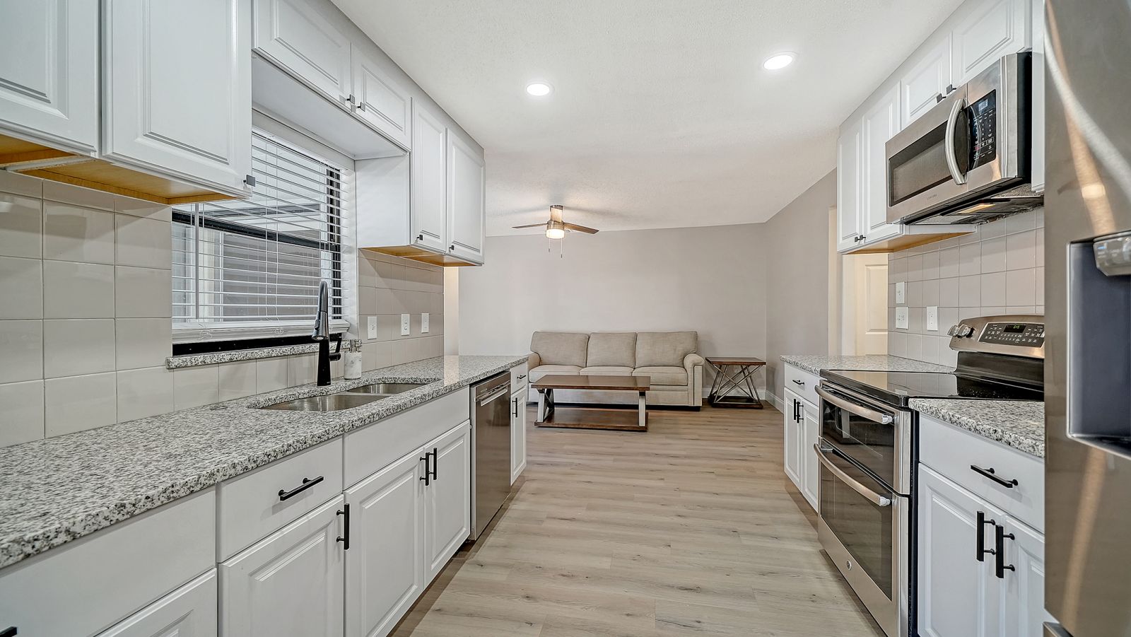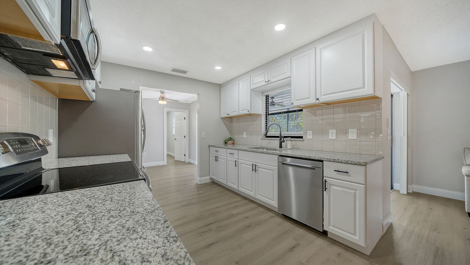 Newly Renovated Home in a Quiet, Central Sarasota LocationTucked away on a peaceful dead-end street, this home offers privacy, flexibility, investment potential and an unbeatable location just minutes from downtown Sarasota. As you approach, you're welcomed by a charming paver patio beside the screened porch--an inviting spot to relax and enjoy the surroundings. Step inside to discover open living spaces accented by new luxury vinyl plank flooring throughout, creating a warm and cohesive feel. The floor plan features three distinct yet open and connected living areas, providing exceptional flexibility for today's lifestyles--whether you need space for family living, dining, entertaining, or working from home. At the heart of the home is a brand-new kitchen, complete with stainless steel appliances. Pocket sliding glass doors extend the living space outdoors, offering access to a spacious screened lanai. A split-bedroom layout ensures privacy, while the dual vanity guest bathroom adds everyday convenience. Laundry room and a 2-car garage further enhance this home. Outside, the homeowners have completed major tree removal, opening up a huge, sun-filled backyard with southern exposure--a true blank canvas to create your own Florida oasis. There's ample room for a pool, space to roam, and even parking for an RV, boat, or other toys. With zoning that allows for short-term rentals and the potential to add an Accessory Dwelling Unit (ADU), this property also presents outstanding investment and income-producing opportunities. All of this is set in a quiet, central cul-de-sac location close to shopping, dining, beaches, cultural attractions, and everything Sarasota has to offer. Close to vibrant downtown, enjoy easy access to St. Armands Circle, Lido Key, and the barrier islands, and benefit from a direct route to I-75 and University Town Center. Whether you are looking for a winter retreat, full-time residence or investment potential, this home offers endless possibilities.