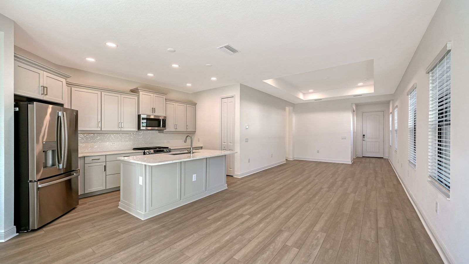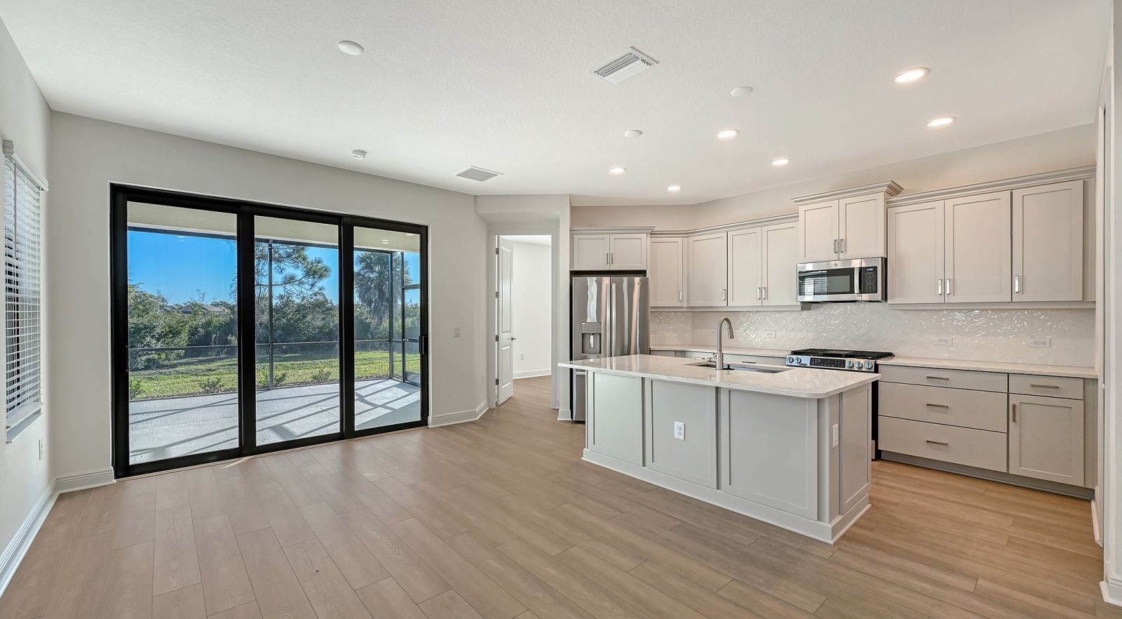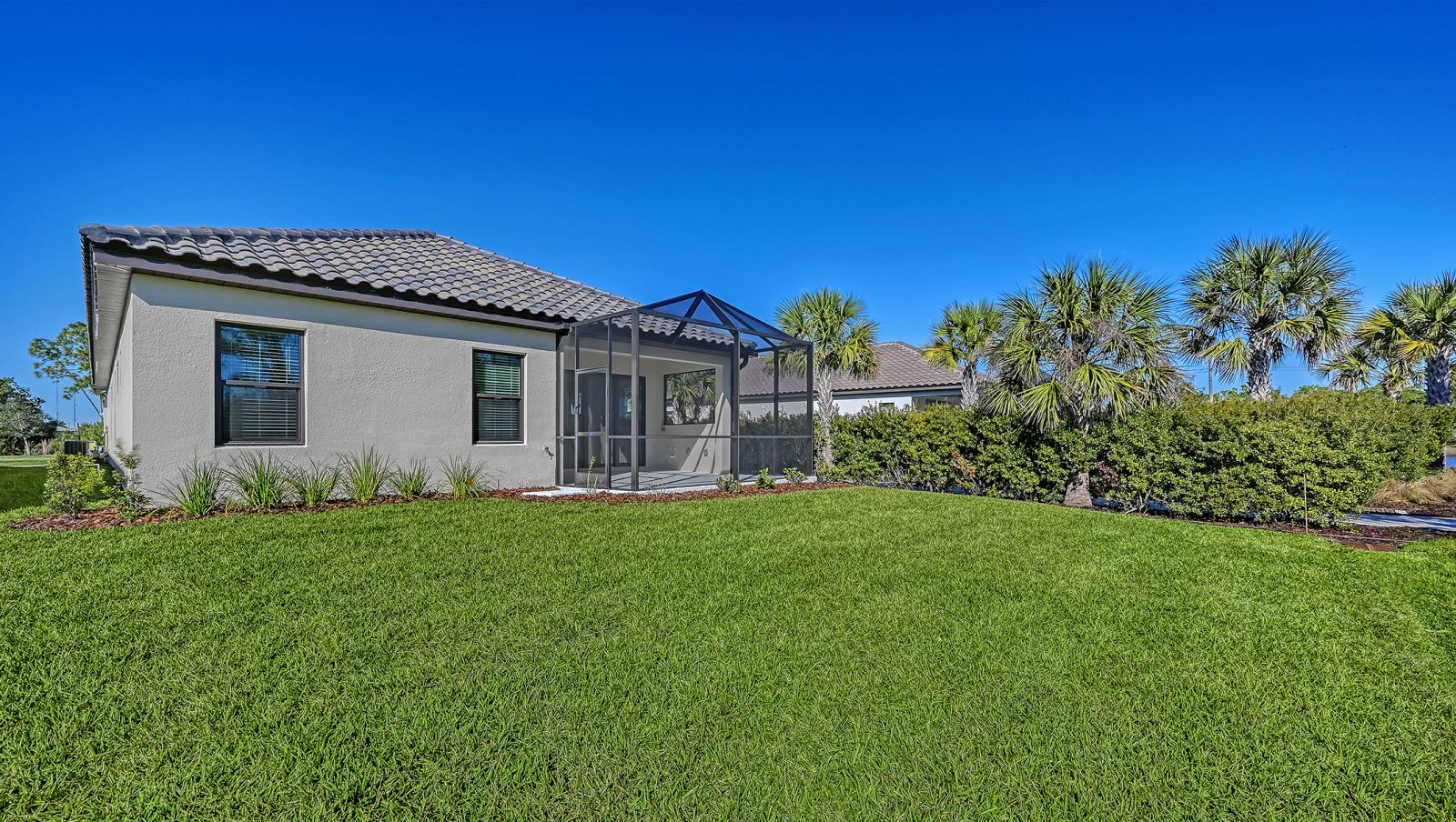 The Patriot offers a bright and spacious open-concept living area, featuring an expansive great room with a recessed ceiling, a generous dining area, and a well-appointed kitchen complete with an island--ideal for entertaining or everyday living. Sliding glass doors lead to an extended, covered lanai, which includes a built-in outdoor kitchen wall--perfect for enjoying indoor-outdoor living year-round.The master suite is a serene retreat, with a large bedroom that looks out to the lanai, a spacious walk-in closet, and a luxurious bath featuring dual vanities, a walk-in shower, and a private water closet. Two additional bedrooms share a second full bath, conveniently located between them for privacy and functionality.
