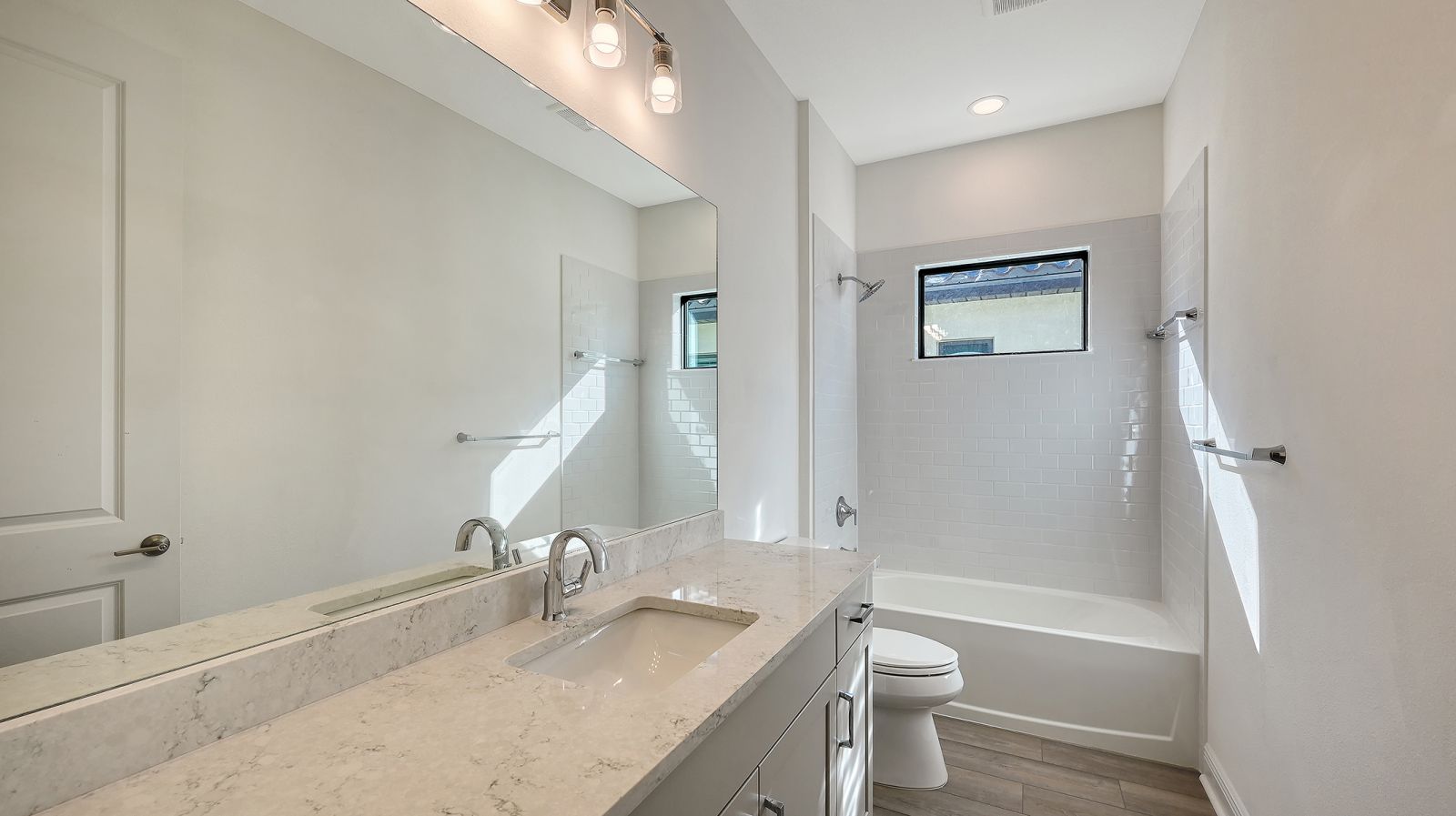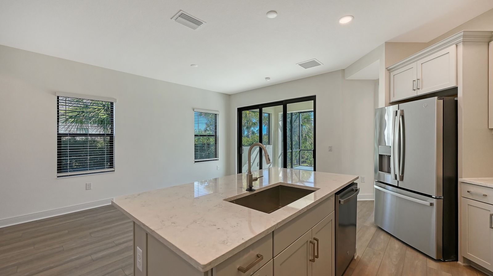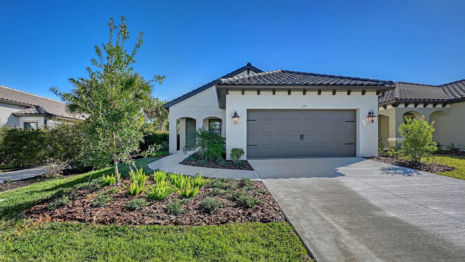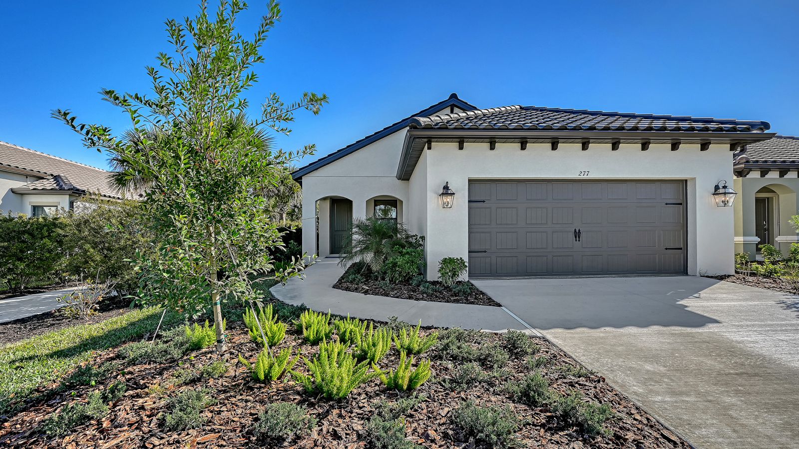 The Patriot offers a bright and spacious open-concept living area, featuring an expansive great room with a recessed ceiling, a generous dining area, and a well-appointed kitchen complete with an island--ideal for entertaining or everyday living. Sliding glass doors lead to an extended, covered lanai, which includes a built-in outdoor kitchen wall--perfect for enjoying indoor-outdoor living year-round.The master suite is a serene retreat, with a large bedroom that looks out to the lanai, a spacious walk-in closet, and a luxurious bath featuring dual vanities, a walk-in shower, and a private water closet. Two additional bedrooms share a second full bath, conveniently located between them for privacy and functionality.