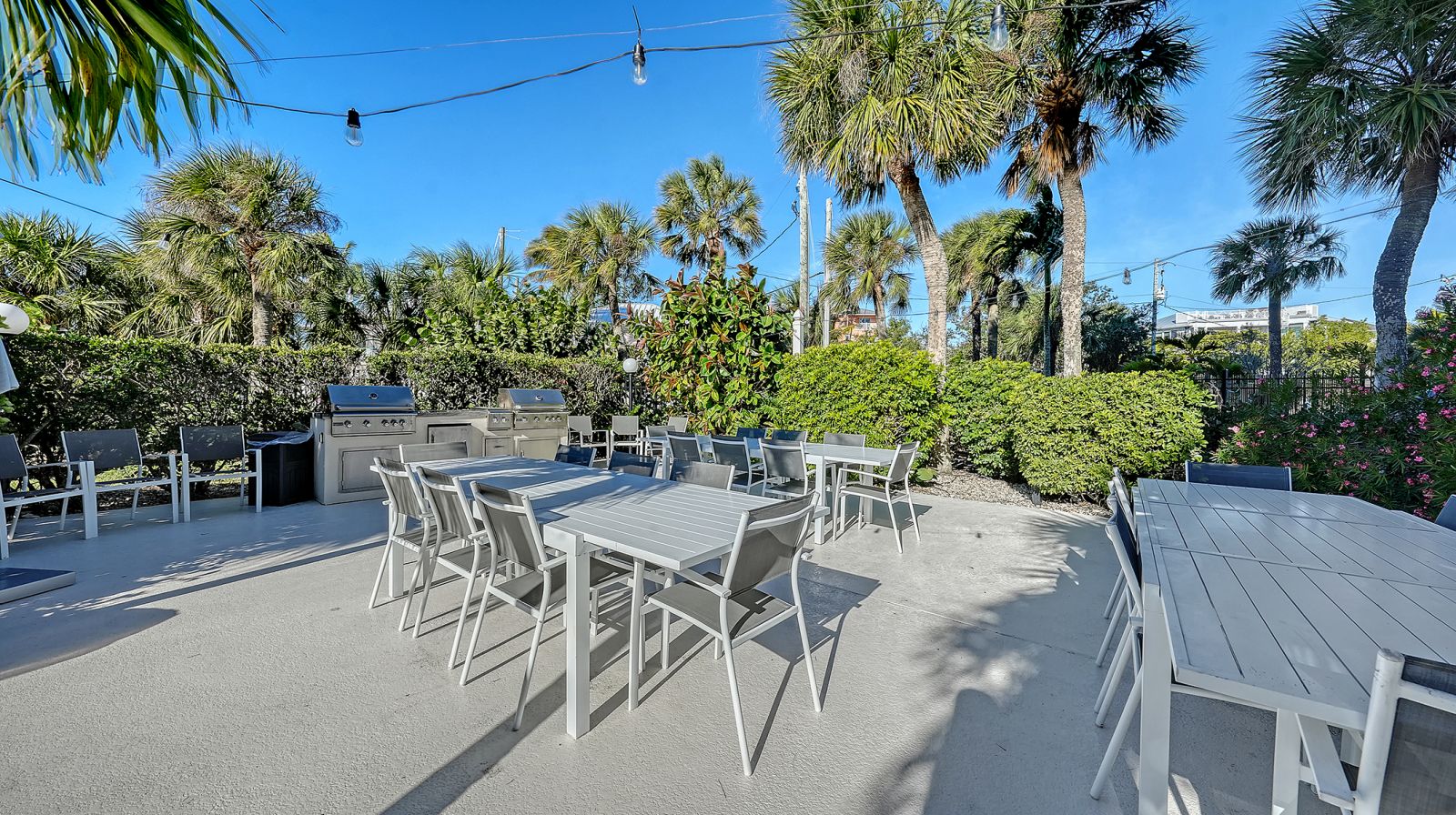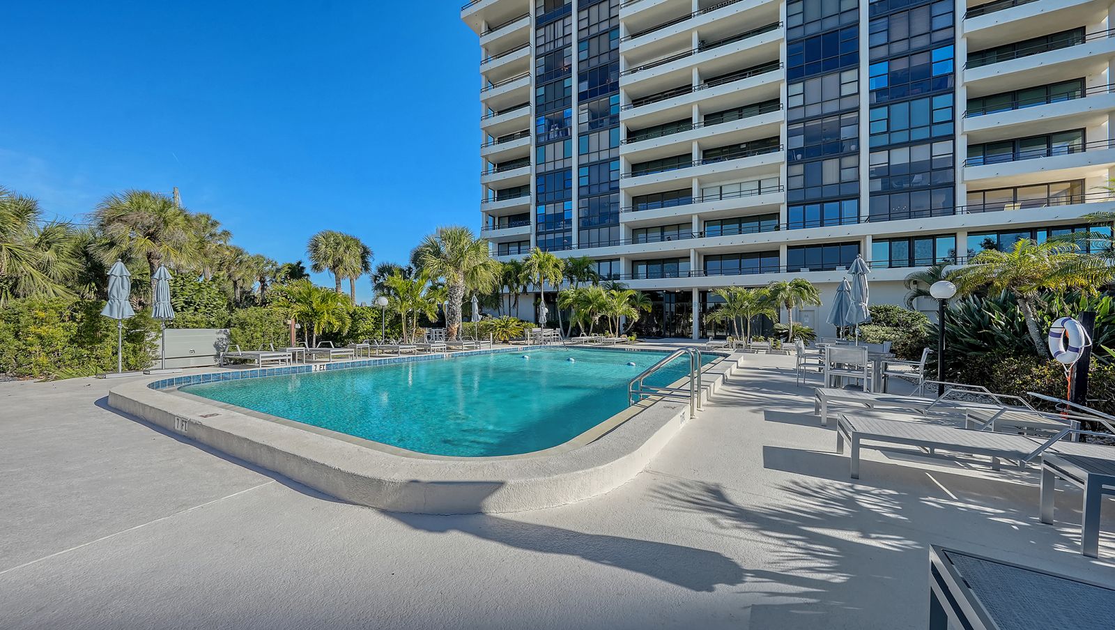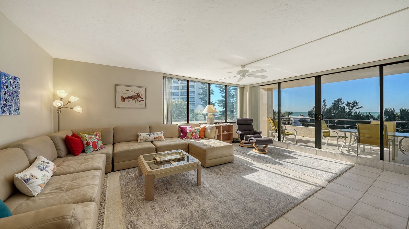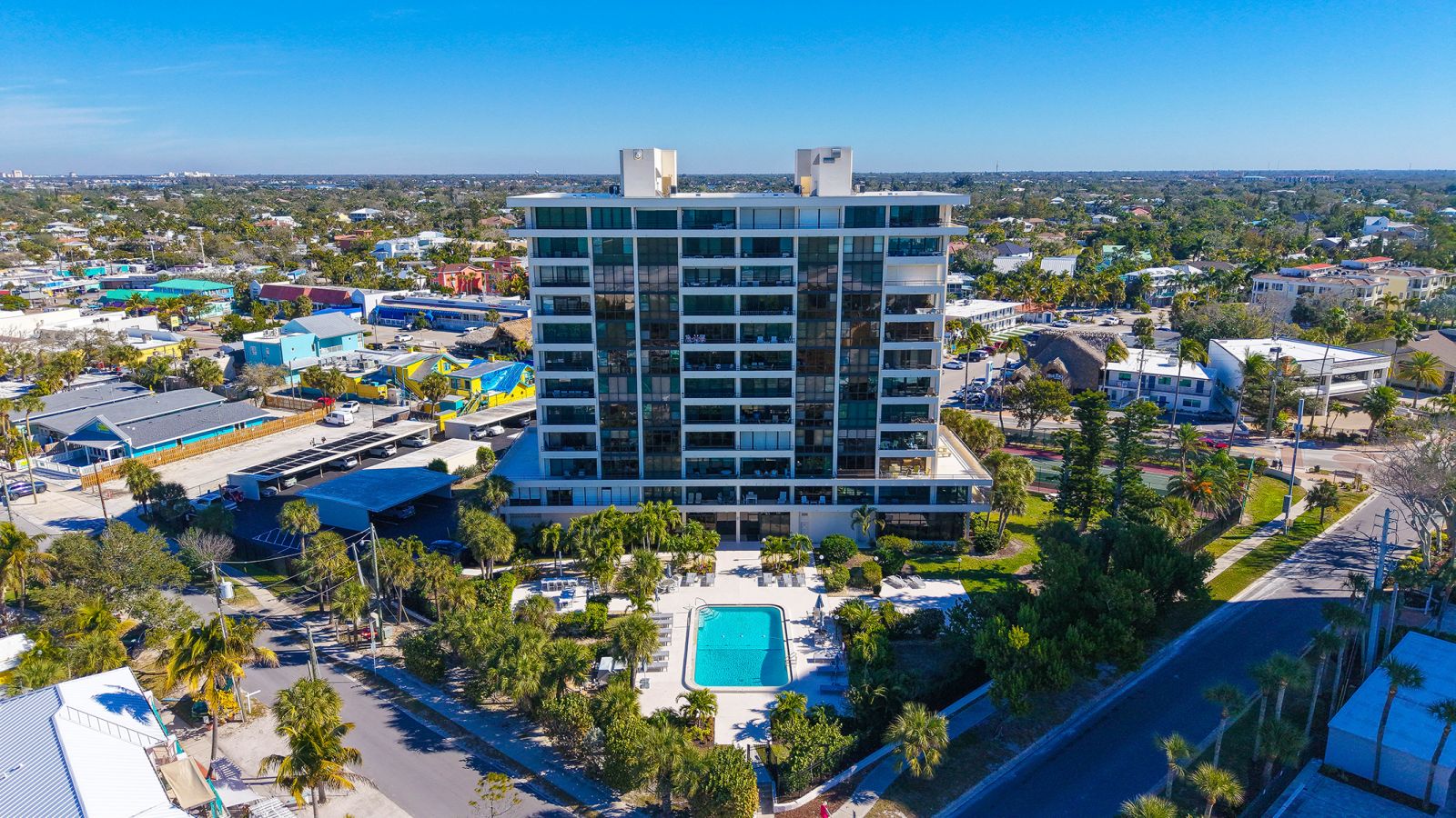 The ultimate beach condo with 270-degree views. Priceless. This beachy 1,446 square-foot 2-bedroom 2-bath corner residence offers a unique sunny, oversized corner, south-facing wraparound balcony with views of the beach, Gulf of Mexico and pool. Priceless. The unusual 1,130 square foot terrace is very special for alfresco dining, entertaining family and friends, parties, shuffleboard, play space, sunning and more, which is not available in other condos. From this incredible Siesta Key location you can walk out to the sugar-white sands of #1 Siesta Key beach for a relaxing swim in the azure-blue Gulf of Mexico, or get some exercise walking the 3 miles of beachfront, snorkel, paddleboard, or take your beach bike for a spin on the beach. Enjoy your morning coffee or a cocktail from your extensive terrace balconies while watching the colorful hues of the Florida sunrise and sunset without having to leave your condo. For a more lively experience, take a short stroll into quaint Siesta Village and indulge in the fun shops, restaurants and bars. The floor plan flows from the balcony on the beachside all the way through to the back of the building with sliding glass doors leading to both balconies and views looking east over Siesta Village and west over the Gulf of Mexico. The elevator services only two condos per floor with an updated private foyer and private laundry facilities for two condos. The Terrace East has a modern updated lobby and social room, newly refinished pool with new grills & refrigerator, new pool furniture, new roof in 2025, and equipped fitness center. All the fixed windows in all the condos will be replaced by the association by January 2028. This is a secure gated building with onsite full-time manager and maintenance man, very well-run association with active board and no current special assessments, and secure surveillance system. Amenities include a heated pool, a tennis court, pickleball, beautifully landscaped garden and grounds, and bicycle & paddleboard storage. Priceless!