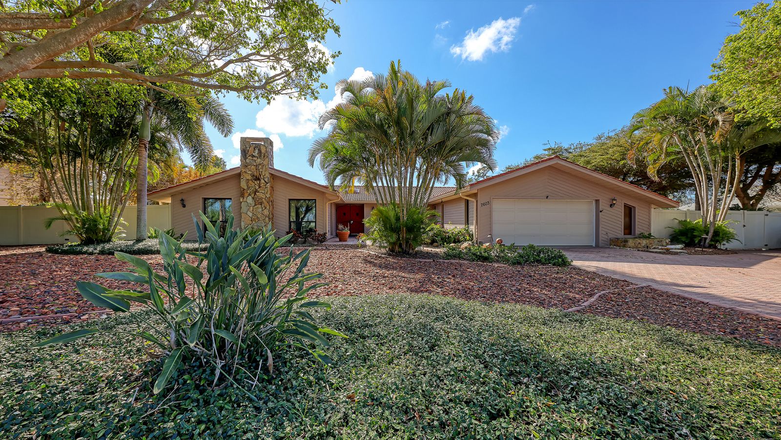 This spacious Palma Sola Park 3-bedroom, 2.5-bath home sits on nearly half an acre and is just a short 5-mile drive to the beaches of Anna Maria Island. The courtyard entry opens to a wide foyer, offering access to a large living room with vaulted ceilings and a wood-burning fireplace, or to the right, a generous family room, dining area, and kitchen--ideal for everyday living and entertaining. The bright, modern kitchen features white stone countertops and a convenient pass-through to the enclosed lanai. The lanai opens to a screened back porch spanning the width of the home, overlooking a tranquil, park-like backyard. The guest wing includes two bedrooms and one full bath, along with a separate laundry room that provides access to the oversized garage and a half bath.The beautifully landscaped yard features sculpted lawns, brick walkways, mature plantings, a rain barrel, and a 15' x 11' wired storage shed, all enclosed by a 6-foot white PVC privacy fence. The oversized 20' x 24' garage includes the half bath and offers abundant storage space.Recent upgrades include:All new impact-rated windows and garage doorHigh-efficiency HVAC system with UV filtrationGenerator (slab-mounted) with buried propane tankNew electrical panelPalma Sola Park is one of West Bradenton's oldest and most desirable neighborhoods, with the first homes built in the 1920s. Residents enjoy expansive green spaces and close proximity to beaches, boating, nature preserves, shopping, and dining.Within the community you'll find Rose Park and Pier--a favorite sunset spot--Seville Circle, a multi-acre open green space, and a private neighborhood boat basin with 40 slips available to residents (Must join yacht club/typically with a waiting list for a slip). All information in this listing is thought to be reliable but not guaranteed. Agent and buyer should verify any information that the buyer considers to be important.