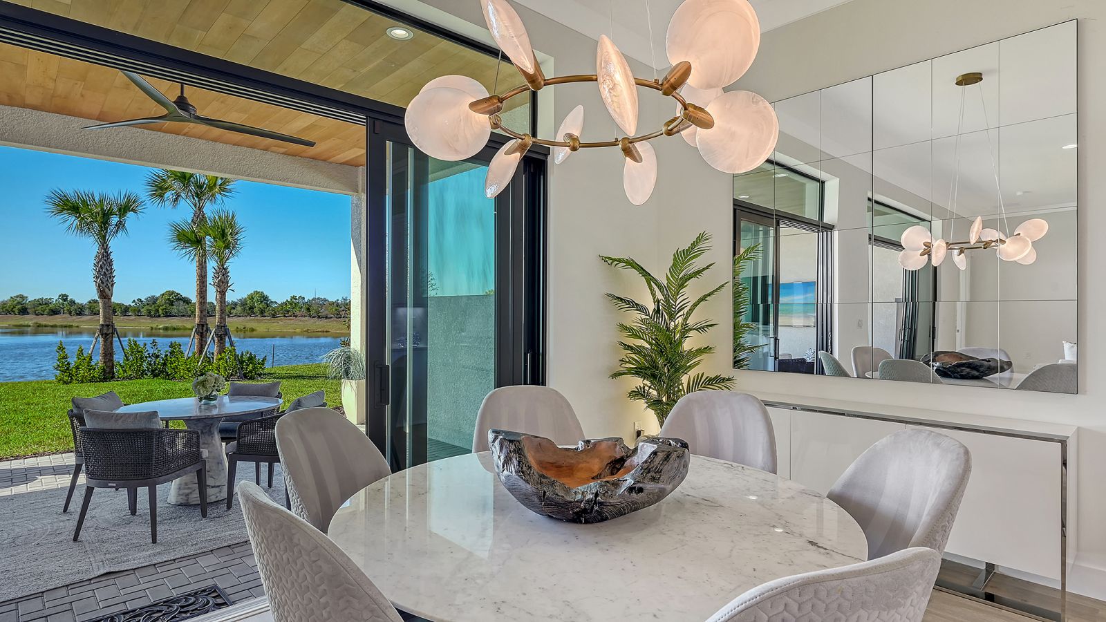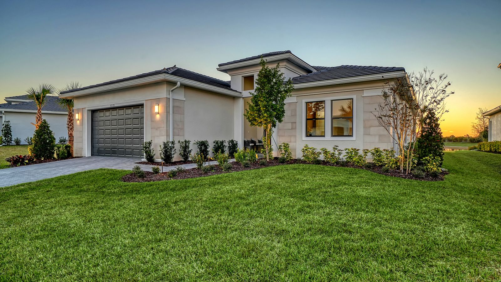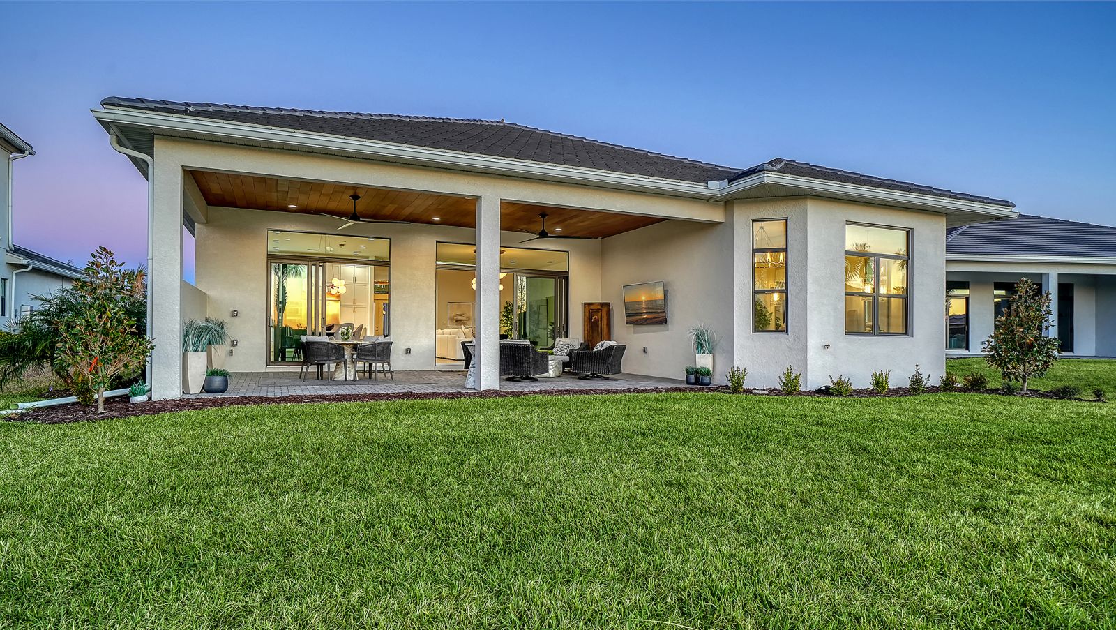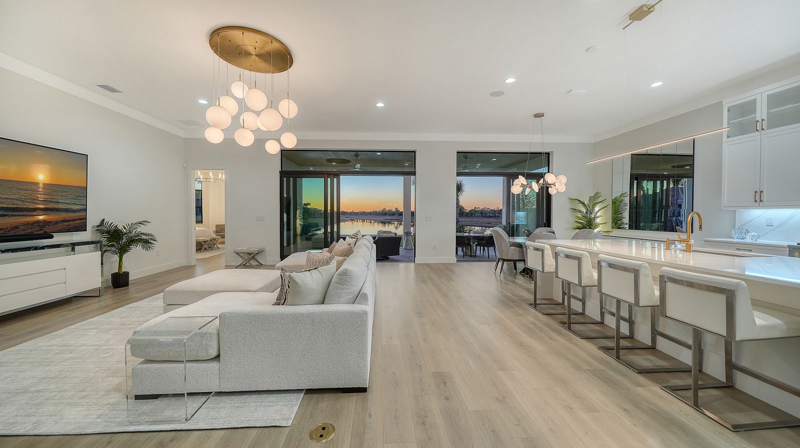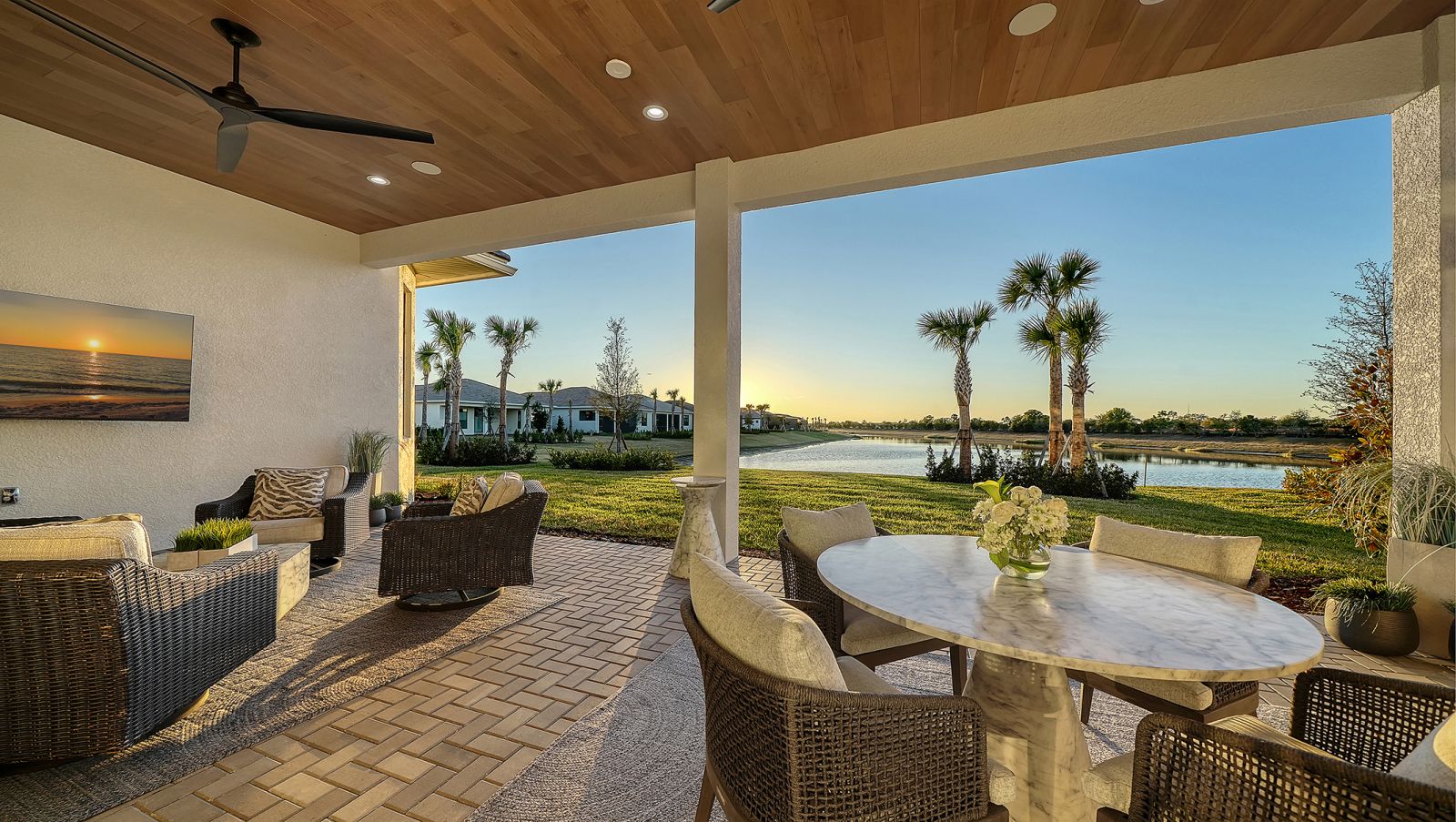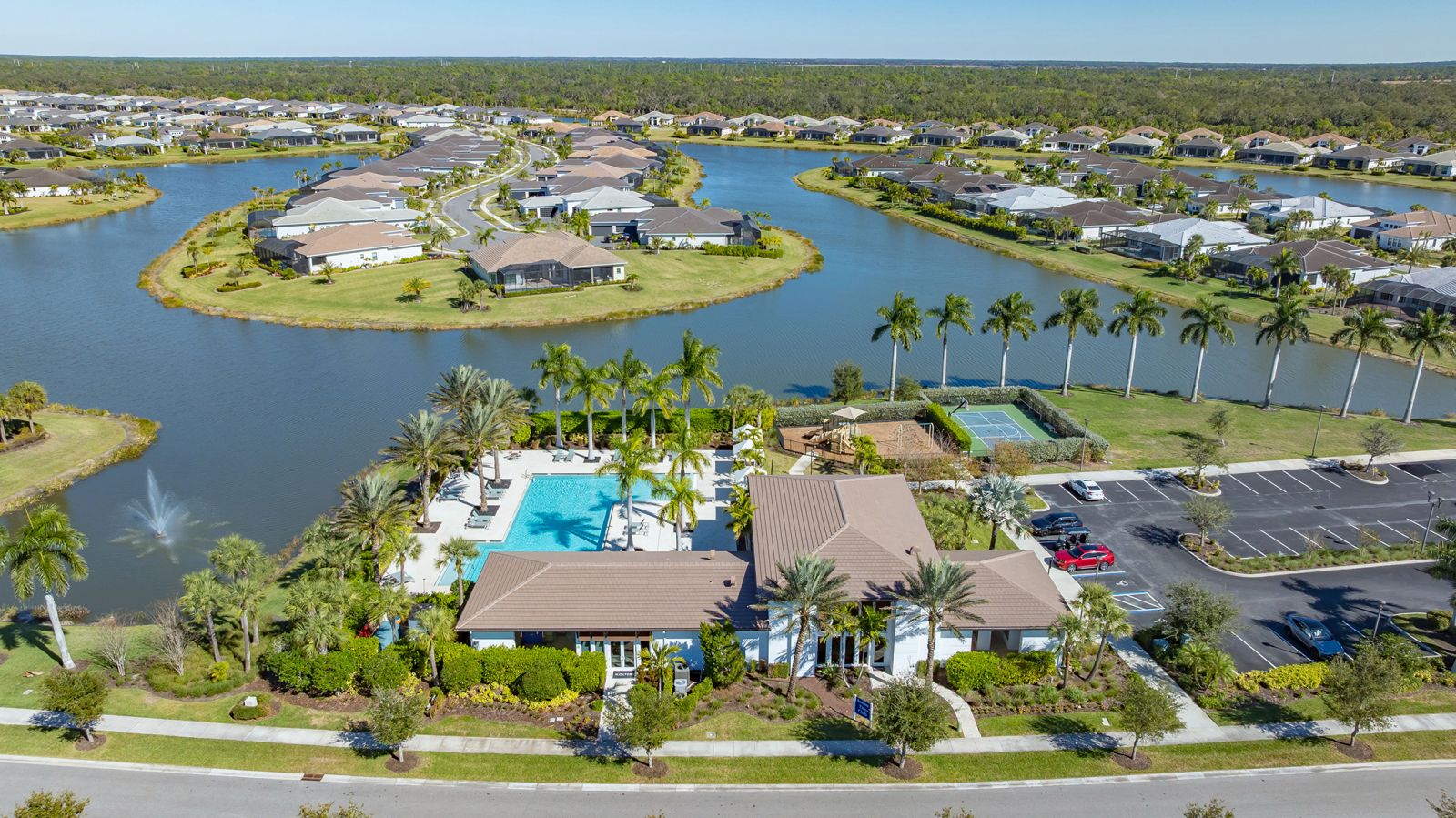 Sunsets become a daily celebration in this extraordinary lakefront residence, where architectural refinement, generous scale and serene water views come together in perfect harmony. Built in July 2025 and set within the gated Artistry Sarasota community, this newly constructed home offers 3,097+/- sq. ft. of thoughtfully designed interior space with an additional 600 sq. ft. of outdoor living, all positioned to capture western exposure and breathtaking evening skies across the horizon. From the moment you arrive, the home feels intentional and welcoming. Soaring high ceilings with tray accents, grand 8' doors and dramatic walls of glass create an atmosphere that feels refined yet relaxed. More than 30' of sliders with transoms frame the lake beyond and open directly from the great room to the extended covered lanai, allowing indoor and outdoor living to flow effortlessly. Morning light filters through the double-glass entry with transom while evenings glow with reflections dancing across the water. The flowing open floor plan centers around a beautifully appointed gourmet kitchen, featuring an expansive quartz waterfall island and quartz countertops that continue seamlessly into the backsplash. The white shaker style cabinetry with upgraded pull-out drawers and a second row of upper cabinets ensures ample storage. Beautiful, antique brushed gold accent hardware adds to the thoughtful design touches. For the Chef in the family, enjoy entertaining with the beautiful GE Monogram appliance suite that includes, a natural 36" gas cooktop with designer hood, a 30" built-in Advantium convection microwave, 30" professional french-door electronic convection wall oven, 48" built-in side-by-side double door refrigerator and the 30" fully integrated dishwasher with statement handle. A large office/den offers flexibility for work or retreat, while three bedrooms include two private ensuite accommodations ideal for guests or family. The primary suite overlooks the lake and sunset horizon, offering an expanded layout with angled windows, a spa-inspired bath with soaking tub, designer tile running from floor to ceiling, an oversized frameless shower with added bench, dual vanities, and a linen closet. Enjoy the oversized custom walk-in closet offering three-tiers of ample storage. More than $400k in builder upgrades enhance the home, including smart systems for HVAC, appliances, security, whole house audio, ceiling speakers, wi-fi extender, smart garage system and keyless entry. Added upgrades are the impact glass on all windows and doors, foam insulation, tankless water heater, custom laundry room, epoxy-finished three-car tandem garage, custom wood ceiling accents on the front porch and lanai, ceiling fans, recessed lighting with dimmers and pre-wired pool package and a beautiful summer kitchen being installed in February. Artistry is a true maintenance-free lifestyle with NO CDD fees, and the HOA fee also covers lawn maintenance, mulching, irrigation and 2 secured gated entrances. Enjoy the resort-style clubhouse, fitness and yoga studio, heated saltwater pool, pickleball and basketball courts as well as miles of scenic walking trails. Conveniently located near Sarasota's most desirable destinations for fine dining, shopping, world renowned culture, world-class beaches as well as the nearby Lakewood Ranch, Waterside and several top-ranked Golf courses.