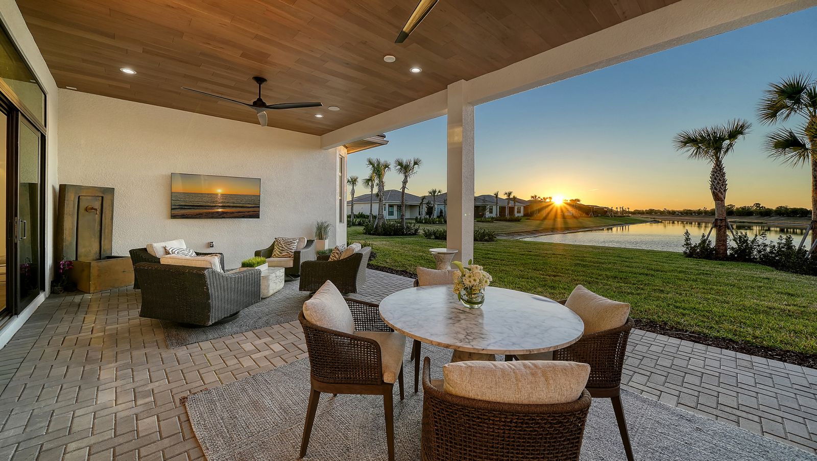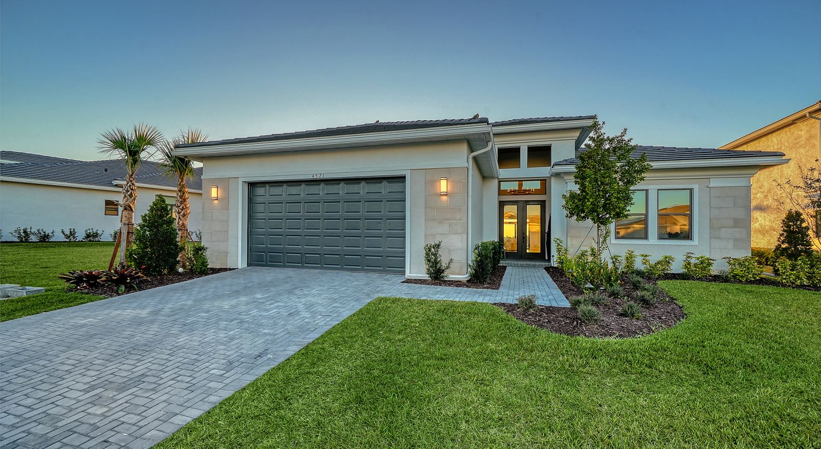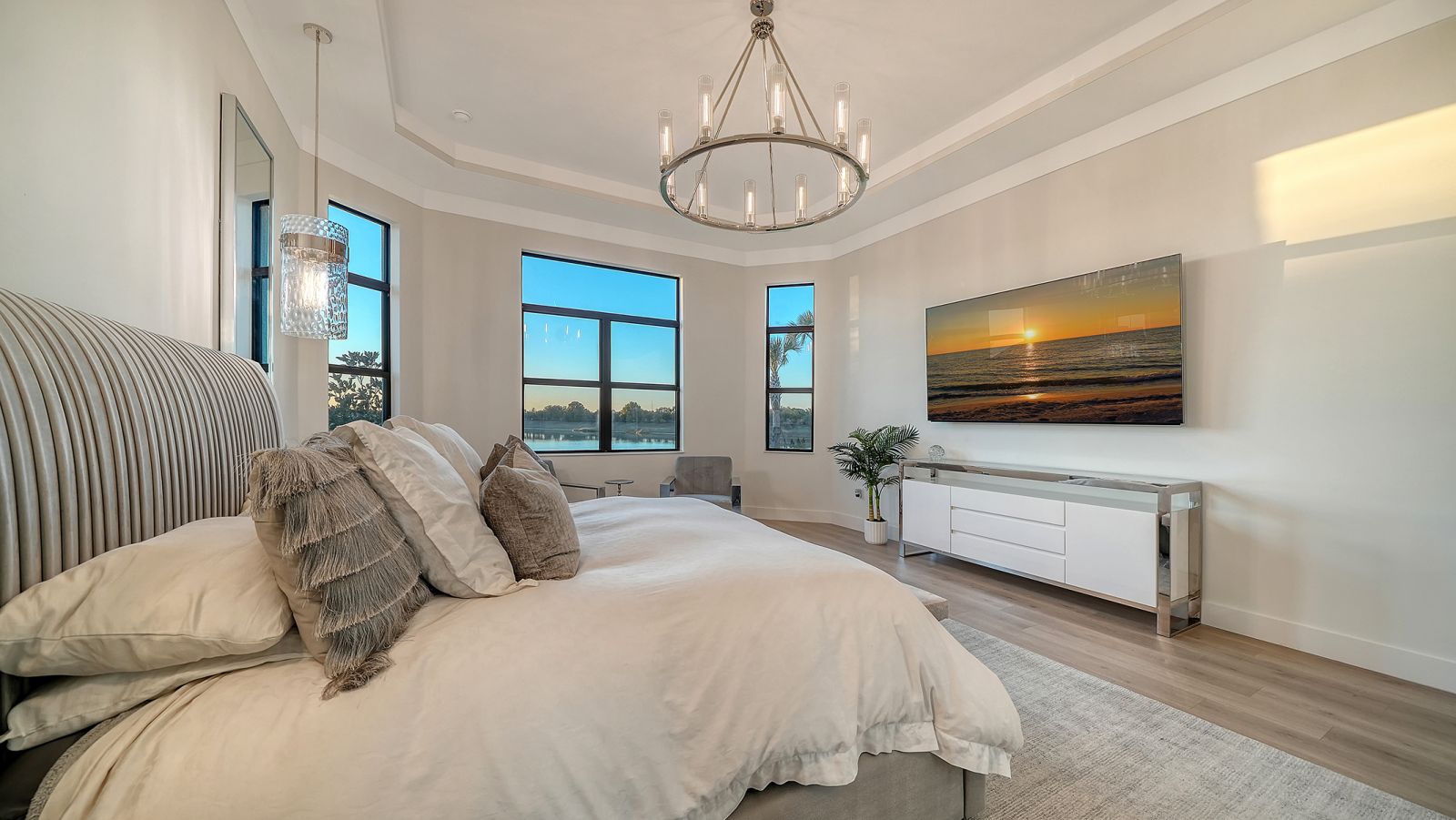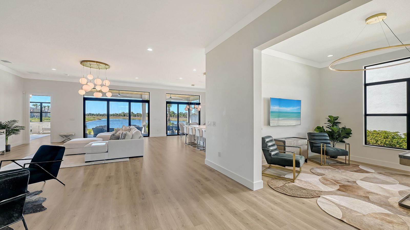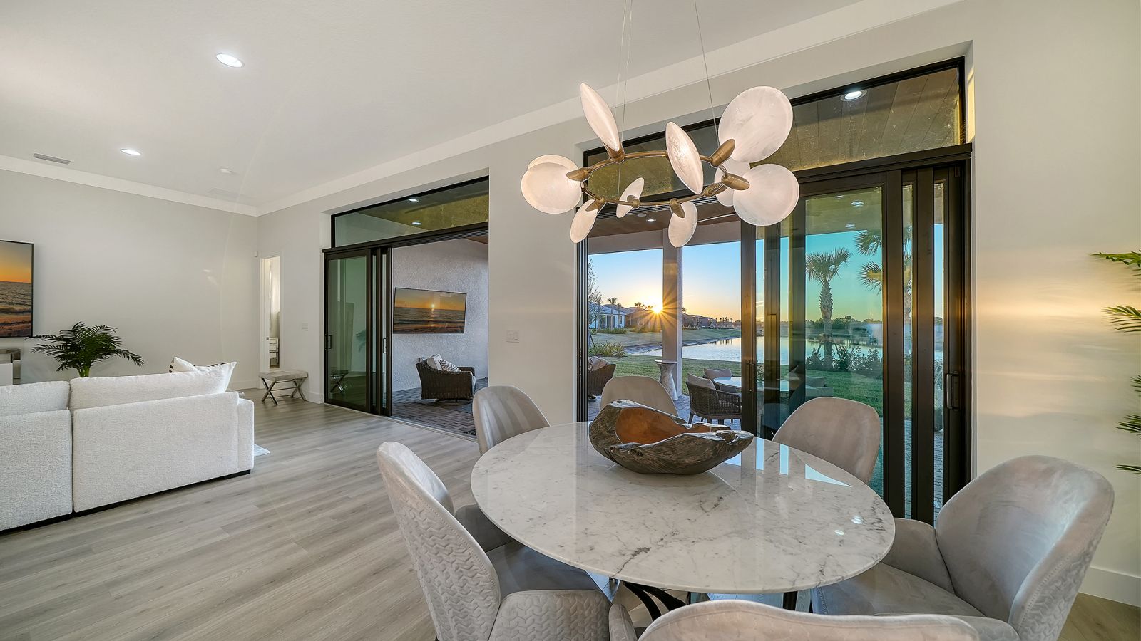 Sunsets become a daily celebration in this extraordinary lakefront residence, where architectural refinement, generous scale and serene water views come together in perfect harmony. Built in July 2025 and set within the gated Artistry Sarasota community, this newly constructed home offers 3,097+/- sq. ft. of thoughtfully designed interior space with an additional 600 sq. ft. of outdoor living, all positioned to capture western exposure and breathtaking evening skies across the horizon. From the moment you arrive, the home feels intentional and welcoming. Soaring high ceilings with tray accents, grand 8' doors and dramatic walls of glass create an atmosphere that feels refined yet relaxed. More than 30' of sliders with transoms frame the lake beyond and open directly from the great room to the extended covered lanai, allowing indoor and outdoor living to flow effortlessly. Morning light filters through the double-glass entry with transom while evenings glow with reflections dancing across the water. The flowing open floor plan centers around a beautifully appointed gourmet kitchen, featuring an expansive quartz waterfall island and quartz countertops that continue seamlessly into the backsplash. The white shaker style cabinetry with upgraded pull-out drawers and a second row of upper cabinets ensures ample storage. Beautiful, antique brushed gold accent hardware adds to the thoughtful design touches. For the Chef in the family, enjoy entertaining with the beautiful GE Monogram appliance suite that includes, a natural 36" gas cooktop with designer hood, a 30" built-in Advantium convection microwave, 30" professional french-door electronic convection wall oven, 48" built-in side-by-side double door refrigerator and the 30" fully integrated dishwasher with statement handle. A large office/den offers flexibility for work or retreat, while three bedrooms include two private ensuite accommodations ideal for guests or family. The primary suite overlooks the lake and sunset horizon, offering an expanded layout with angled windows, a spa-inspired bath with soaking tub, designer tile running from floor to ceiling, an oversized frameless shower with added bench, dual vanities, and a linen closet. Enjoy the oversized custom walk-in closet offering three-tiers of ample storage. More than $400k in builder upgrades enhance the home, including smart systems for HVAC, appliances, security, whole house audio, ceiling speakers, wi-fi extender, smart garage system and keyless entry. Added upgrades are the impact glass on all windows and doors, foam insulation, tankless water heater, custom laundry room, epoxy-finished three-car tandem garage, custom wood ceiling accents on the front porch and lanai, ceiling fans, recessed lighting with dimmers and pre-wired pool package and a beautiful summer kitchen being installed in February. Artistry is a true maintenance-free lifestyle with NO CDD fees, and the HOA fee also covers lawn maintenance, mulching, irrigation and 2 secured gated entrances. Enjoy the resort-style clubhouse, fitness and yoga studio, heated saltwater pool, pickleball and basketball courts as well as miles of scenic walking trails. Conveniently located near Sarasota's most desirable destinations for fine dining, shopping, world renowned culture, world-class beaches as well as the nearby Lakewood Ranch, Waterside and several top-ranked Golf courses.