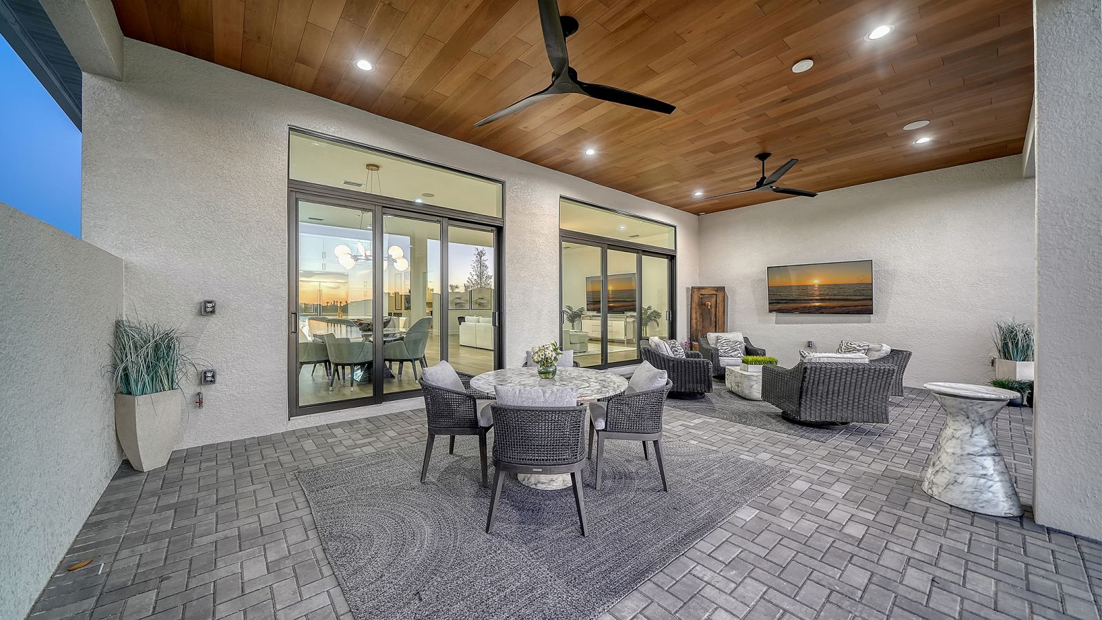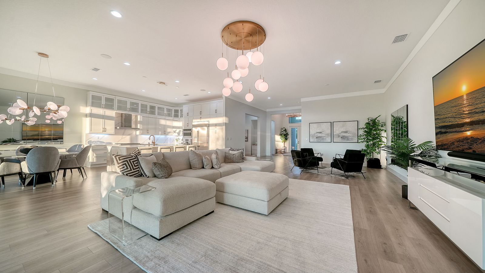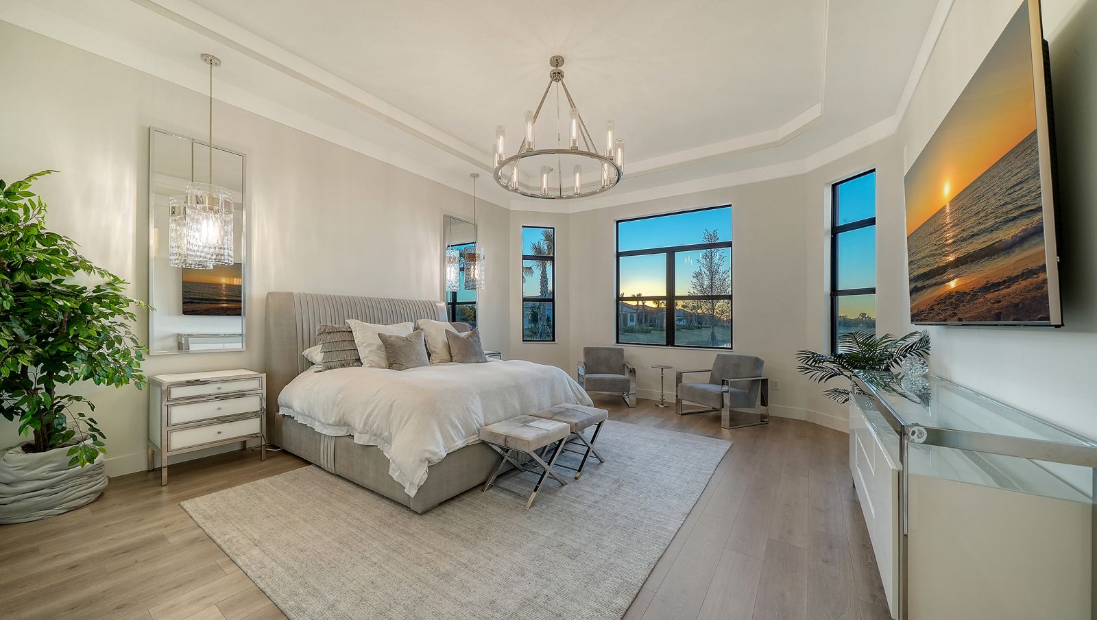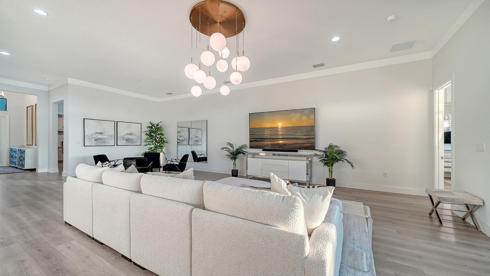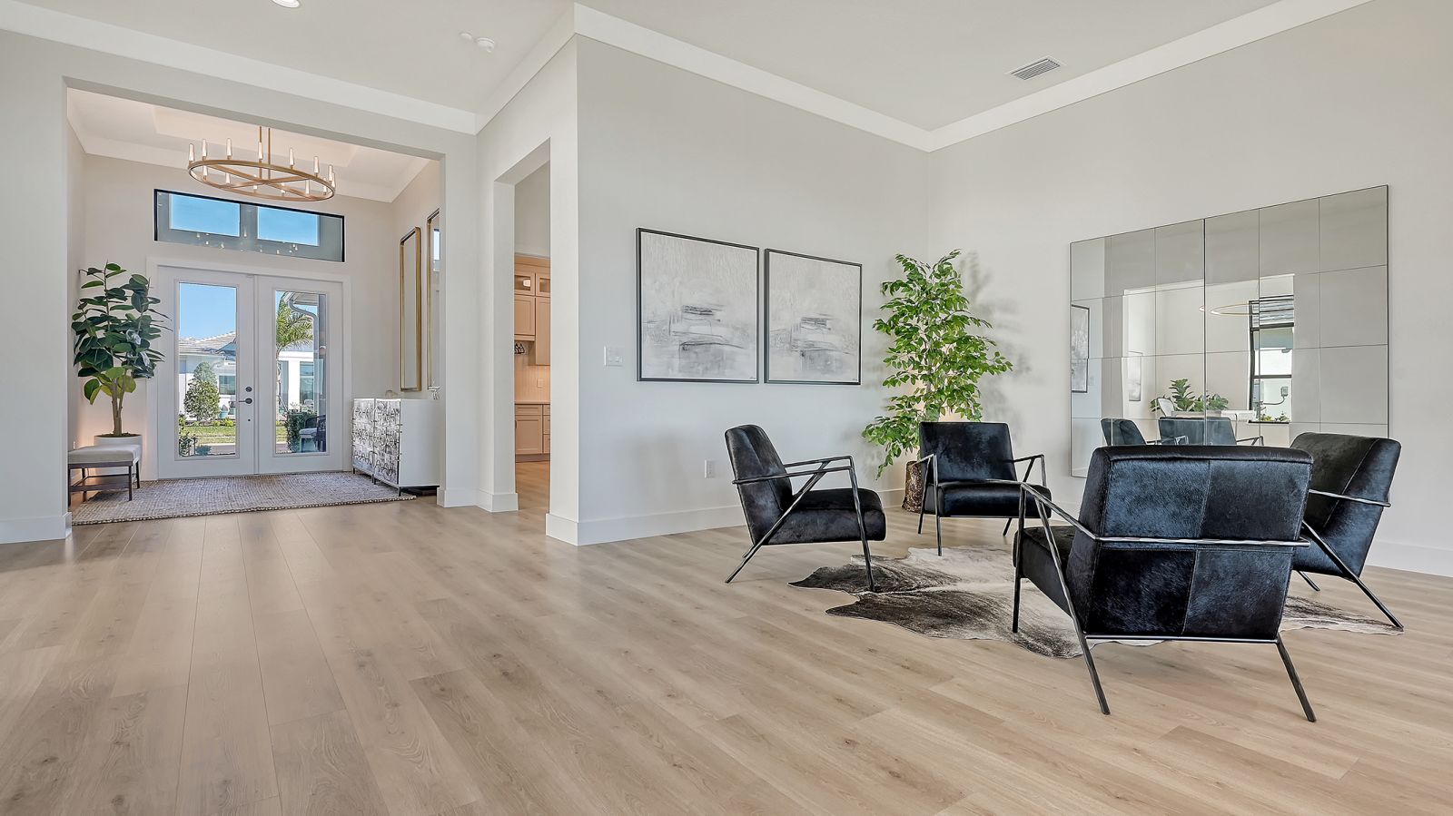 Sunsets become a daily celebration in this extraordinary lakefront residence, where architectural refinement, generous scale and serene water views come together in perfect harmony. Built in July 2025 and set within the gated Artistry Sarasota community, this newly constructed home offers 3,097+/- sq. ft. of thoughtfully designed interior space with an additional 600 sq. ft. of outdoor living, all positioned to capture western exposure and breathtaking evening skies across the horizon. From the moment you arrive, the home feels intentional and welcoming. Soaring high ceilings with tray accents, grand 8' doors and dramatic walls of glass create an atmosphere that feels refined yet relaxed. More than 30' of sliders with transoms frame the lake beyond and open directly from the great room to the extended covered lanai, allowing indoor and outdoor living to flow effortlessly. Morning light filters through the double-glass entry with transom while evenings glow with reflections dancing across the water. The flowing open floor plan centers around a beautifully appointed gourmet kitchen, featuring an expansive quartz waterfall island and quartz countertops that continue seamlessly into the backsplash. The white shaker style cabinetry with upgraded pull-out drawers and a second row of upper cabinets ensures ample storage. Beautiful, antique brushed gold accent hardware adds to the thoughtful design touches. For the Chef in the family, enjoy entertaining with the beautiful GE Monogram appliance suite that includes, a natural 36" gas cooktop with designer hood, a 30" built-in Advantium convection microwave, 30" professional french-door electronic convection wall oven, 48" built-in side-by-side double door refrigerator and the 30" fully integrated dishwasher with statement handle. A large office/den offers flexibility for work or retreat, while three bedrooms include two private ensuite accommodations ideal for guests or family. The primary suite overlooks the lake and sunset horizon, offering an expanded layout with angled windows, a spa-inspired bath with soaking tub, designer tile running from floor to ceiling, an oversized frameless shower with added bench, dual vanities, and a linen closet. Enjoy the oversized custom walk-in closet offering three-tiers of ample storage. More than $400k in builder upgrades enhance the home, including smart systems for HVAC, appliances, security, whole house audio, ceiling speakers, wi-fi extender, smart garage system and keyless entry. Added upgrades are the impact glass on all windows and doors, foam insulation, tankless water heater, custom laundry room, epoxy-finished three-car tandem garage, custom wood ceiling accents on the front porch and lanai, ceiling fans, recessed lighting with dimmers and pre-wired pool package and a beautiful summer kitchen being installed in February. Artistry is a true maintenance-free lifestyle with NO CDD fees, and the HOA fee also covers lawn maintenance, mulching, irrigation and 2 secured gated entrances. Enjoy the resort-style clubhouse, fitness and yoga studio, heated saltwater pool, pickleball and basketball courts as well as miles of scenic walking trails. Conveniently located near Sarasota's most desirable destinations for fine dining, shopping, world renowned culture, world-class beaches as well as the nearby Lakewood Ranch, Waterside and several top-ranked Golf courses.