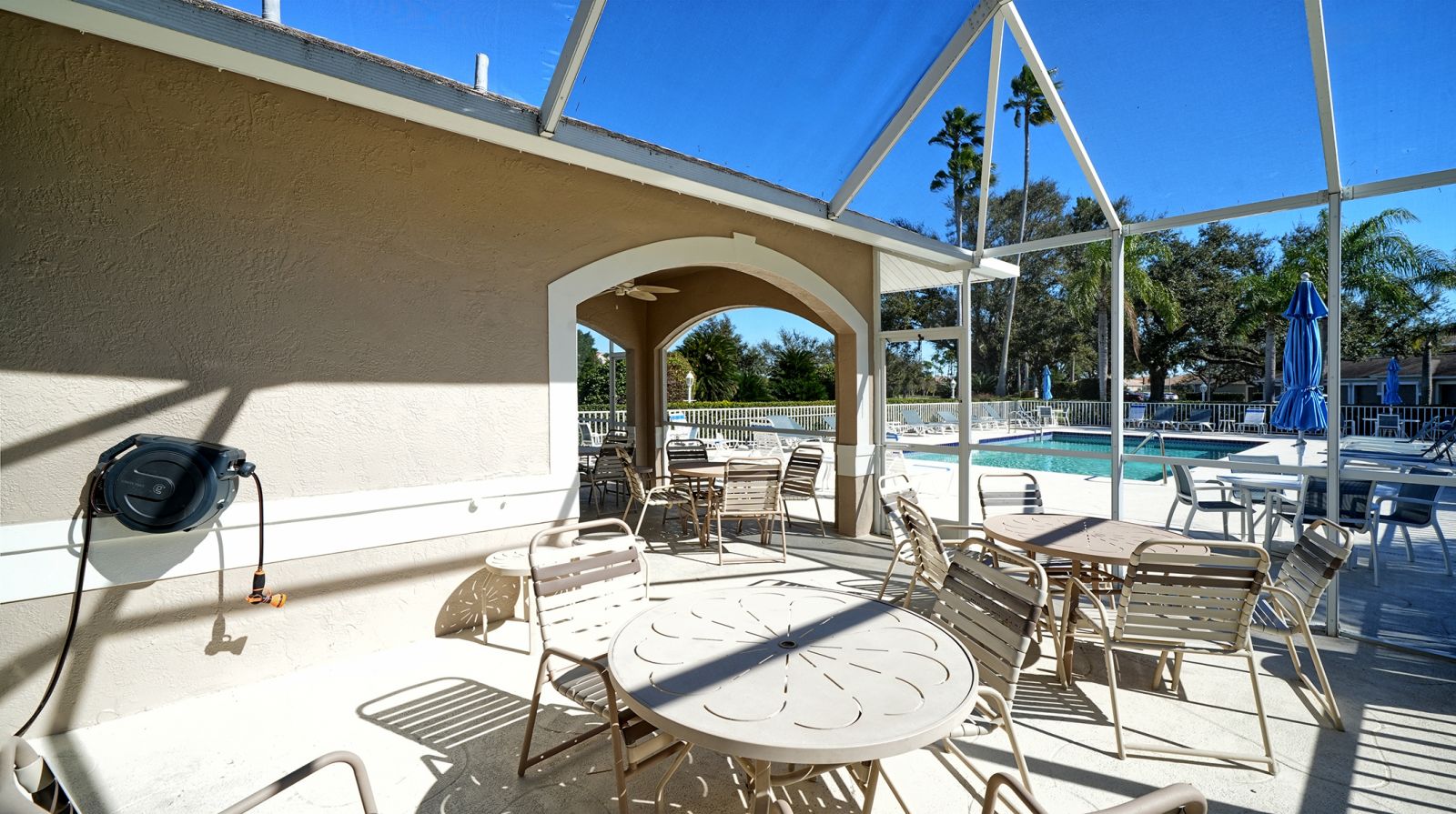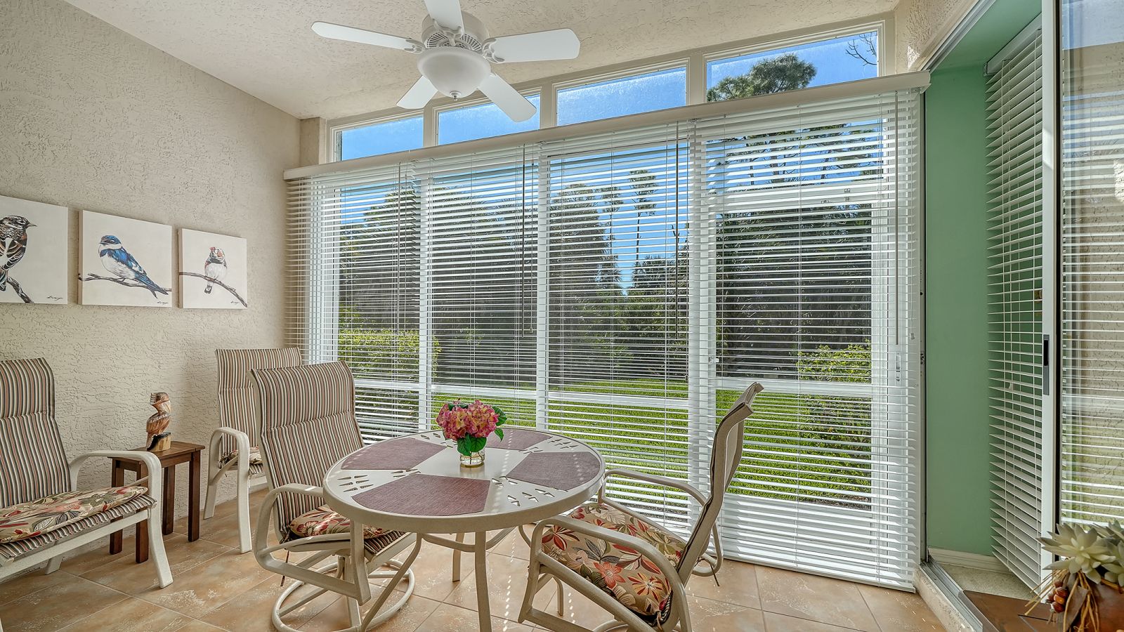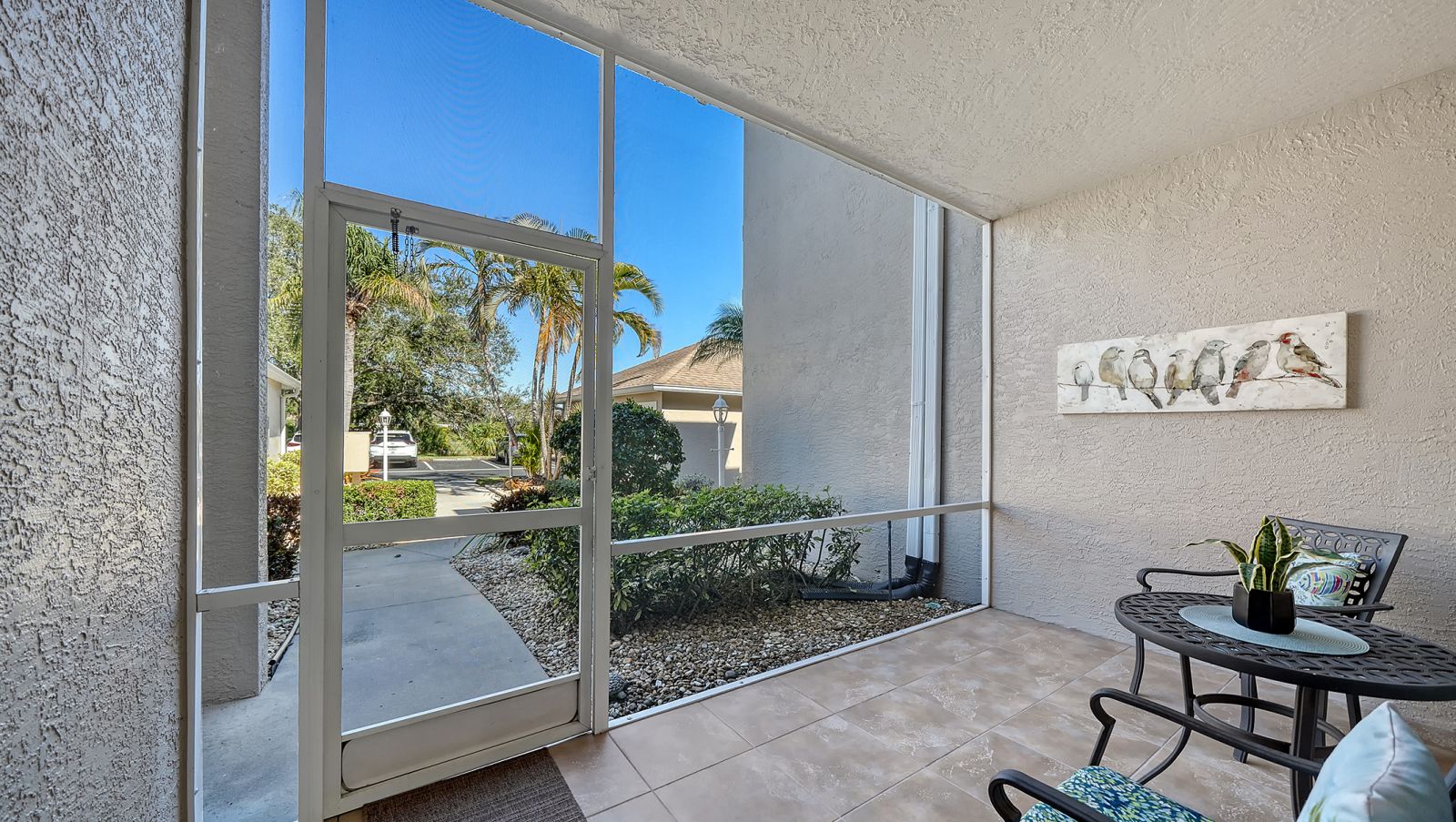 Here it is, that highly sought-after FIRST FLOOR condo in Stoneybrook G&CC, offering 2 bedrooms, two bathrooms, a screened and tiled front entry lanai, situated so that it provides an unobstructed view between the garages. The rear lanai is tiled and has sliding glass doors, making it a year-round indoor/outdoor living space. The bright and cheerful kitchen features sliding glass doors out onto the lanai, ample cabinet space, two pantries, new stainless steel appliances, and is separated from the dining area with a very open breakfast bar. The dining area has a new dining set, and there is new furniture in the living room. For added peace of mind, the air conditioner is new in 2025, and the hot water heater is new in 2023. The glass-enclosed rear lanai provides the condo with an abundance of natural light, and there are new blinds that adjust to your liking. The one-car garage is a perfect place for your beach gear and bikes, as well as your vehicle. The Fairway Verandas community pool is closeby and a favorite gathering place for the community. Residents also have full access to all the amenities the Stoneybrook lifestyle provides: a recently modernized 18-hole championship golf course, tennis, fitness center, proshop, bocce ball, and a restaurant with a bar and grill room, and indoor and outdoor dining. Stoneybrook borders the very popular Legacy walking and biking trail, and is just minutes from Siesta Key Beach, village shops and restaurants, and it's a short drive to downtown Sarasota. The seller has also paid the 2024 golf modernization assessment in full, meaning the buyer will not inherit a 10-year lien. This is a perfect opportunity to live the Stoneybrook Country Club lifestyle.