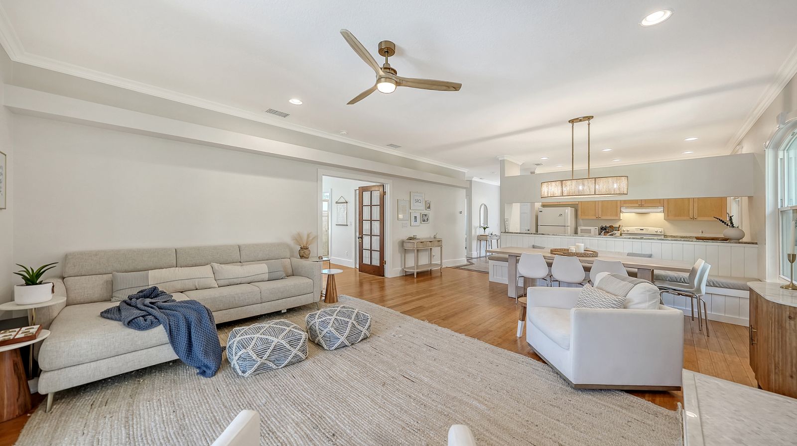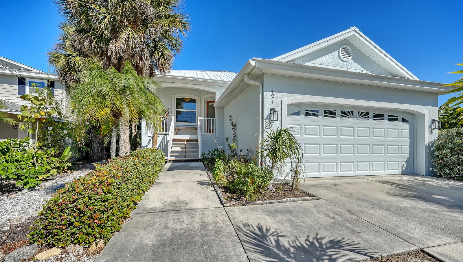 Ideally located on Palm Island in the heart of Siesta Key, this elevated block-construction home offers the ultimate blend of style and resilience. Situated on nearly a quarter-acre, this 2-bedroom, 2-bathroom residence includes a generously-sized office currently utilized as a 3rd bedroom. Elevated over 10 feet, the home features a metal roof (2019), hurricane impact windows (2019), newer HVAC (2022) and new exterior paint (2026). The interior shines with fresh paint, designer lighting, and a custom statement banquette. An updated kitchen with marble countertops is open to the ample iving and dining space, perfect for entertaining. The oversized owner's suite boasts a walk-in closet and an ensuite bath with dual sinks, and double doors opening to the deck and pool area. Outside, enjoy the newly installed heated pool and paver deck overlooking a tranquil saltwater pond, which provides additional privacy. Just blocks from the world-famous Siesta Key Beach and less than a mile from the Village, this is island living at its finest.