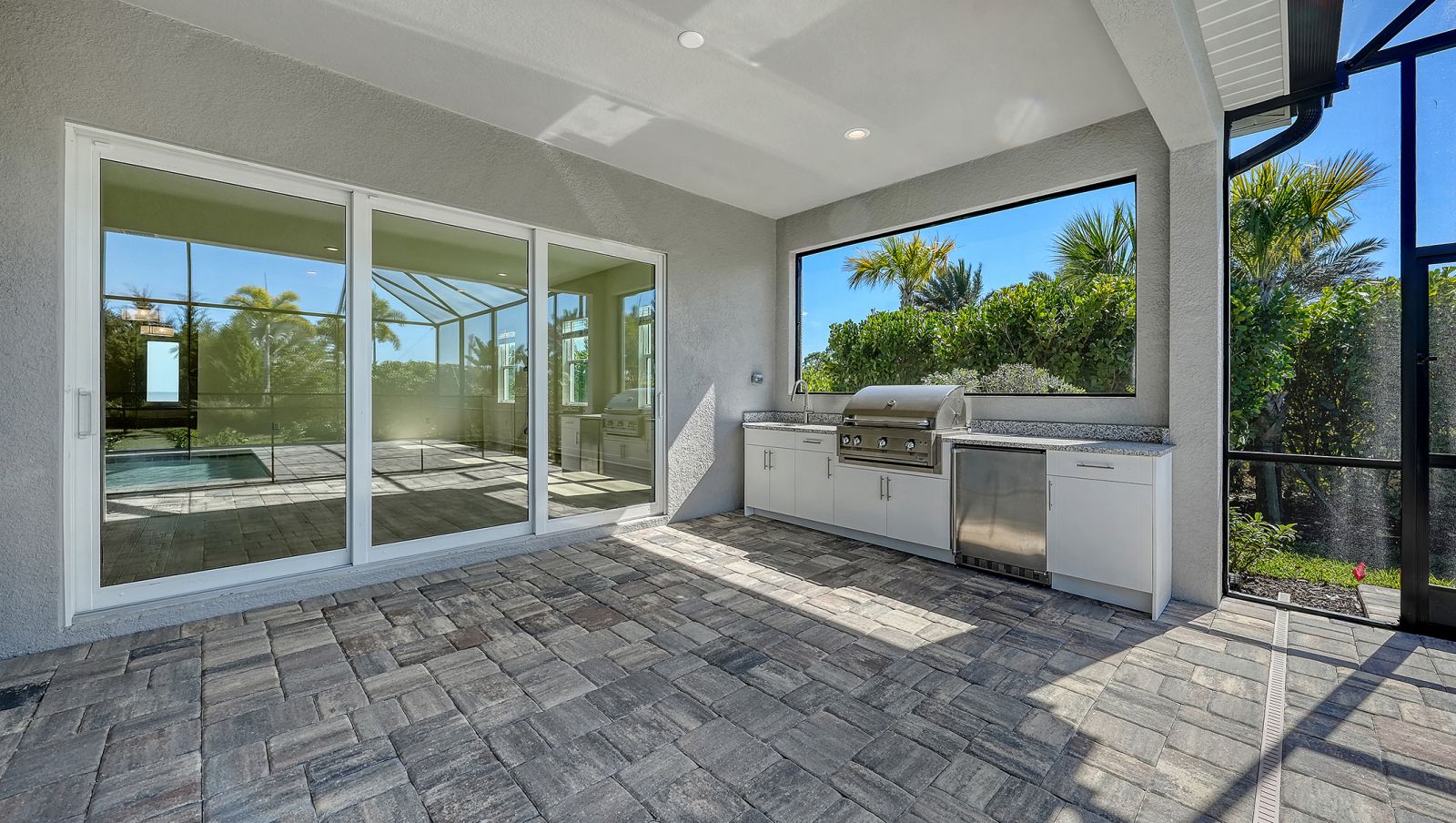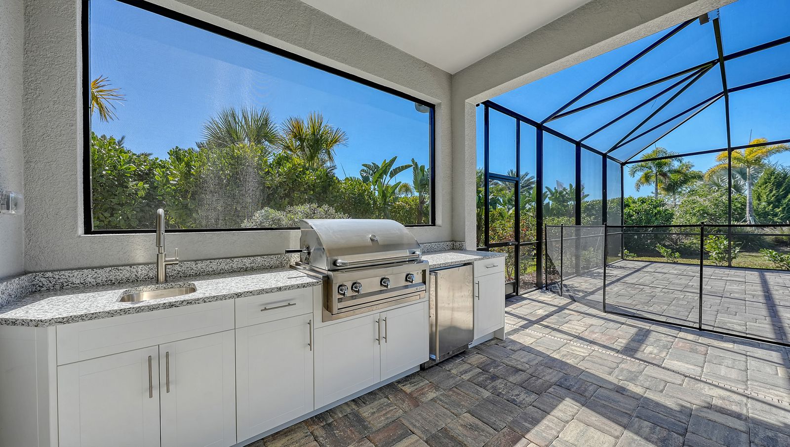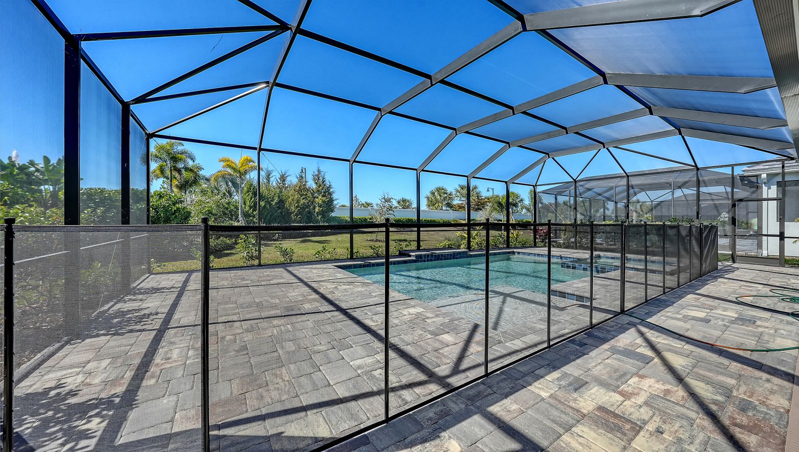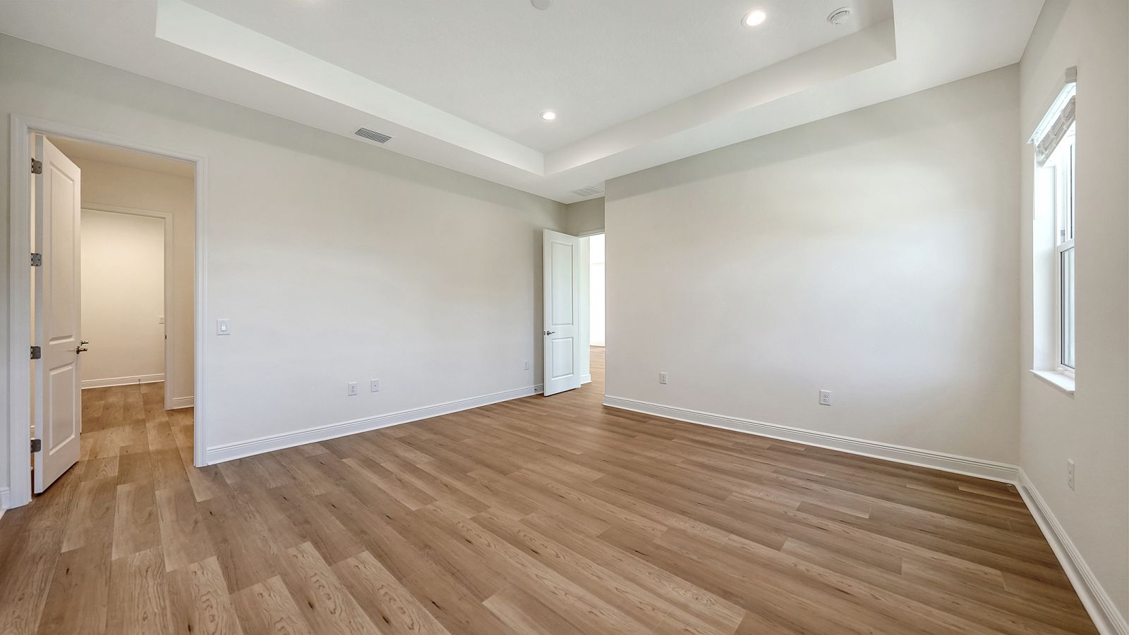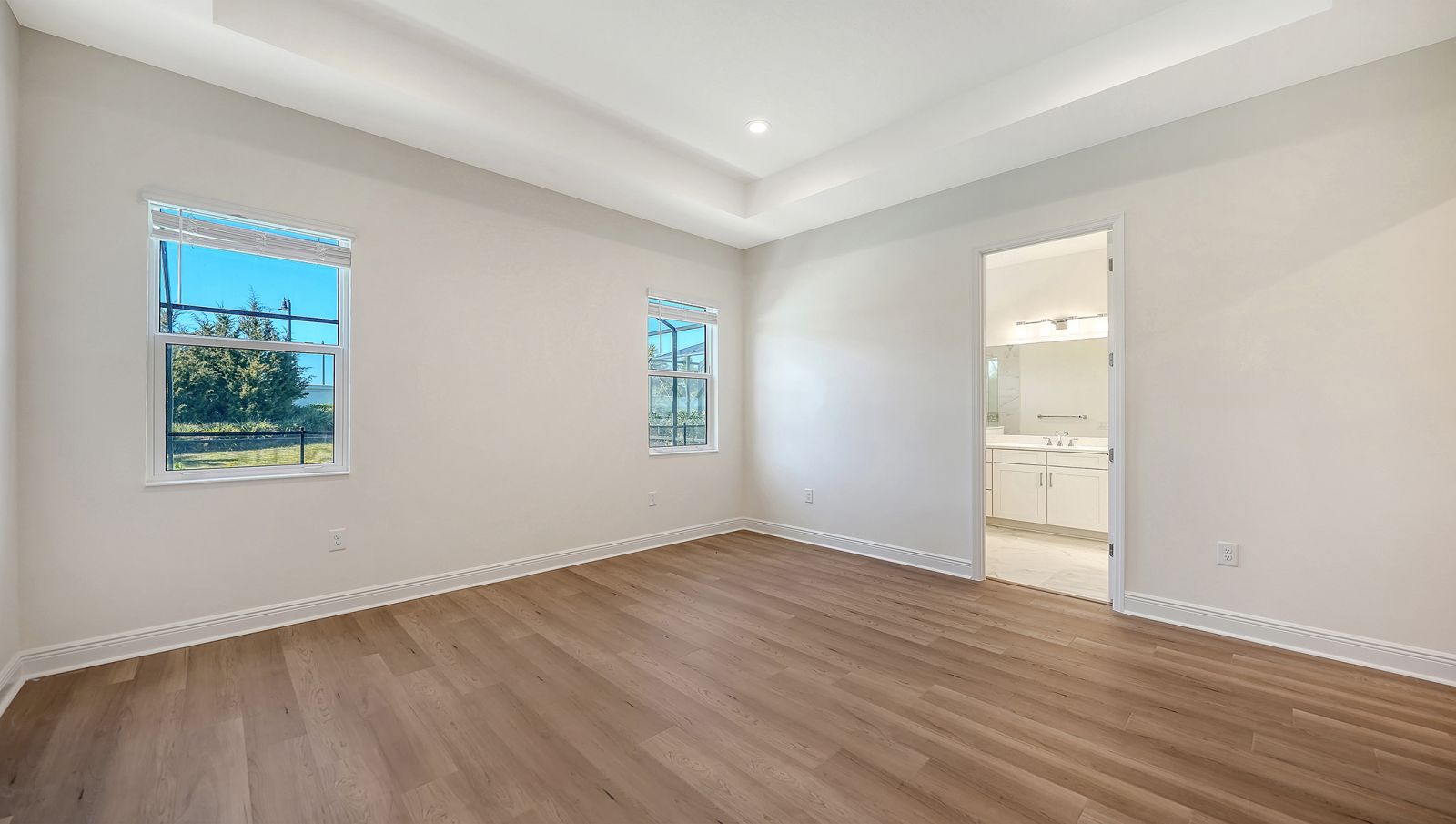 Step into The Shoreline, a beautifully designed open floor plan that blends comfort, luxury, and functionality. The spacious great room opens seamlessly to the pool and spa area through stunning impact-resistant sliding glass doors, creating the perfect indoor-outdoor living experience. A convenient pool bath is located near the master suite and great room. The home includes a chef's kitchen with a large butler's pantry and corner pantry for extra storage, plus a utility room door leading directly to the owner's closet and bedroom. Situated on a corner homesite with lush landscaping and a privacy wall, this home offers exceptional privacy and is located near the entrance for quick access to Downtown Wellen Park.