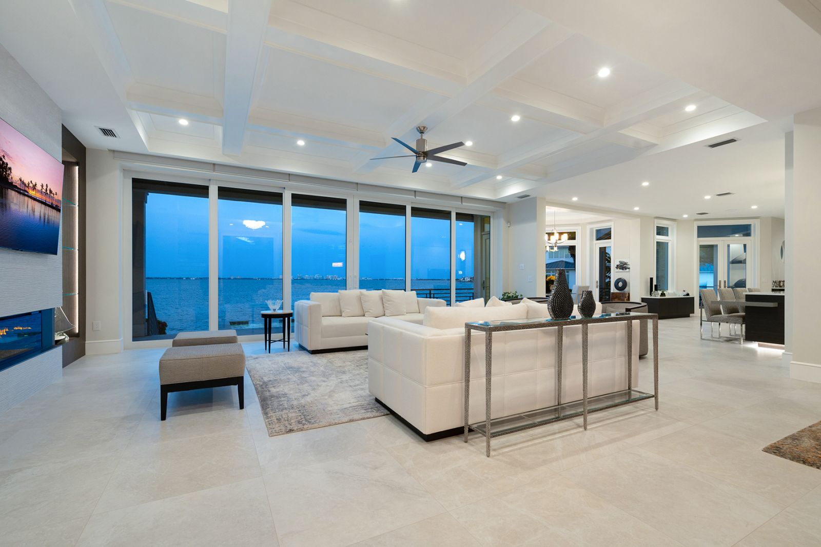 Welcome to Paradise on Longboat Key. This coastal modern home is located on the direct bayfront with a total of 270 feet on the water. As you enter the home, your first view is a serene and expansive view of Sarasota Bay all the way from the Ringling Museum to Downtown Sarasota. Every bedroom is filled with bay views. Enjoy different types of boating as the dock includes 2 jet ski lifts and a 13,000 pound boat lift. With plenty of interior space that includes 5 bedrooms, 5 baths plus and office/den and upstairs has a family room and game room. Guests are separated from the primary bedroom and have their own kitchenette on the 2nd floor. Outfitted with an elevator that stops at every floor, including the three car garage, convenience is just a step away. Large covered terraces on both levels provide views of beautiful sunrises over Sarasota Bay and Downtown Sarasota.