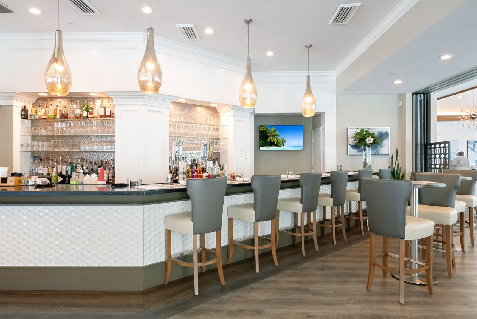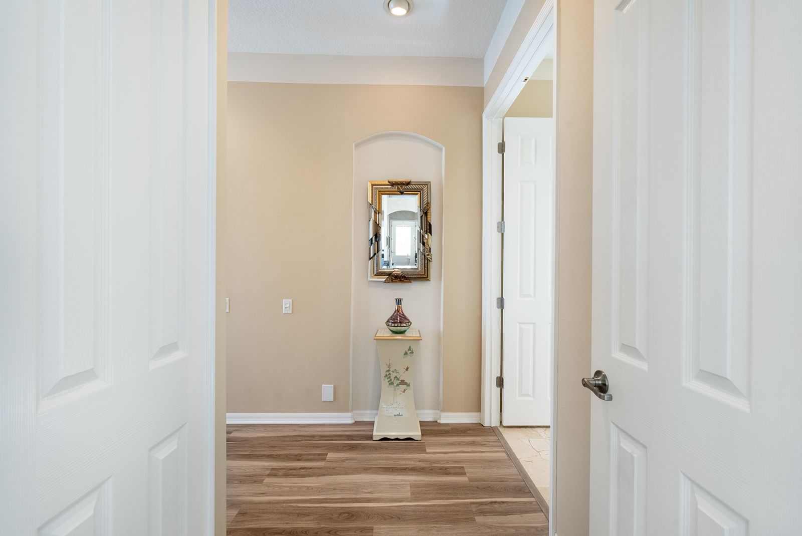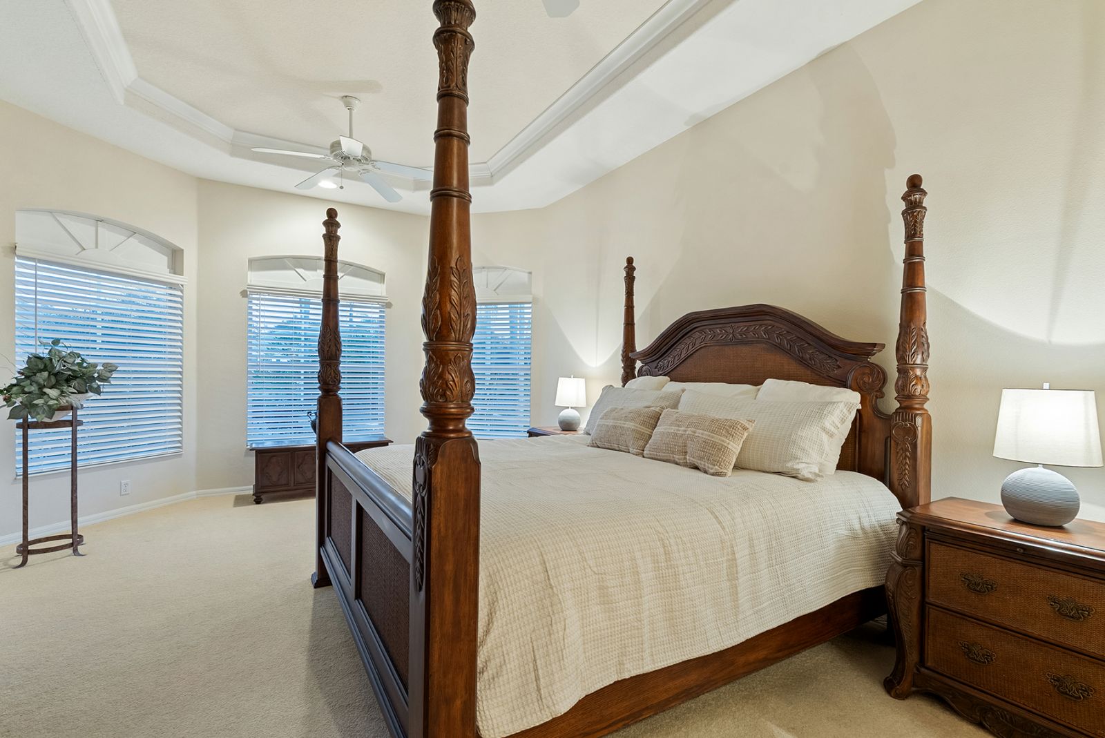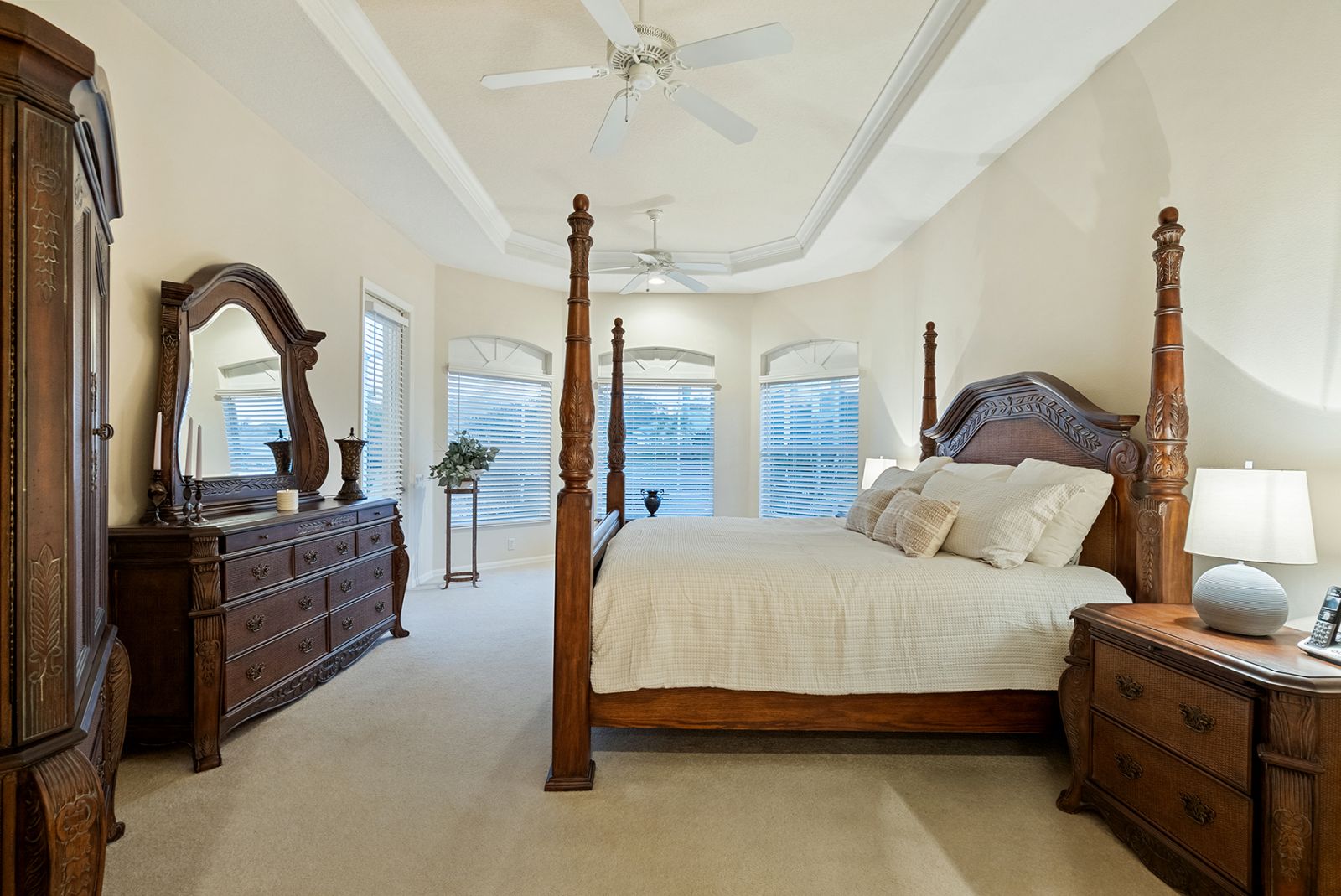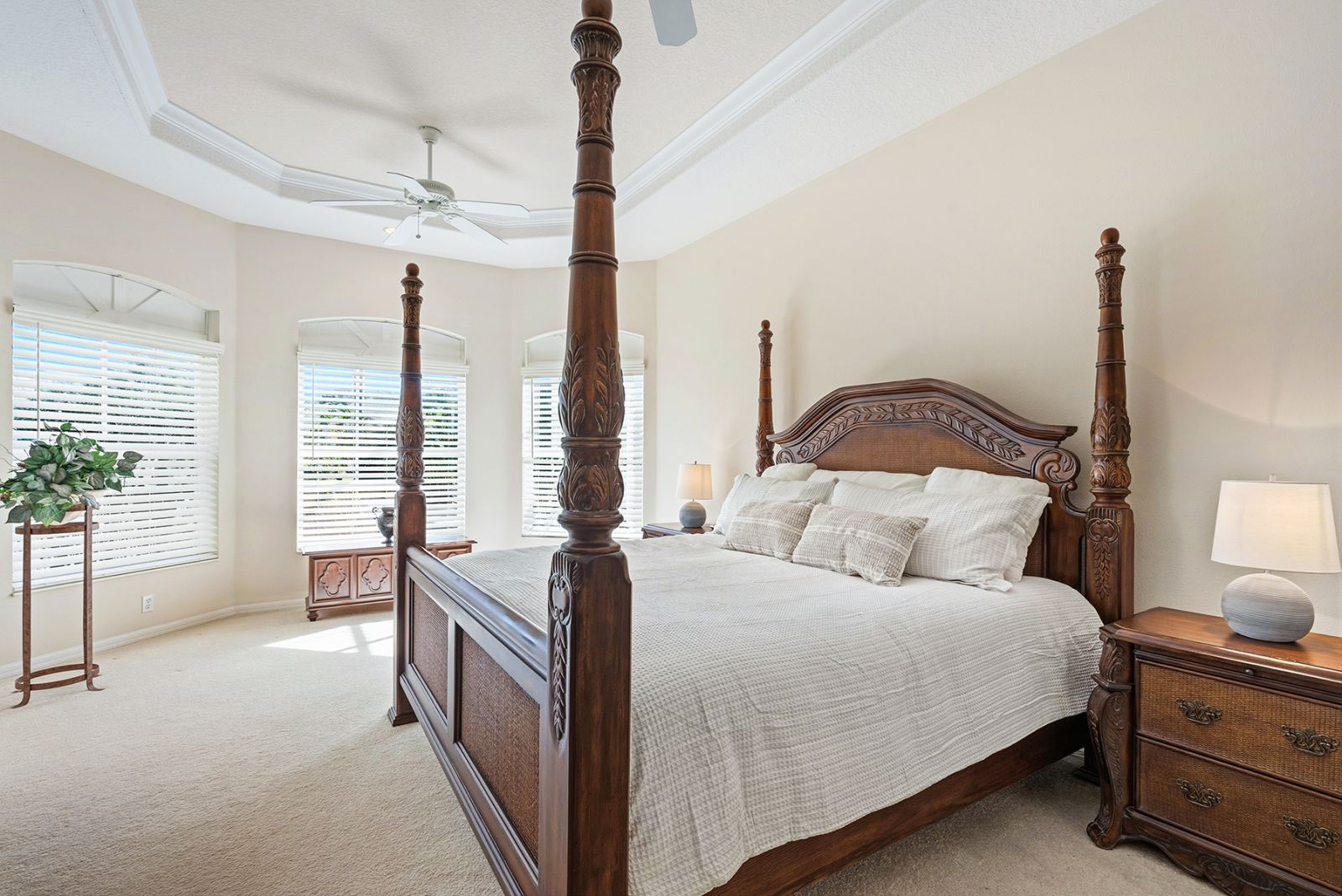 Welcome to this beautifully appointed Neal Custom Homes residence offering serene water views, exceptional architectural detail, and resort-style outdoor living. This 3-bedroom, 3-bath home with an oversized 3-car garage offers 3356 sf and is thoughtfully designed for both everyday comfort and elegant entertaining.A double designer leaded-glass front door opens to a striking foyer with marble inlay flooring, setting the tone for the refined interiors. High-end ceramic tile laid on the diagonal flows throughout the main living areas, complemented by tray and coffered ceiling details, crown molding, custom niches, and recessed lighting. The living room features a triple tray ceiling, an electric fireplace, and pocket sliders that open seamlessly to the lanai.The brand-new kitchen (2021) is the heart of the home, showcasing rich off-white wood cabinetry, exotic granite countertops, a quartz-topped center island, GE stainless steel appliances, subway tile backsplash, under-cabinet lighting, a spacious pantry, built-in oven with microwave, and an aquarium window in the breakfast area. Open to the family room and lanai, this space is ideal for entertaining.The primary suite is a private retreat featuring a sitting area with bay-style windows, coffered ceiling, dual customized closets, double-door entry, and private access to the lanai. The spa-inspired, wheelchair-accessible primary bath offers an oversized marble-detailed shower, Jacuzzi tub, marble flooring, expansive double vanity with makeup area, cultured marble countertops, triple mirrors, and new designer hardware.Bedroom two is a generously sized custom suite with a large closet and bath featuring a cultured marble vanity and tub/shower combination. Bedroom three is adjacent to a full hall bath with enclosed shower, linen closet, and updated brushed-silver fixtures. A large rear den with cathedral-style ceiling and sliders to the lanai can easily serve as a fourth bedroom with the addition of a closet.Step outside to your private oasis with a kidney-shaped heated pool and spa, lush updated landscaping with lighting, and a covered lanai offering space for a future outdoor kitchen (currently equipped with refrigerator and cabinetry).The oversized 3-car garage features higher ceilings, a painted floor, storage cabinetry, exterior access, and an electric hydraulic car lift, perfect for car enthusiasts. Additional highlights include central vacuum, exquisite lighting, select new fans, window treatments, brushed-silver hardware throughout, and a well-appointed laundry room with cabinetry, sink, and built-in ironing board.Available furnishings may be purchased separately.