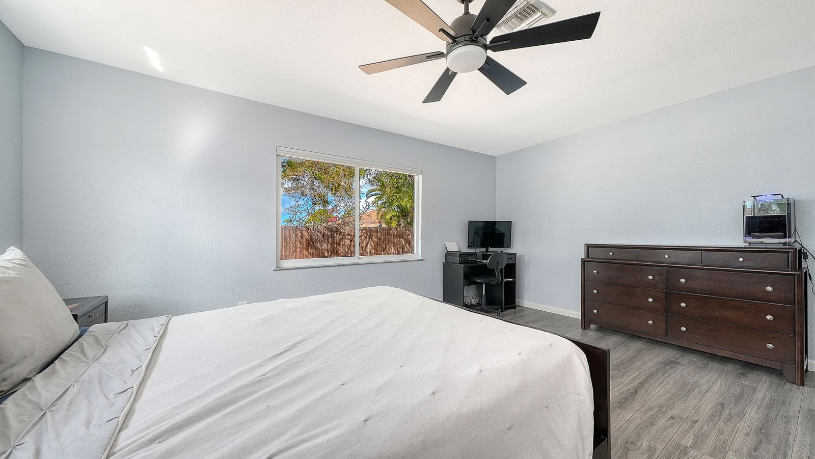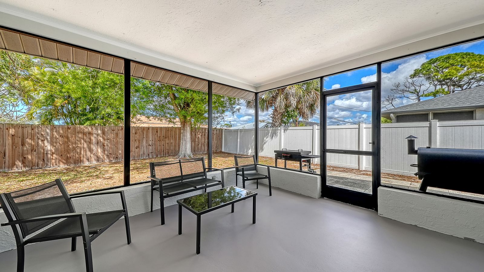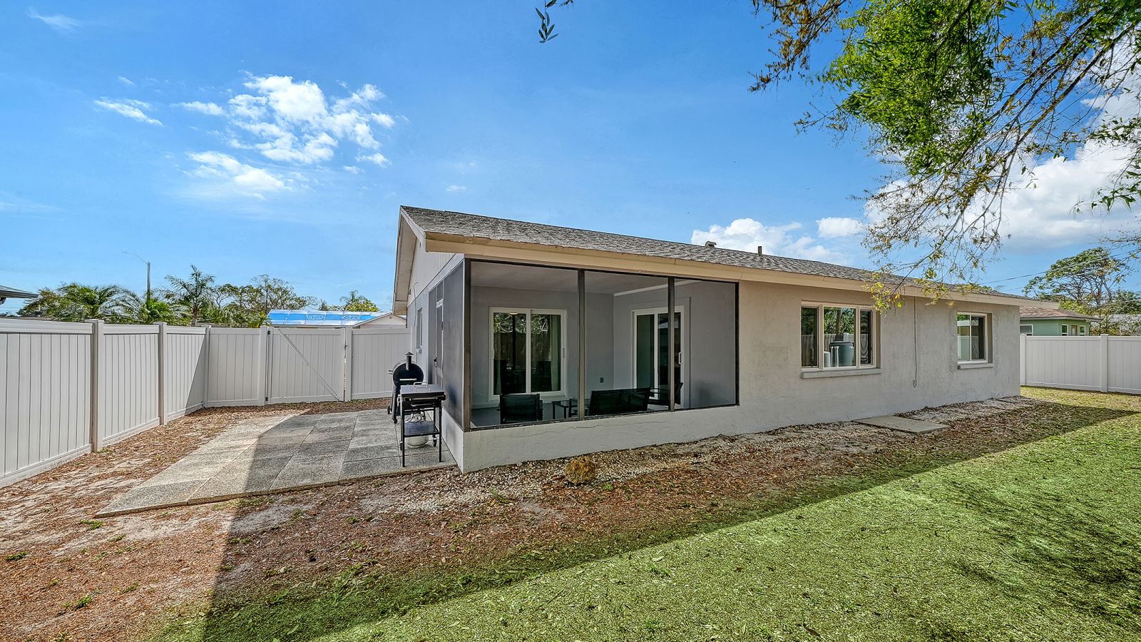 Move-in ready in South Venice! This light and bright 2-bedroom, 2-bath home offers comfortable Florida living with a thoughtful layout and inviting spaces throughout. The kitchen features shaker-style cabinetry, stainless steel appliances, a tile backsplash, and a convenient pantry closet. The spacious primary suite includes a very large walk-in closet, en-suite bath, and sliding doors that open to the lanai--perfect for enjoying your morning coffee or relaxing in the evening. Step outside to a spacious, fully fenced backyard with plenty of room for pets, gardening, or outdoor gatherings. Major updates provide peace of mind, including a full home replumb and new water heater in 2024, along with new well tanks and pumps in 2025. All windows and doors are impact-rated, including the garage door. Additional highlights include an oversized one-car garage with epoxy floors and underground power lines coming soon to the neighborhood.