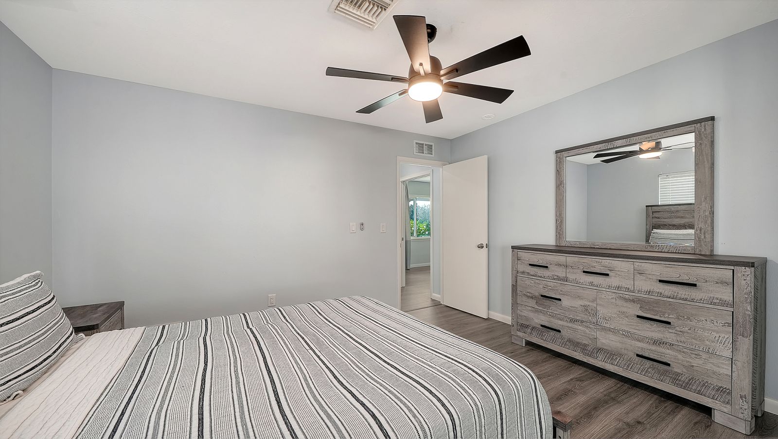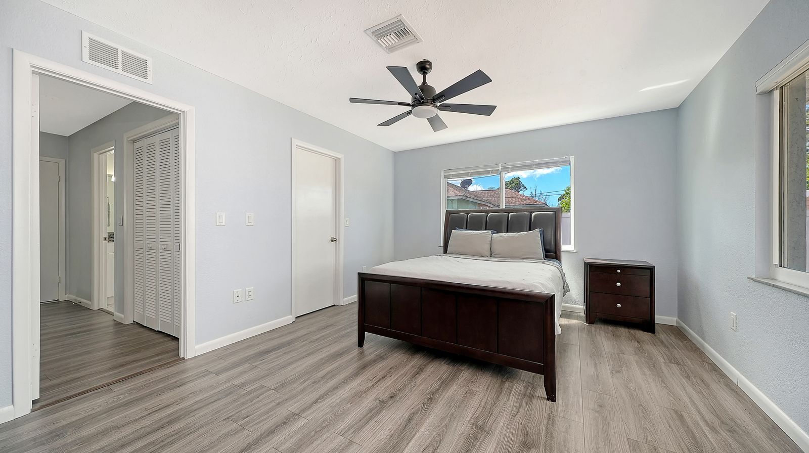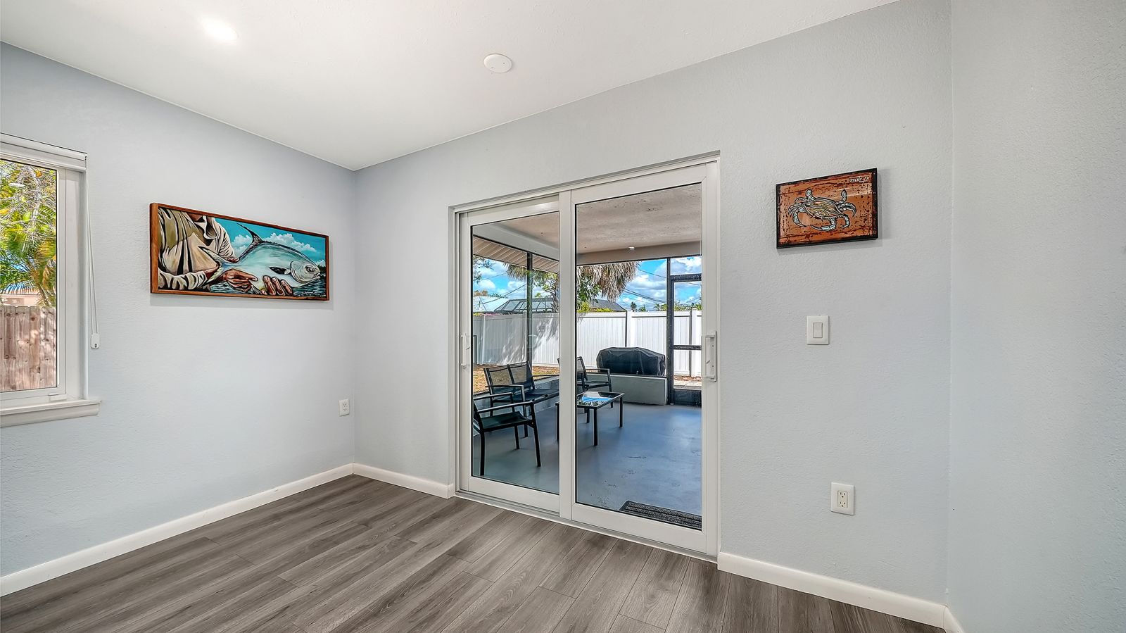 Move-in ready in South Venice! This light and bright 2-bedroom, 2-bath home offers comfortable Florida living with a thoughtful layout and inviting spaces throughout. The kitchen features shaker-style cabinetry, stainless steel appliances, a tile backsplash, and a convenient pantry closet. The spacious primary suite includes a very large walk-in closet, en-suite bath, and sliding doors that open to the lanai--perfect for enjoying your morning coffee or relaxing in the evening. Step outside to a spacious, fully fenced backyard with plenty of room for pets, gardening, or outdoor gatherings. Major updates provide peace of mind, including a full home replumb and new water heater in 2024, along with new well tanks and pumps in 2025. All windows and doors are impact-rated, including the garage door. Additional highlights include an oversized one-car garage with epoxy floors and underground power lines coming soon to the neighborhood.