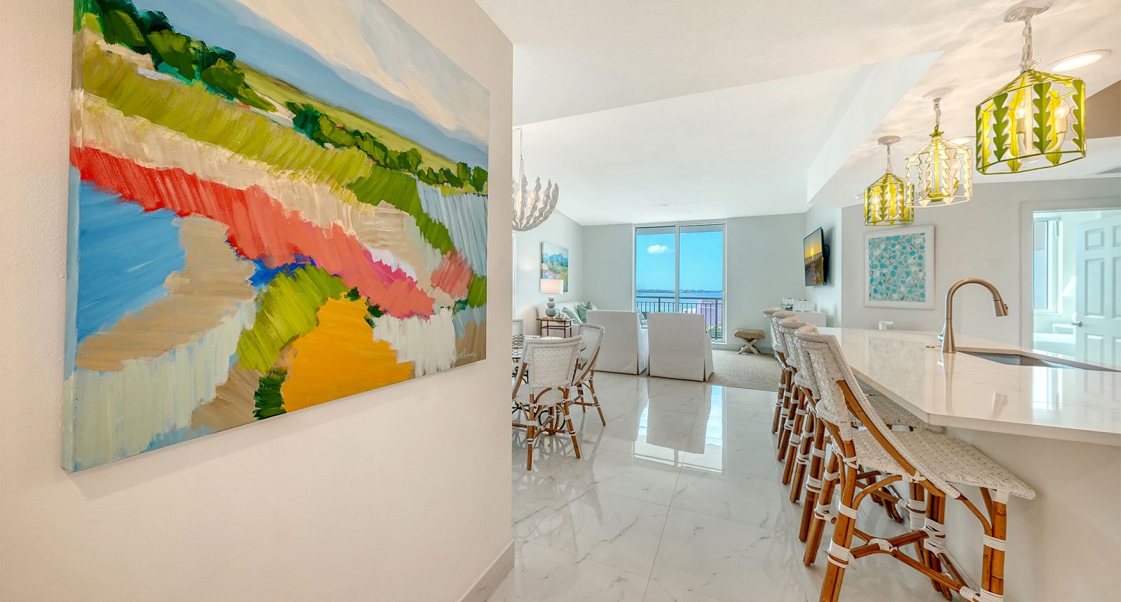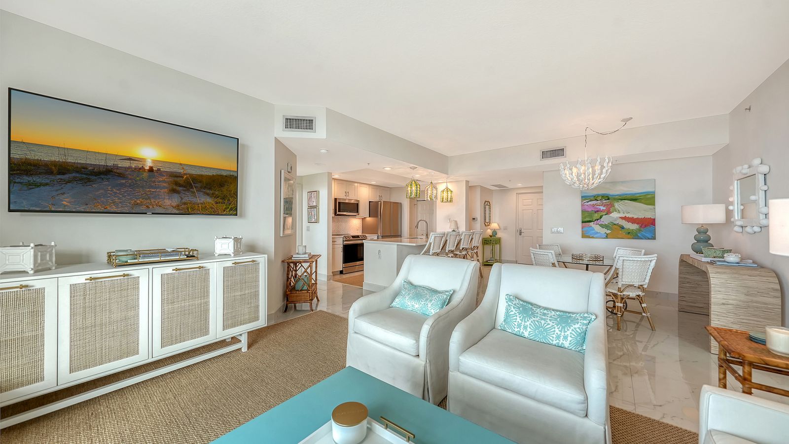 Perched on the 11th floor of the Alinari, this exquisitely renovated bay-facing waterfront two-bedroom, two-bath residence offers a rare blend of refined design, effortless comfort, and breathtaking waterfront views. Perfectly positioned to capture shimmering Sarasota Bay and spectacular Gulf Coast sunsets, this exceptional home delivers a truly elevated downtown living experience. Inside, a meticulous full renovation has transformed the residence into a sophisticated coastal retreat. Clean architectural lines, designer finishes, and a thoughtfully curated palette create a light-filled interior that feels both modern and timeless. The open living and dining spaces flow seamlessly together, framed by expansive views that draw the beauty of the bay into the home. Just beyond the living room, a private terrace provides the perfect setting to enjoy morning coffee, evening breezes, and sweeping bay vistas, extending the living space outdoors. The chef-inspired kitchen is both striking and functional, featuring premium appliances, custom cabinetry, and elegant stone surfaces designed for both everyday living and stylish entertaining. Every detail has been thoughtfully selected to achieve a balance of luxury, style, and practicality.A desirable split-bedroom floor plan ensures privacy and comfort. The serene primary suite serves as a tranquil sanctuary with captivating water views, generous closet space, and a spa-like bath with sophisticated finishes and a calming retreat-like ambiance. The guest suite is equally well-appointed, providing a welcoming space for visitors or an elegant home office. A separate laundry room provides functionality and convenience with ample built in storage. This residence also includes two secure garage parking spaces, a rare and highly coveted convenience in downtown Sarasota. From sunrise reflections across Sarasota bay to the sparkling lights of the city in the evening, the residence offers a constantly evolving backdrop of natural beauty and urban energy. Directly across the street, the transformative Bay Park is creating one of the most exciting waterfront destinations on Florida's Gulf Coast. This visionary 53-acre bayfront park will feature lush green spaces, waterfront walking paths, cultural programming, dining, and outdoor gathering areas bringing an unparalleled lifestyle amenity right to your doorstep. Residents of the Alinari enjoy an impressive collection of resort-style amenities including a grand lobby, 24-hour concierge, heated lap pool and spa, state-of-the-art fitness center, wine room, private theater, and beautifully landscaped outdoor spaces all just moments from Sarasota's renowned dining, shopping, arts, and waterfront. This is downtown Sarasota living at its most refined where luxury, location, and breathtaking water views converge.