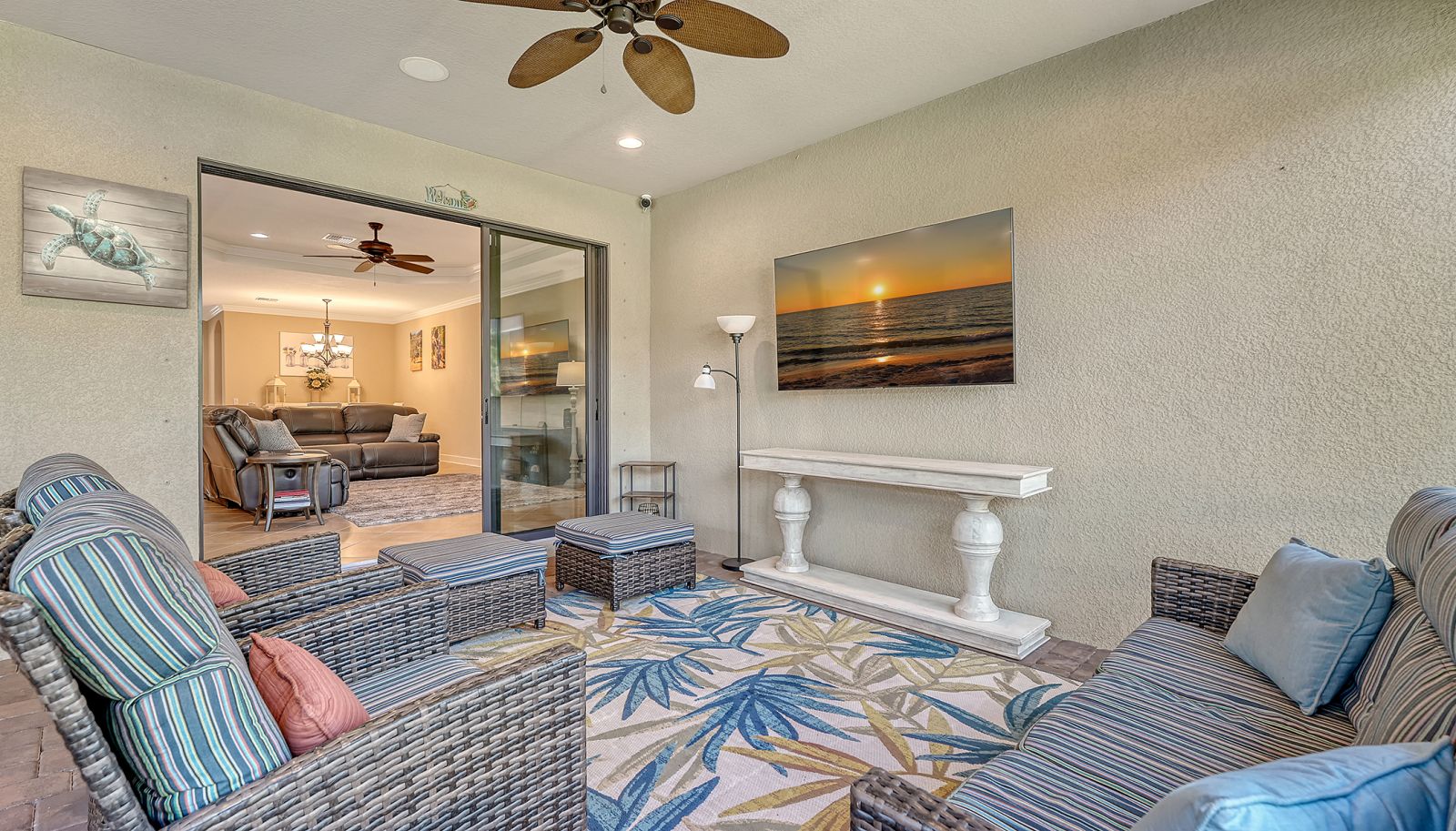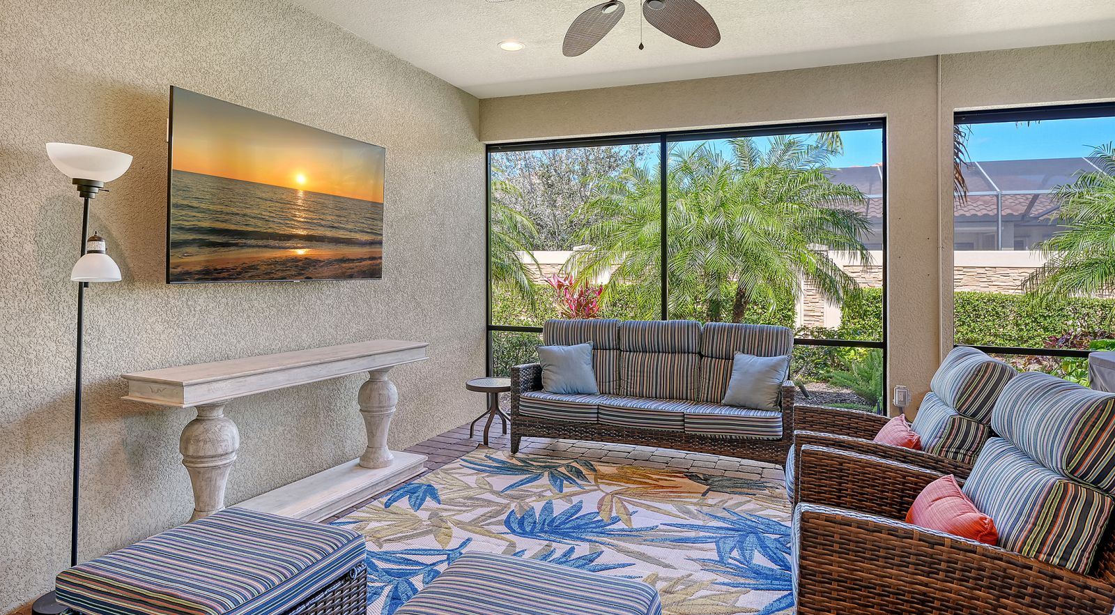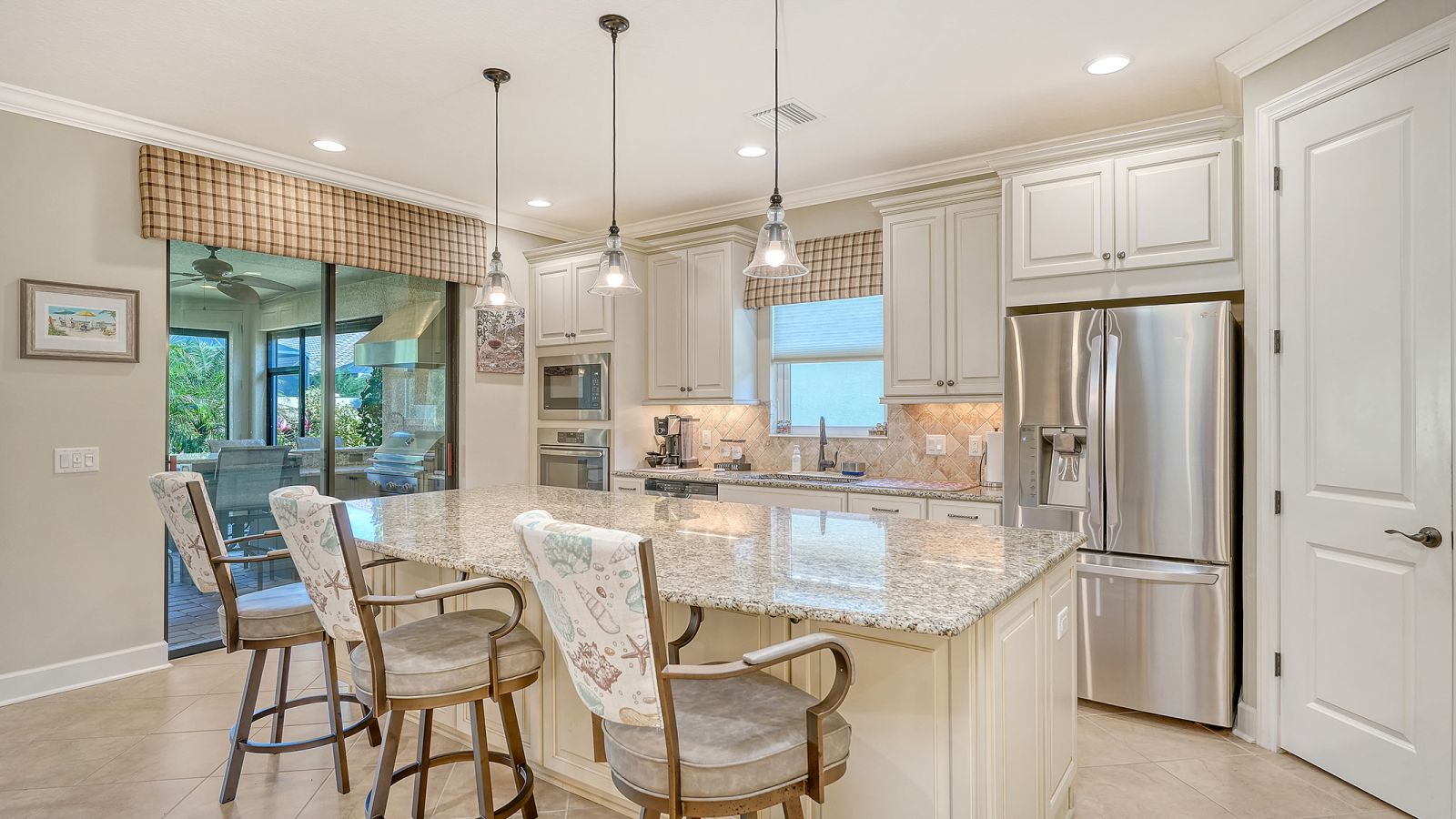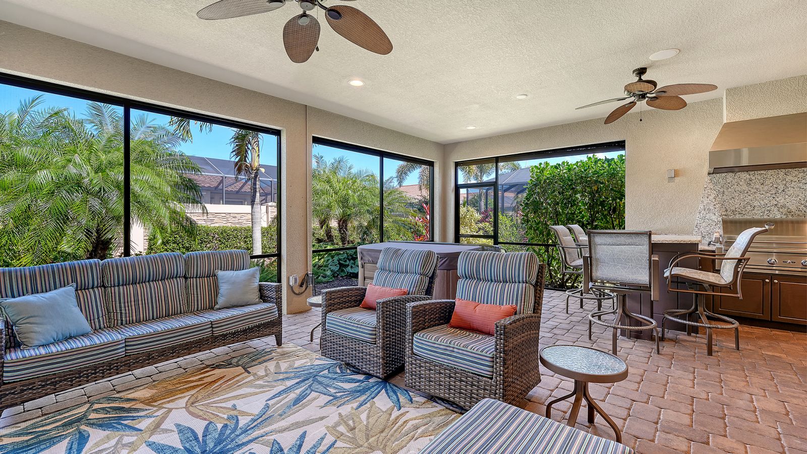 Experience refined living in this lightly lived-in and impeccably maintained three-bedroom, three-bath residence, ideally situated in the highly sought-after Esplanade Golf & Country Club. Offered well below its 2023 purchase price, this home presents an exceptional opportunity and outstanding value.Designed with comfort, security, and peace of mind in mind, it stands apart with Category 5 hurricane-rated windows, a whole-house generator connected to natural gas, a front storm door, roll-down hurricane shutters, a drainage improvement system, water treatment, and enhanced smoke detection. Every detail reflects meticulous care and pride of ownership.The thoughtfully designed Lazio floor plan strikes a perfect balance between everyday ease and effortless entertaining, blending open gathering spaces with private retreats. The chef-inspired kitchen boasts a spacious gleaming island, deep-volume cabinetry with pull-out drawers, a bright window over the sink, three designer pendant lights, and a walk-in corner pantry--ideal for hosting guests or enjoying casual family meals.The primary suite serves as a serene retreat, featuring a custom-built walk-in closet complete with drawers, jewelry storage, and a secure floor-mounted safe. Two additional bedrooms, each with their own private bath, plus a versatile den or office, offer comfort and flexibility for any lifestyle. Additional features include recessed lighting throughout, a newer HVAC system, and a mini-split A/C unit for personalized climate control in the primary suite.Step outside to the extended, covered, and screened lanai--an inviting outdoor living space designed for year-round enjoyment. Relax at the granite summer kitchen bar, unwind in the hot tub, or take in the lush, landscaped garden wall offering both beauty and privacy. Motorized storm and privacy shades provide an extra layer of comfort and security.Discover the pinnacle of resort-style living at Esplanade in Lakewood Ranch, where every day feels like a getaway. This vibrant, amenity-rich community features beautifully landscaped grounds, scenic walking trails, and a world-class array of activities. Residents enjoy access to a championship golf course, full-service spa, tennis and pickleball courts, and an elegant clubhouse offering fine dining and social events. Whether lounging by the resort pool or gathering with friends for a sunset cocktail, Esplanade offers the perfect blend of luxury, leisure, and connection in the heart of Lakewood Ranch.