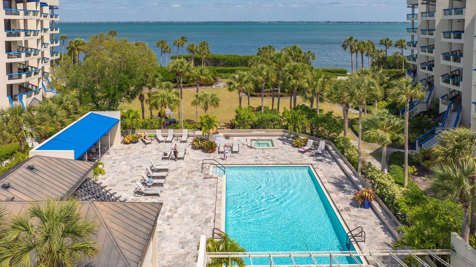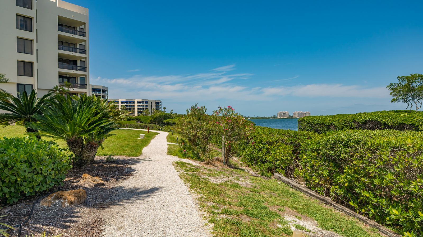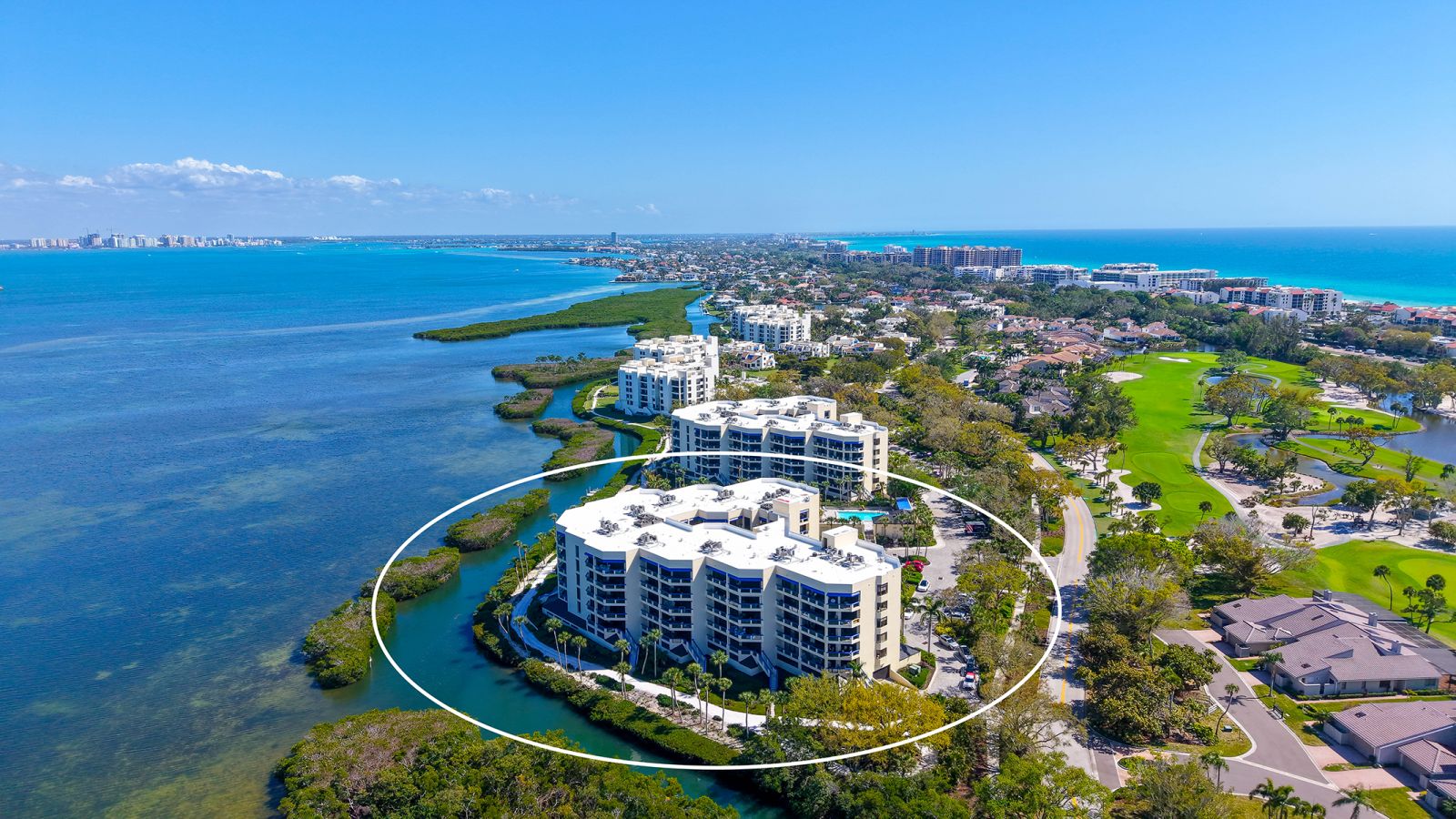 Step into coastal elegance in this fully renovated three-bedroom, two-bathroom Fairway Bay residence, where every detail has been thoughtfully reimagined. A charming private lanai and seating area welcome you before entering the unit, setting the tone for relaxed waterfront living. Inside, an open-concept layout seamlessly blends the kitchen, dining, and living spaces, creating a bright, airy environment perfect for both entertaining and everyday comfort. The gourmet kitchen is outfitted with GE Profile appliances, custom soft-close cabinetry, and ample storage, offering both style and functionality. The primary suite is a serene retreat featuring a spacious walk-in closet, additional storage, and a beautifully updated en-suite bath with a large walk-in shower. From both the living room and the primary suite, step onto the expansive north-facing balcony to take in the tranquil Sarasota Bay views, where you can enjoy the morning sunrise and the soft glow of the evening sky. The second bedroom is generously proportioned and easily accommodates a king-size bed, creating a luxurious space for guests. The third bedroom is also spacious, complete with a custom built-in, ideal for a guest room, home office, or flexible living area. A thoughtfully designed guest bath ensures privacy and convenience for family or visitors. This unit also includes the ease and security of one covered parking space beneath the building. Fairway Bay residents enjoy an exceptional suite of amenities including two heated pools, a spa, a clubhouse, a fitness center, tennis and pickleball courts, and private beach access on Longboat Key. With the shops, dining, and vibrant lifestyle of St. Armands Circle just minutes away, this residence combines the best of convenience and refined waterfront living.