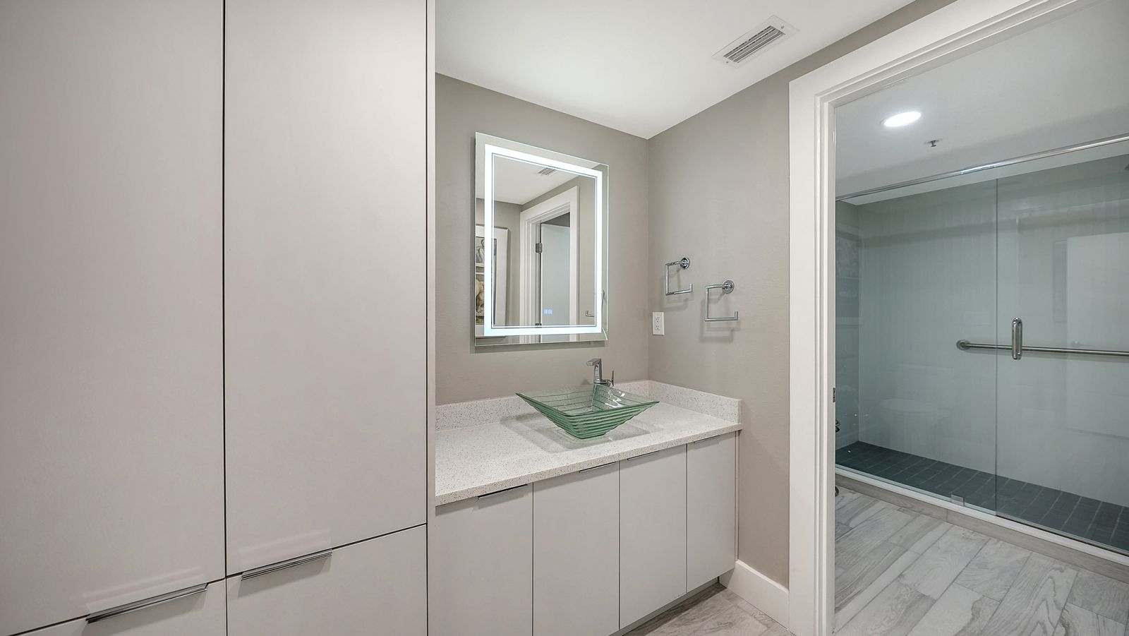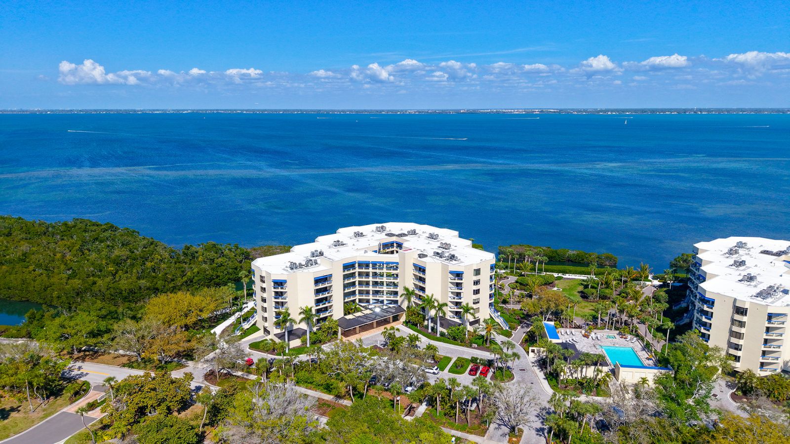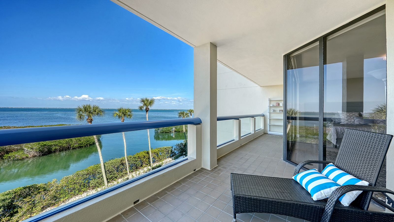 Step into coastal elegance in this fully renovated three-bedroom, two-bathroom Fairway Bay residence, where every detail has been thoughtfully reimagined. A charming private lanai and seating area welcome you before entering the unit, setting the tone for relaxed waterfront living. Inside, an open-concept layout seamlessly blends the kitchen, dining, and living spaces, creating a bright, airy environment perfect for both entertaining and everyday comfort. The gourmet kitchen is outfitted with GE Profile appliances, custom soft-close cabinetry, and ample storage, offering both style and functionality. The primary suite is a serene retreat featuring a spacious walk-in closet, additional storage, and a beautifully updated en-suite bath with a large walk-in shower. From both the living room and the primary suite, step onto the expansive north-facing balcony to take in the tranquil Sarasota Bay views, where you can enjoy the morning sunrise and the soft glow of the evening sky. The second bedroom is generously proportioned and easily accommodates a king-size bed, creating a luxurious space for guests. The third bedroom is also spacious, complete with a custom built-in, ideal for a guest room, home office, or flexible living area. A thoughtfully designed guest bath ensures privacy and convenience for family or visitors. This unit also includes the ease and security of one covered parking space beneath the building. Fairway Bay residents enjoy an exceptional suite of amenities including two heated pools, a spa, a clubhouse, a fitness center, tennis and pickleball courts, and private beach access on Longboat Key. With the shops, dining, and vibrant lifestyle of St. Armands Circle just minutes away, this residence combines the best of convenience and refined waterfront living.