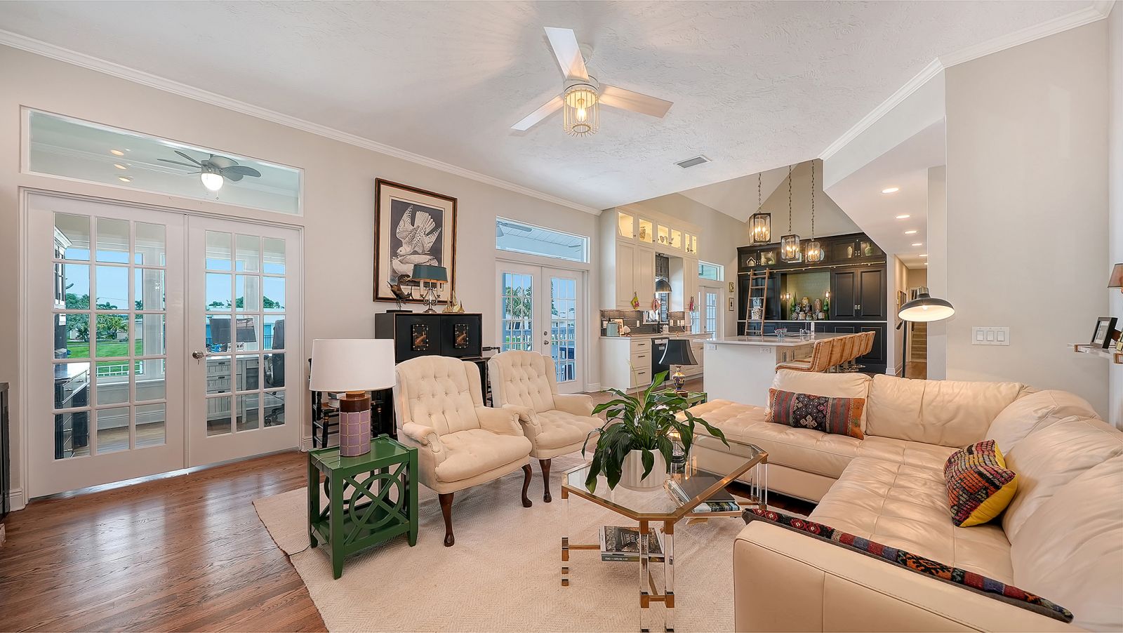 Exceptional waterfront living on coveted Snead Island, where refined coastal design meets effortless boating access just minutes to Terra Ceia Bay and Tampa Bay. Set along a quiet canal with direct access to open water, this beautifully updated 4-bedroom, 3.5-bath residence offers a thoughtfully designed layout with a dedicated office, a media room positioned on its own level for added privacy, and versatile living spaces tailored for both relaxed daily living and sophisticated entertaining. The completely renovated kitchen serves as the centerpiece of the home, featuring custom solid wood cabinetry, Cambria granite countertops, and an AGA range seamlessly integrated into an expansive island. A Bosch dishwasher, premium refrigeration, and thoughtful custom finishes complete this true chef’s kitchen, while 2 1/4-inch oak flooring throughout the first floor adds warmth and timeless character. Framed by soaring ceilings and abundant natural light, the open-concept design flows seamlessly into the main living areas, where architectural detail and curated finishes create a warm yet elevated coastal aesthetic. The first-floor primary suite provides a private retreat, highlighted by a fully renovated, spa-inspired bath and French doors that open to the spacious covered back porch, creating a seamless indoor-outdoor connection. Just off the main living area, a dedicated office with French glass doors overlooks the backyard and canal, offering a quiet and inspiring workspace. Upstairs, three additional bedrooms provide ideal separation for family or guests, including one with a private ensuite bath. Outdoor living is equally inviting, with a heated saltwater pool featuring a new PebbleTec finish and updated equipment, surrounded by generous patio space and tranquil canal views. With direct canal access and quick reach to open water, this home offers a true boating lifestyle paired with thoughtfully updated interiors and a layout designed for both everyday living and entertaining. Ideally located near Emerson Point Preserve, a 365-acre coastal sanctuary of mangroves, wetlands, and natural shoreline, and just moments from the Bradenton Yacht Club, this property is set within Snead Island’s welcoming, close-knit island community known for its boating, fishing, and connection to the surrounding waters.