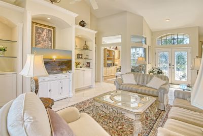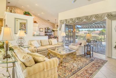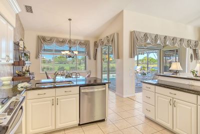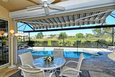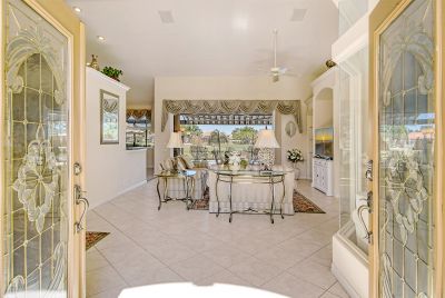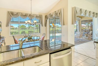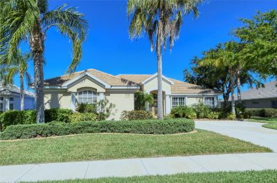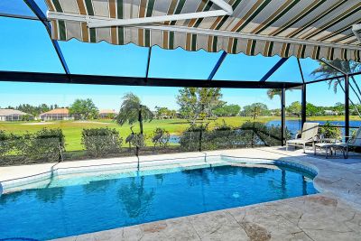 Beyond the beautiful custom leaded glass entry doors you are greeted by a bright, gracious home perfectly seated with an expansive north-western sky, and both lake and golf course views. Offered beautifully furnished, decorated and completely equipped to the smallest detail, this three bedroom, three bath, plus den/office split plan design is a rare market find. It is the perfect place to relax, rejuvenate, and enjoy your Florida lifestyle. Located in the wonderful award winning gated community, Pelican Pointe Golf & Country Club, there are many active and leisure choices to discover by being a resident. 27 holes of top rated semi-private golf, an active social calendar, dining and fitness, plus only 3 miles from downtown Venice Island, shopping, restaurants, and the shimmering gulf beaches! It doesn't get much better than this! Special features include Hunter Douglas window treatments, new carpeting and wood flooring, designer draperies, newer appliances, new high end pool equipment, and a new panoramic screened lanai designed for optimum view and privacy with protective no seeum screening for enjoying the outdoor space. A retractable awning provides shaded space for outdoor dining, and storm shutters afford peace of mind in the weather. Furnished with Lexington furniture, Karastan rugs, Serta IComfort new bedding, Ralph Lauren linens, Mikasa china and Waterford crystal, this is a must see residence for your perfect Florida, move in ready lifestyle! The homeowner's association fee includes lawn maintenance, irrigation, AND a social membership. Tennis, pickleball, fitness, a heated pool, restaurant and many activities to choose from are included in your social membership! Don't miss this one!