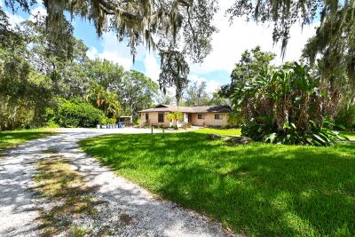 Pictures coming soon!! includes three parcels appx 2.74 acres.Discover the perfect private Sarasota home with vast land! This exceptional "Old Florida" estate. A picturesque driveway lined with majestic heritage oak trees leads to a tranquil private pond and versatile barns. Enter your own sanctuary through the front gate and leave your worries behind.The main house features stunning wood vaulted ceilings, a captivating brick fireplace, French doors, and laminate flooring in the living room. The dining room boasts a charming tray ceiling, a beautiful bay window, and tile flooring in wet areas. The spacious kitchen offers a closet pantry, kitchen island, and ample cabinet space. The master bedroom includes a large walk-in closet, while the bathroom showcases an oversized shower and a sliding glass door that opens to the backyard, filling the space with natural light. Relax on the covered and enclosed side porch, enjoying scenic views of the property and pond.Entertain outdoors in style with a charming living area adorned with pavers and a picnic bench, perfect for BBQs and gatherings. An additional covered outdoor bar area awaits your guests. The property also includes two barns suitable for large vehicles. Just minutes away from downtown Sarasota and the University Parkway area, this extraordinary estate offers easy access to superb shopping, renowned local dining, world-class medical facilities, and all the attractions Sarasota has to offer. Don't miss out on this unique property!