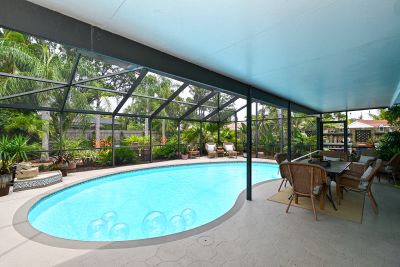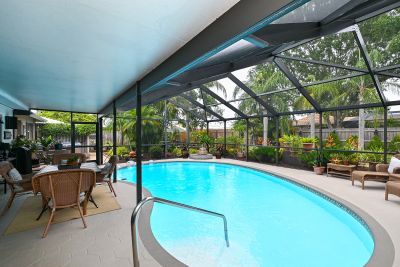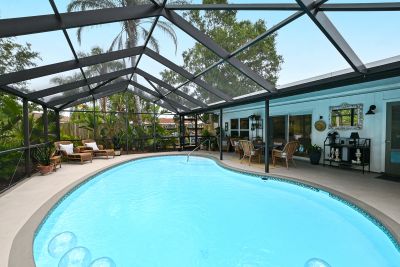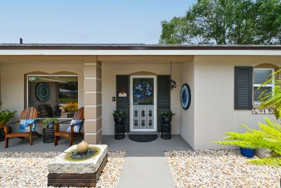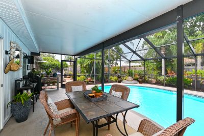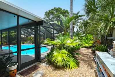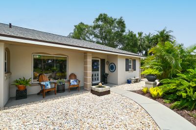Welcome to one of the most stunning homes in Forest Lakes. From the moment you approach the entry portico and hear the calming fountain, to unlocking the door of this magnificent home, you will be drawn to its beauty, charm, and sophistication. The understated elegance of its Formal Living and Dining areas prepare you for what is ahead in this immaculate home. The kitchen with new appliances flows to the breakfast room and adjoins the family room with its beautiful views of the pool, lanai, and incredible gardens. This area was formerly the studio where this noted Sarasota artist created his work. The primary suite with an ensuite bath is split from the 2 guest bedrooms and main bathroom. The primary suite has a walk-in closet and both other bedrooms have ample closet space. Baths are updated, water lines replumbed and the roof is new as of May 2023. Now for the beautiful backyard of this home. The gardens are truly a work of art. They were designed to be maintained with the greatest of ease. No worries if you don't have a "green" thumb or are a seasonal owner. The care of the plants, ground covers and walking paths were built with our climate and watering conditions to make care a breeze. Please be sure to allow yourself enough time to step outside and see how this nearly 1/3-acre home is beautiful inside and out. Follow the walking paths to several distinct areas for relaxation, dining, reading, butterfly watching are simply enjoying the outside spa. You will have the same beauty in the front yard with its easy maintenance surrounding the circular driveway and walkway to the front door.